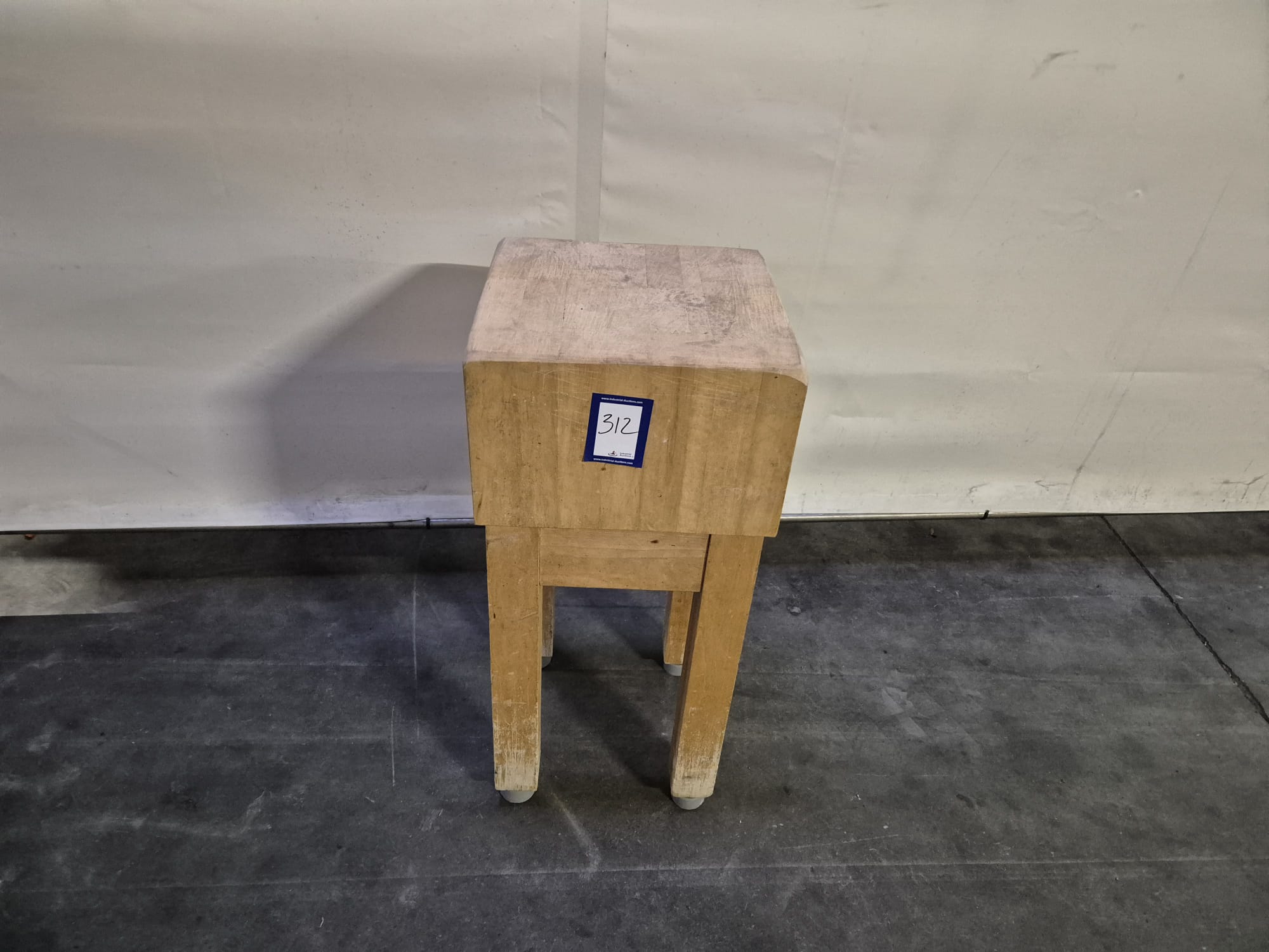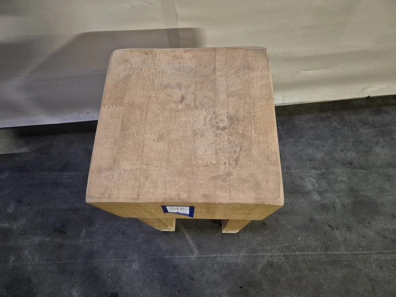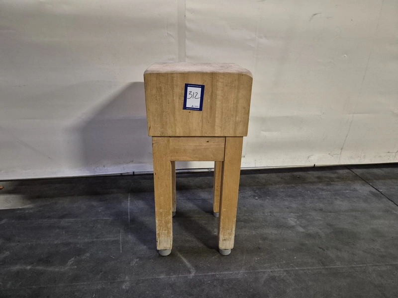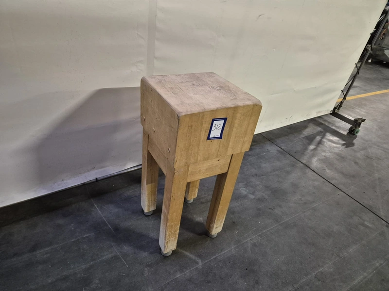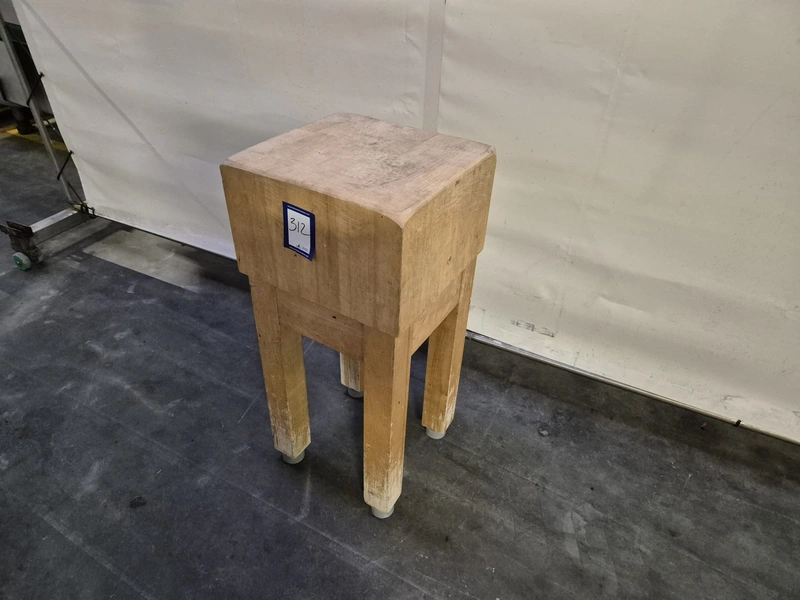 Wooden chop block, dimensions: 410 mm x 400 mm x 900 mm.