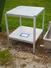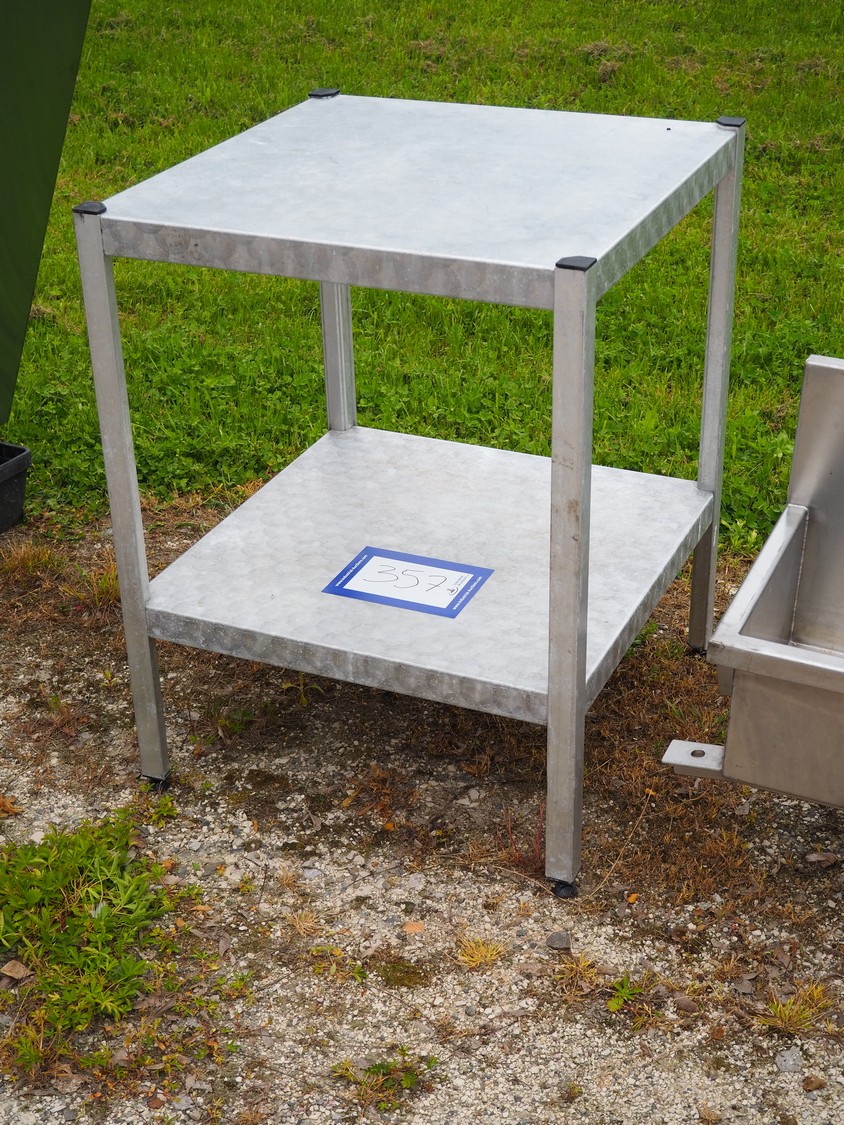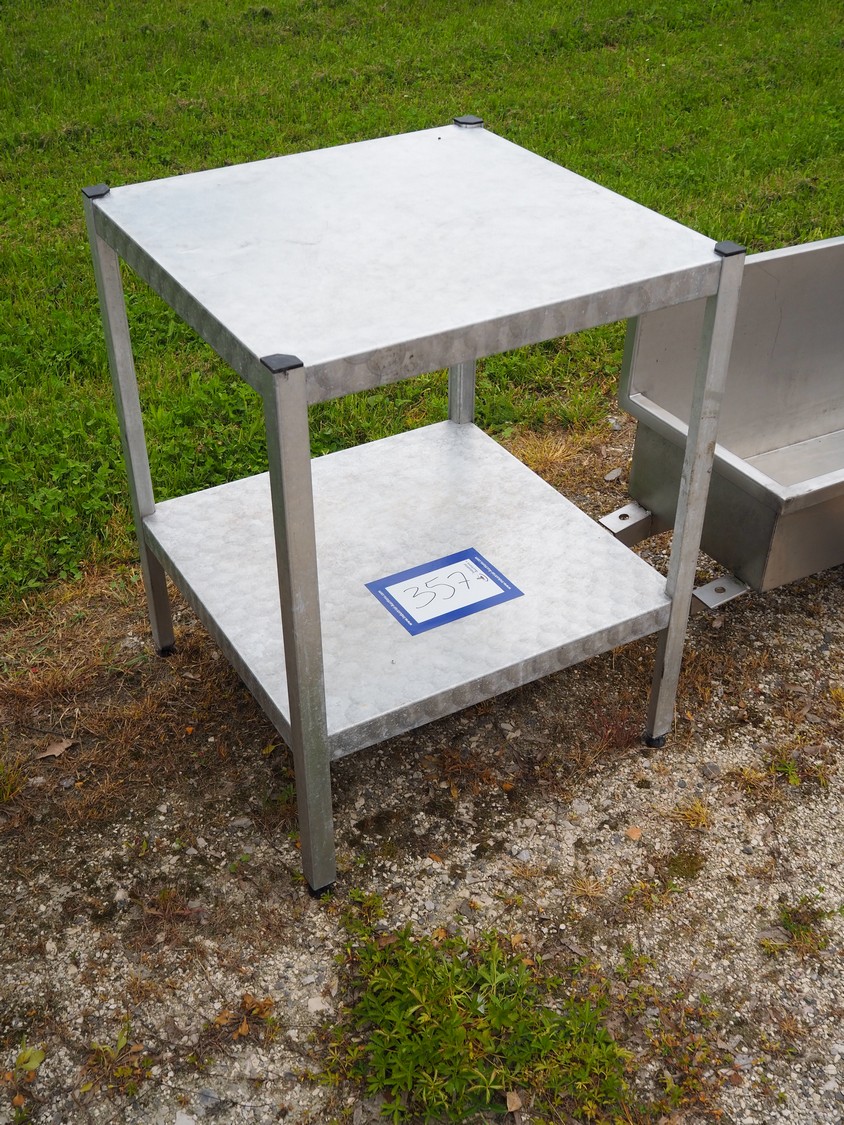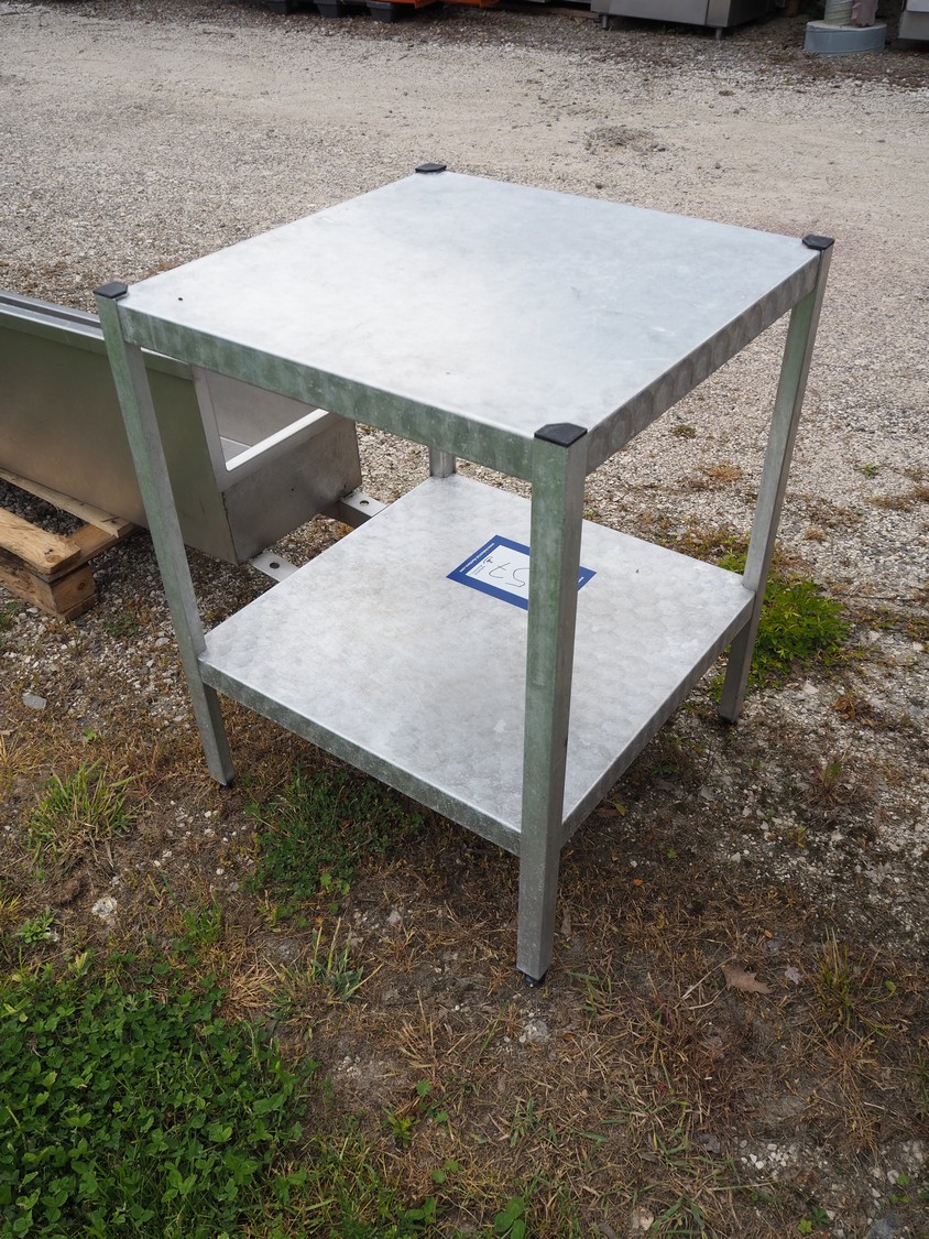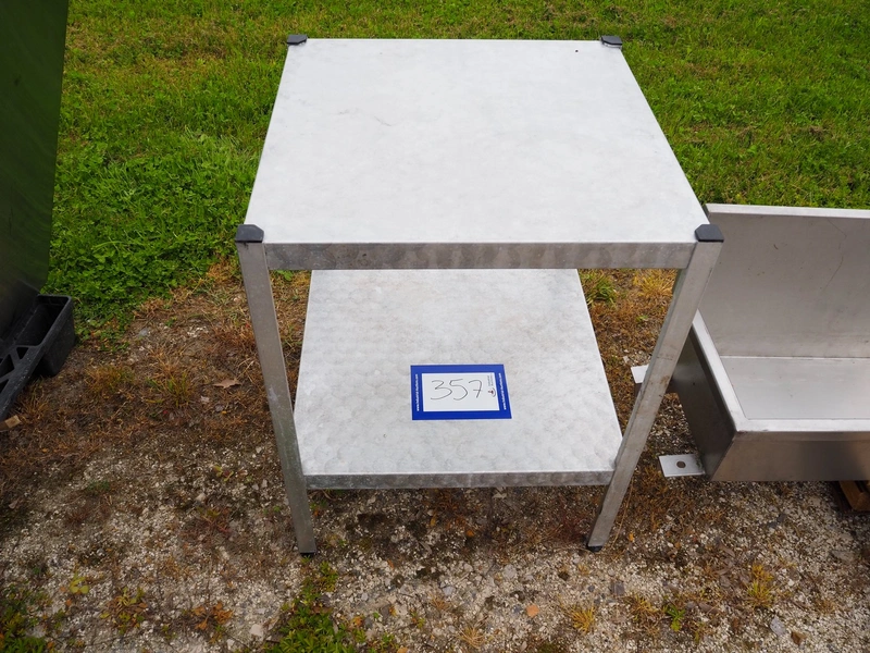 Aluminium table, dimensions: 640 mm x 640 mm x 830 mm.