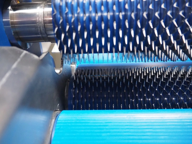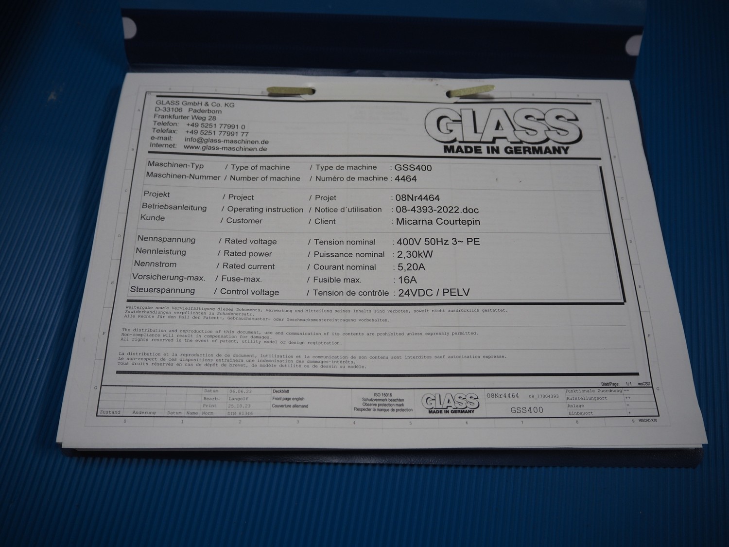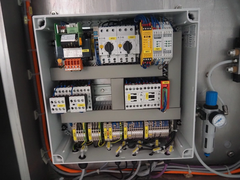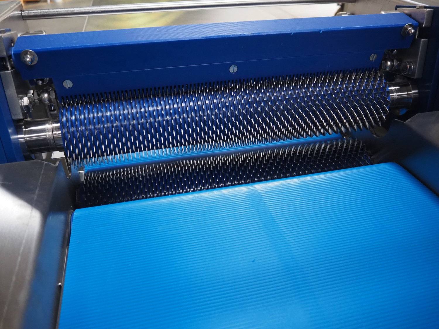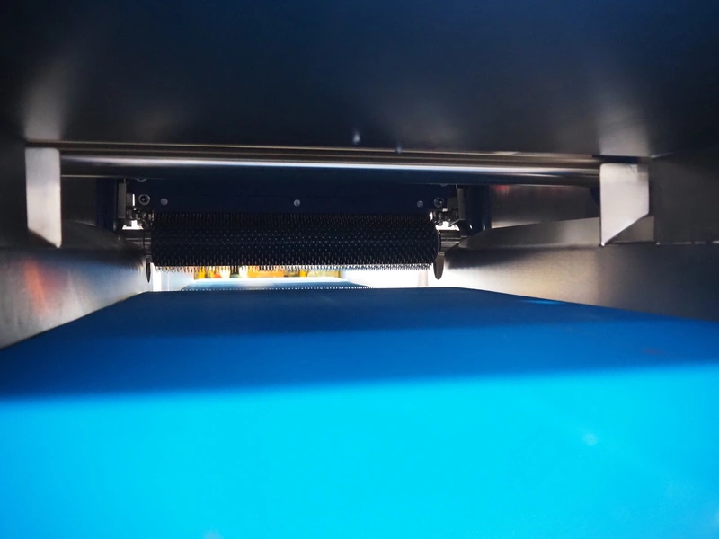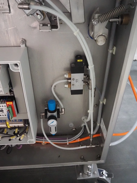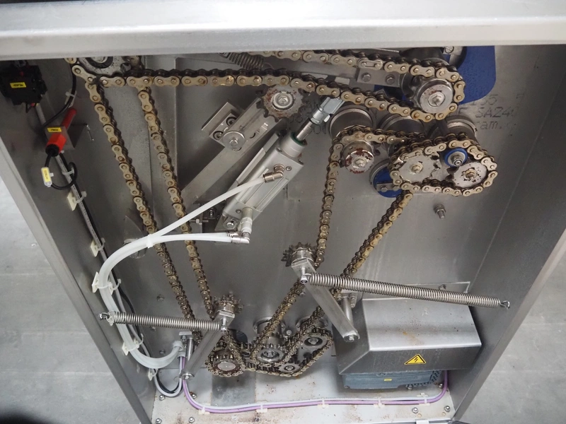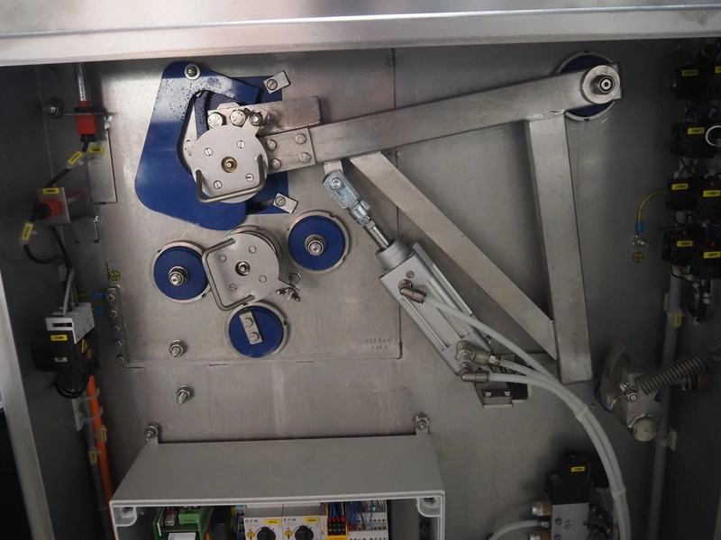 Glass mobile tenderizer, type: GSS-400, number: 4464, year of construction: 2023, 400 V, 3 Ph, 50 Hz, 5.2 A, 2.3 kW, weight: 400 kg, plastic belt, belt width: 440 mm, working width: 420 mm, total dimensions: 2750 mm x 960 mm x 1440 mm.