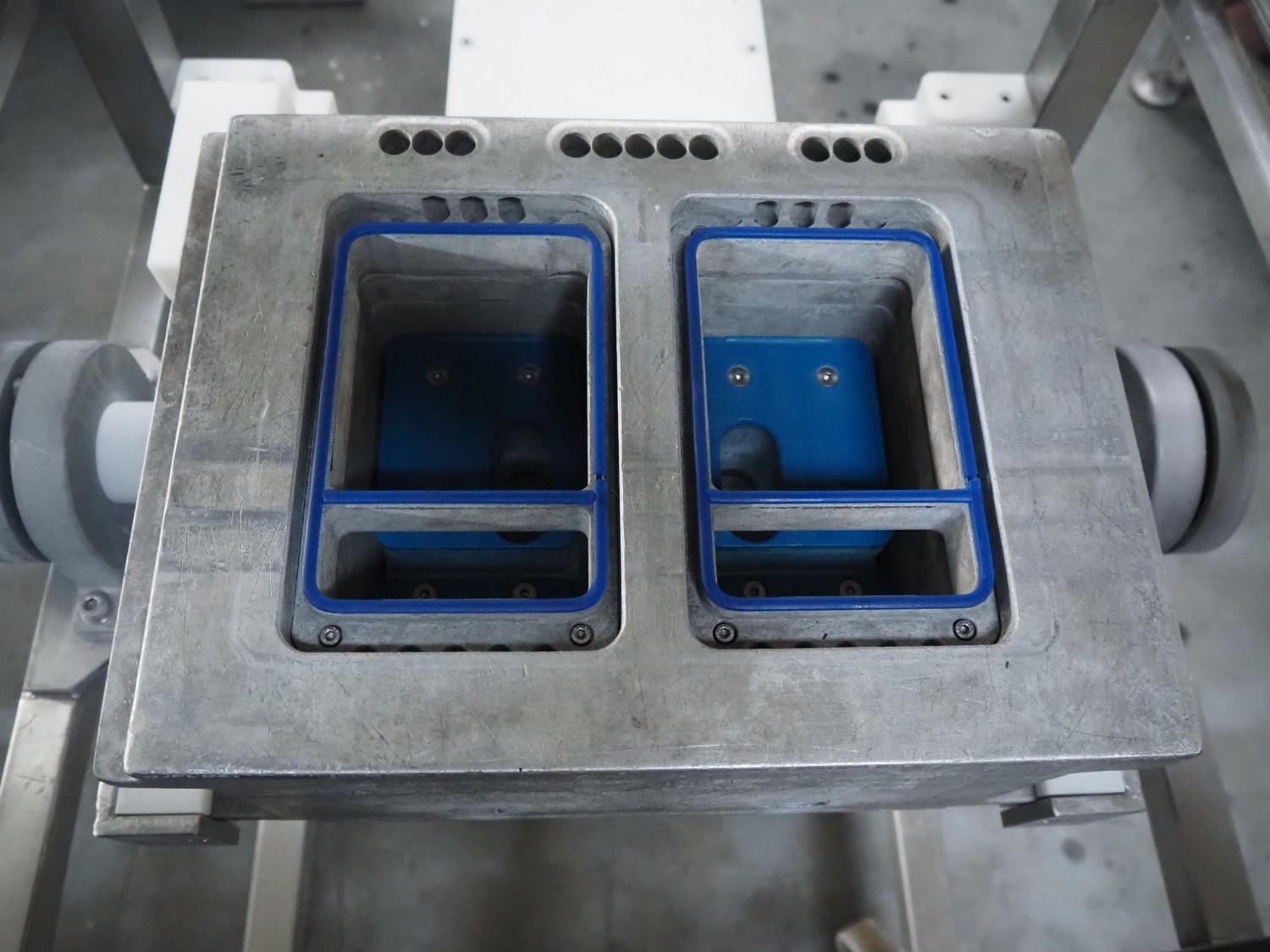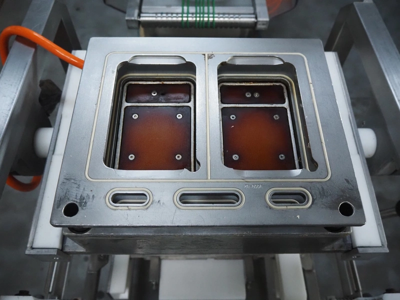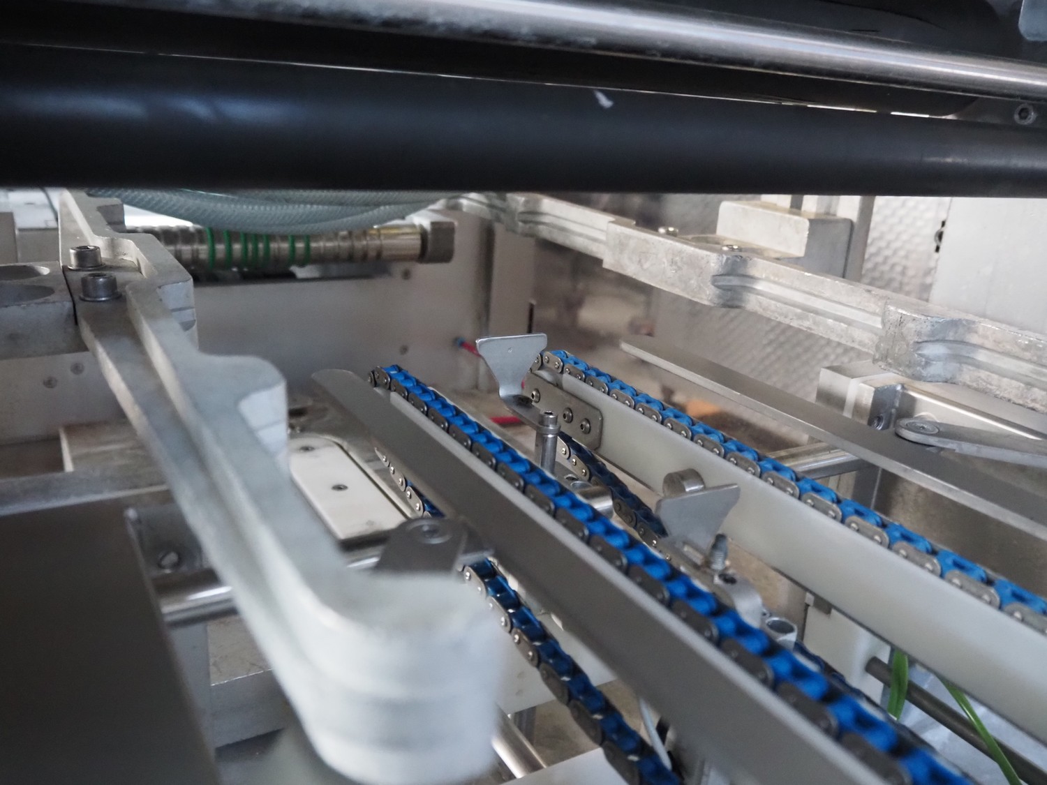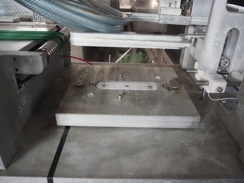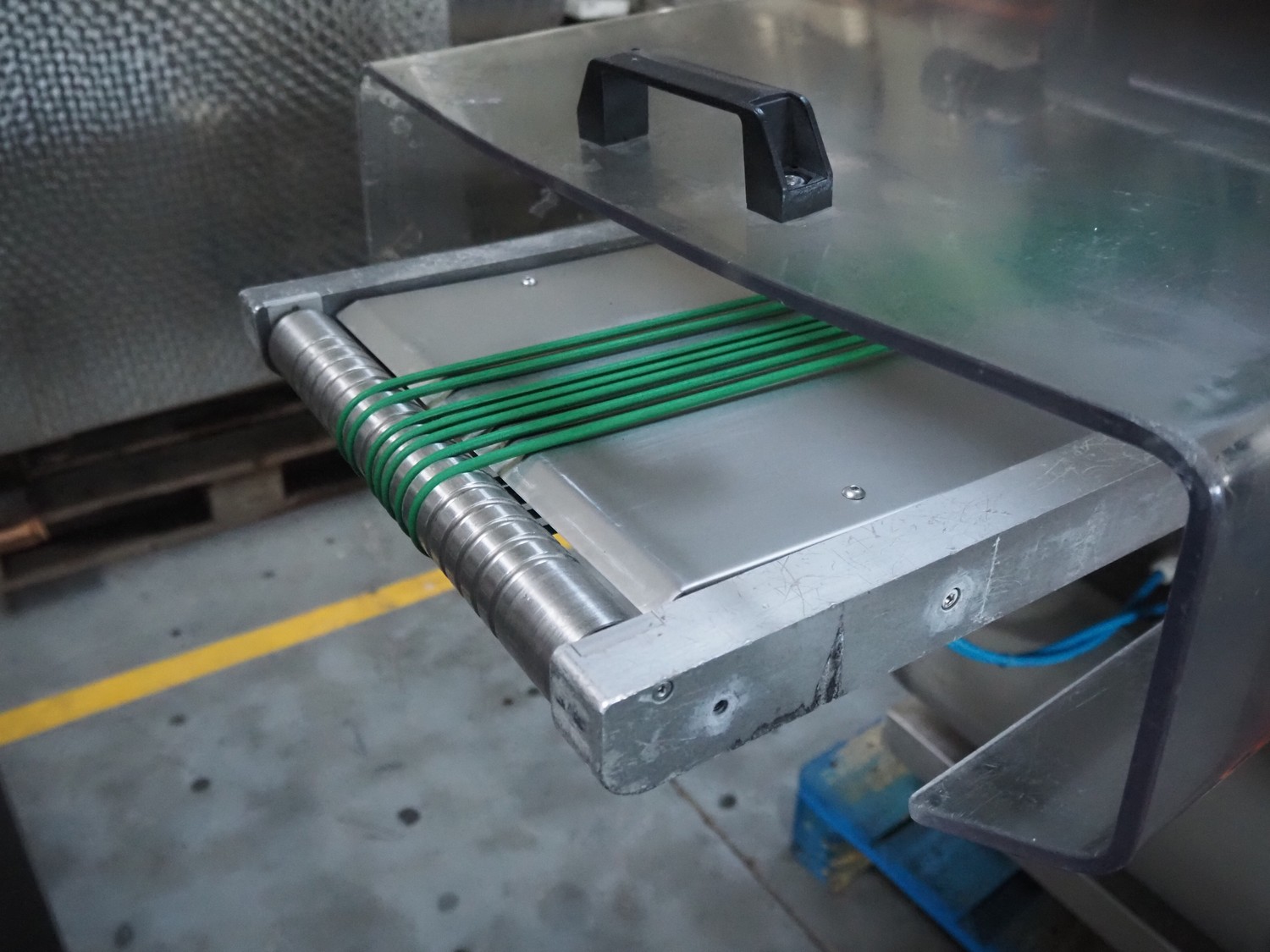Sealpac traysealer, type: SEALPAC 350, serial number: TVG 02 1187 01, year of construction: 2005, 400/230 V, 3 Ph, 50 Hz, 3 kW, weight: 450 kg, plastic wire belt, belt width: 120 mm and 230 mm, Busch vacuum pump, total dimensions: 3250 mm x 750 mm x 1750 mm. Including trolley with dye set, dye: (2x) 160 mm x 105 mm, total dimensions trolley: 700 mm x 700 mm x 1430 mm.