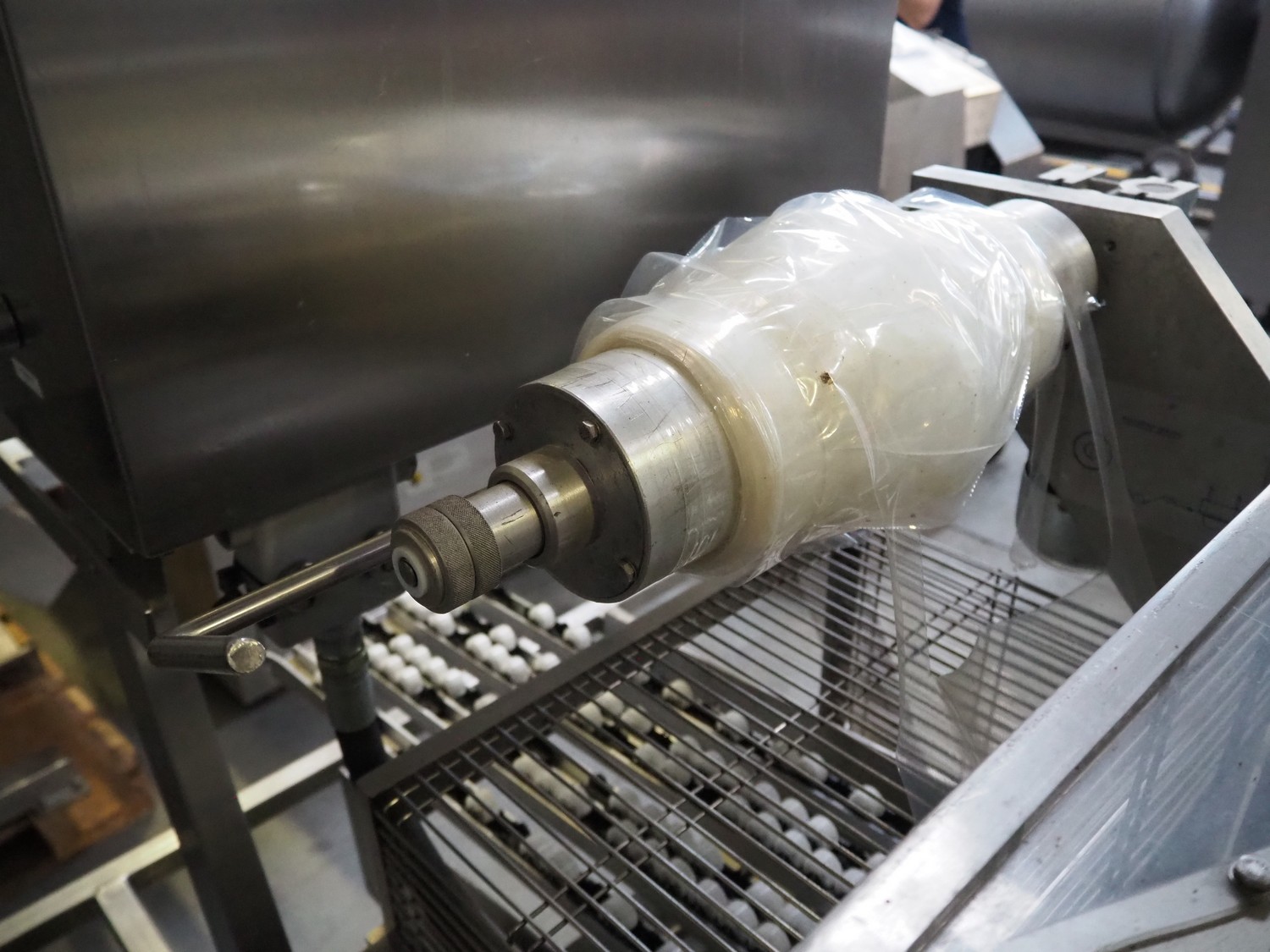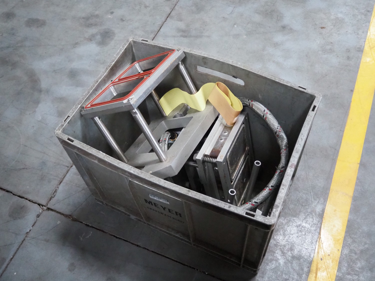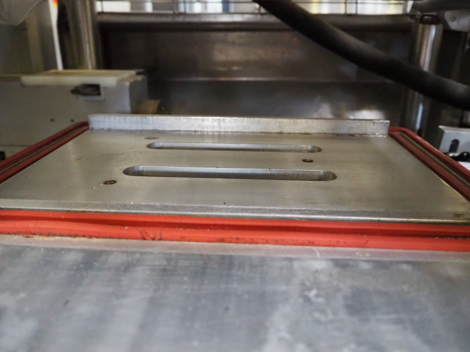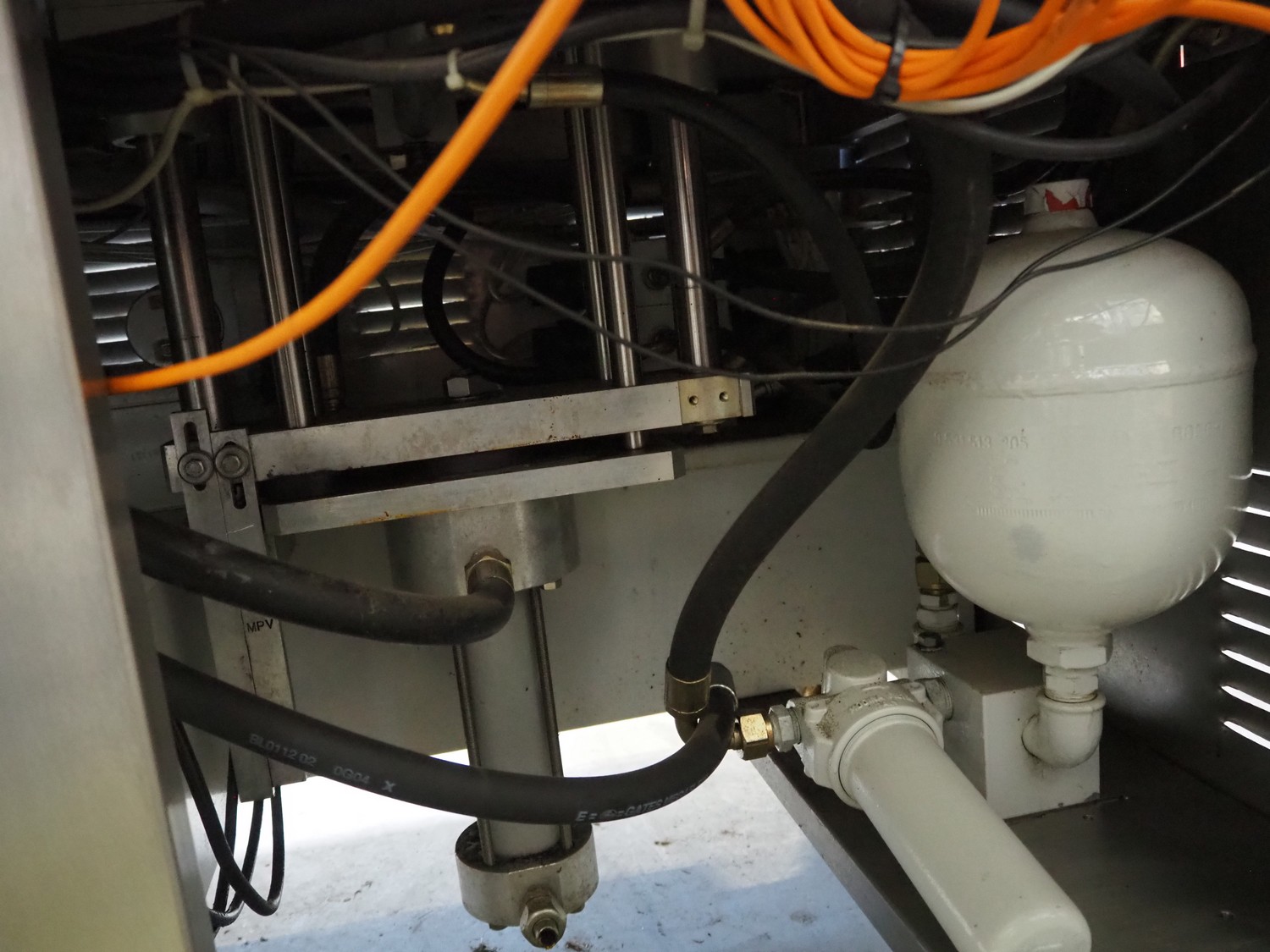Ca.ve.co mobile traysealer, type: STF/1, machine number: 3293, 380 V, 50 Hz, dimensions dye: 315 mm x 215 mm, film width: 260 mm, total dimensions: 1950 mm x 1330 mm x 1830 mm. Including extra dye set, dimensions dye: (2x) 160 mm x 120 mm.