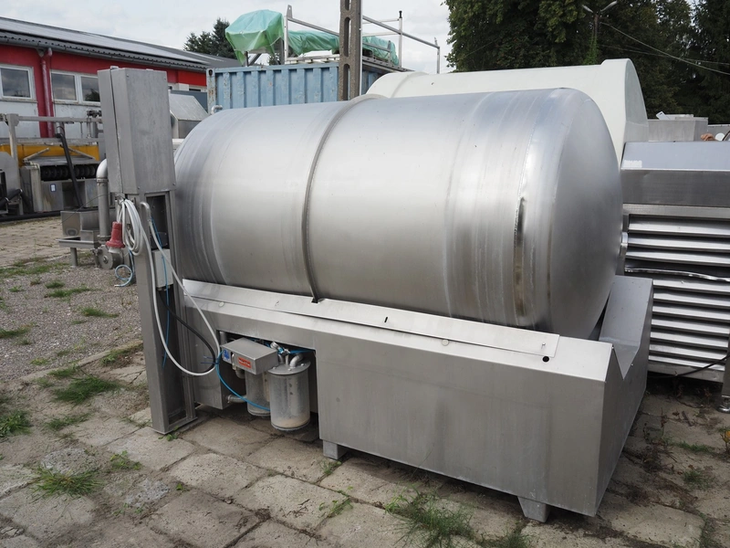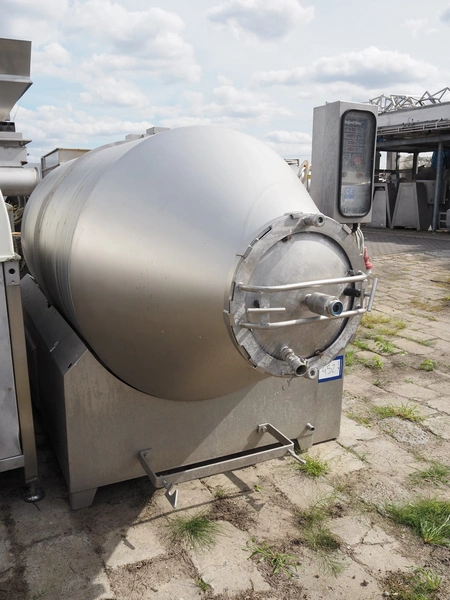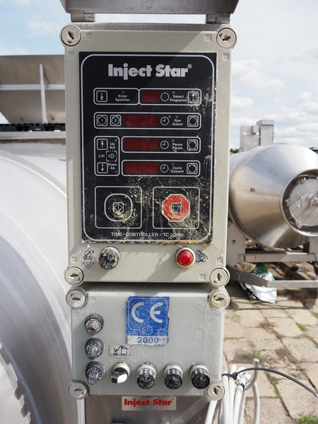 Inject Star / Pökelmaschinen Ges.m.b.H. vacuum tumbler, type: ES-3300-, number: 330, year of construction: 2000, 400 V, 3 Ph, 50 Hz, 6.4 kW, dimensions: 1620 mm x 3100 mm x 1930 mm. Missing vacuum pump.