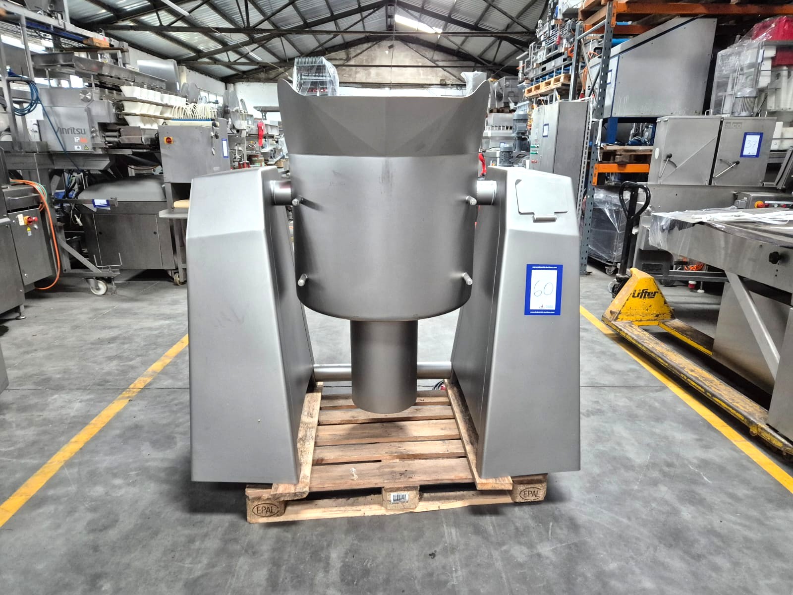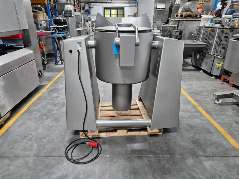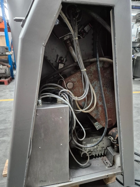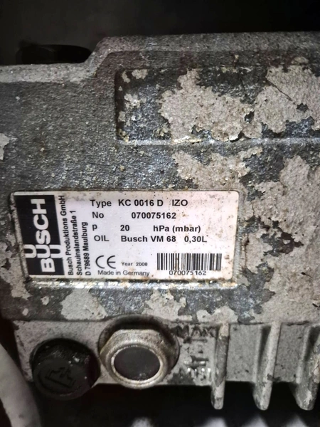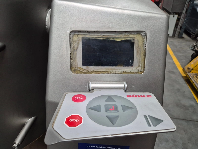 Rühle cooled vacuum tumbler, type: MKR 200 classic 2, number: 0258 G, year of construction: 2008, 400 V, 3 Ph, 50 Hz, 16 A, 3.8 kW, volume: 200 liter, Busch vacuum pump, type: KC016 D IZO, year of construction: 2008, capacity: 16 m³ per hour, total dimensions: 1500 mm x 1000 mm x 1600 mm.