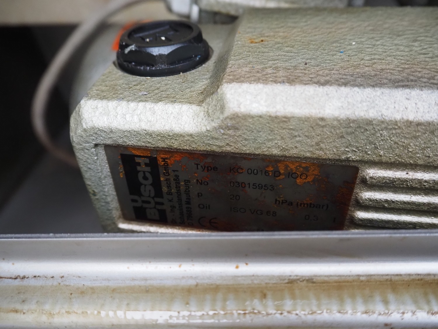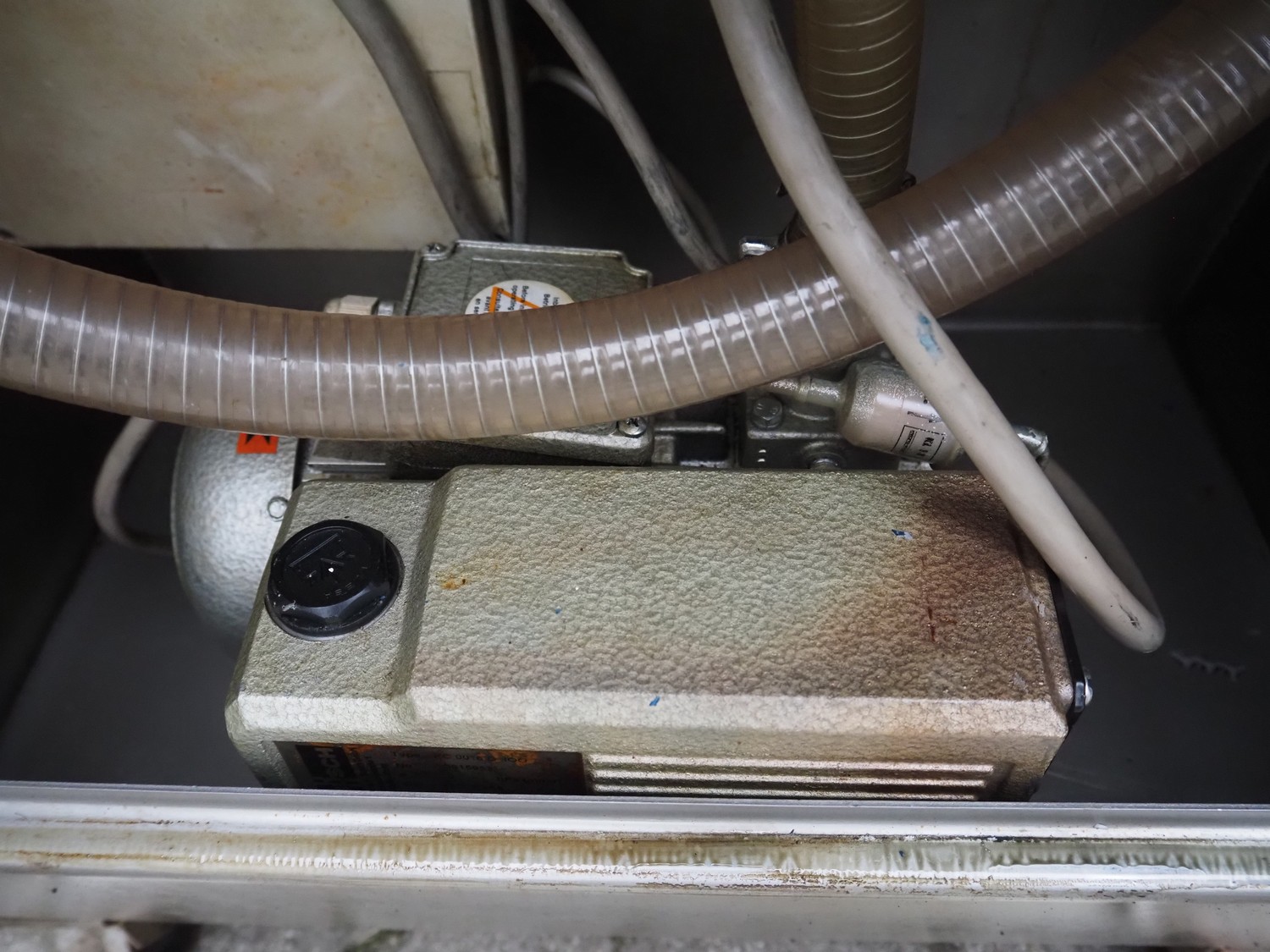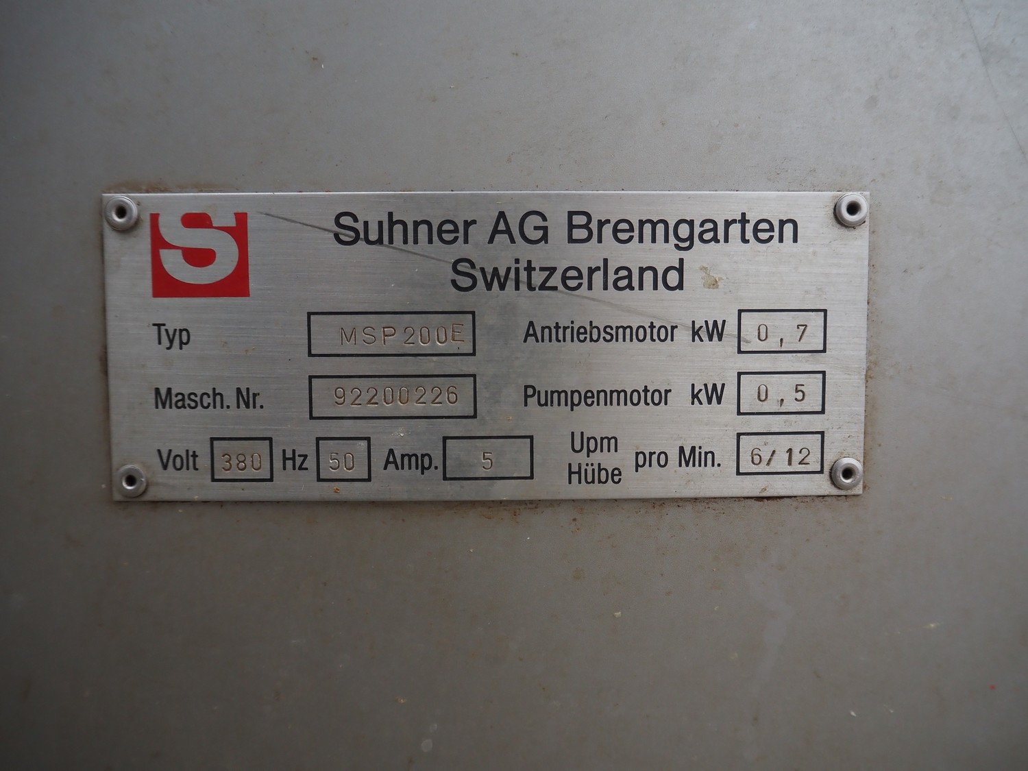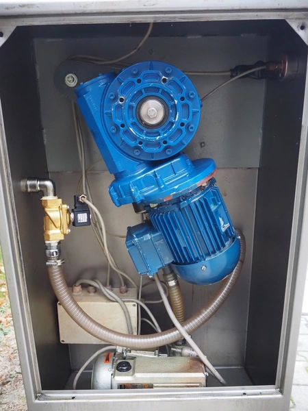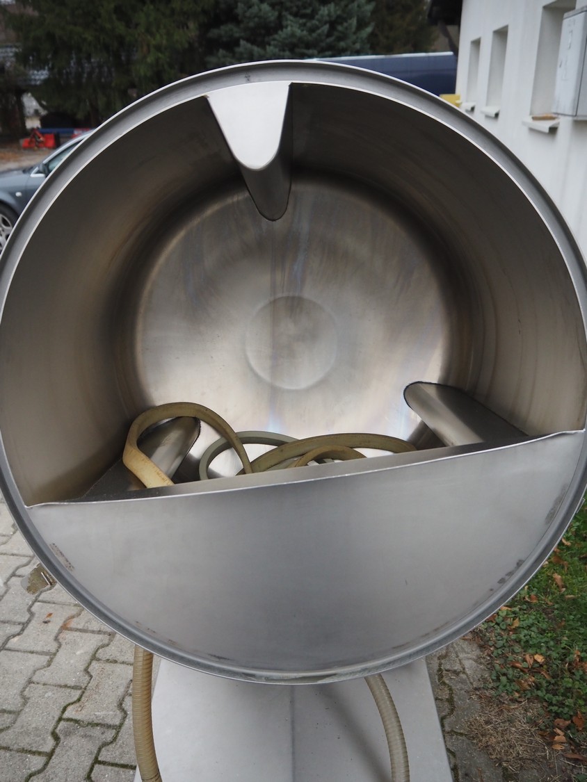 Suhner AG mobile vacuum tumbler, type: MSP 200E, machine number: 92200226, 380 V, 50 Hz, 5 A, 1.2 kW, Busch vacuum pump, type: KC 0016 D IOO, dimensions: 1200 mm x 650 mm x 1500 mm.
