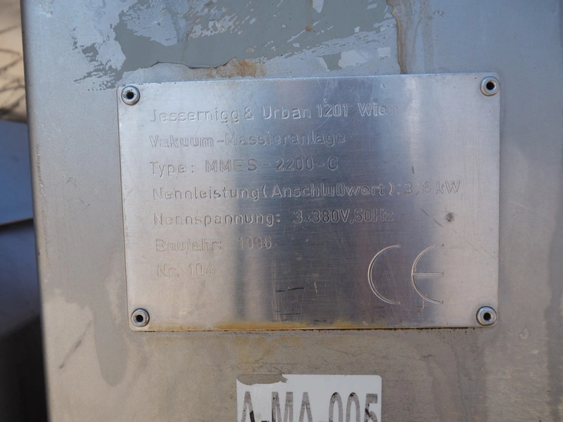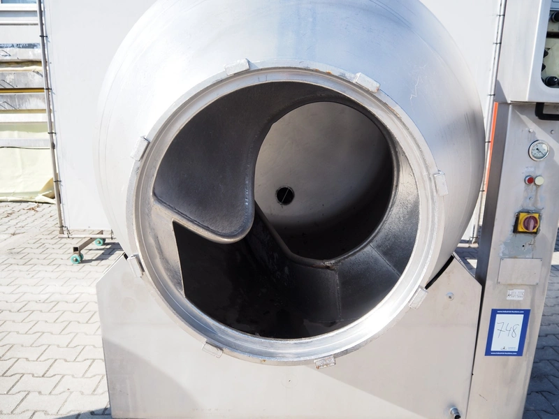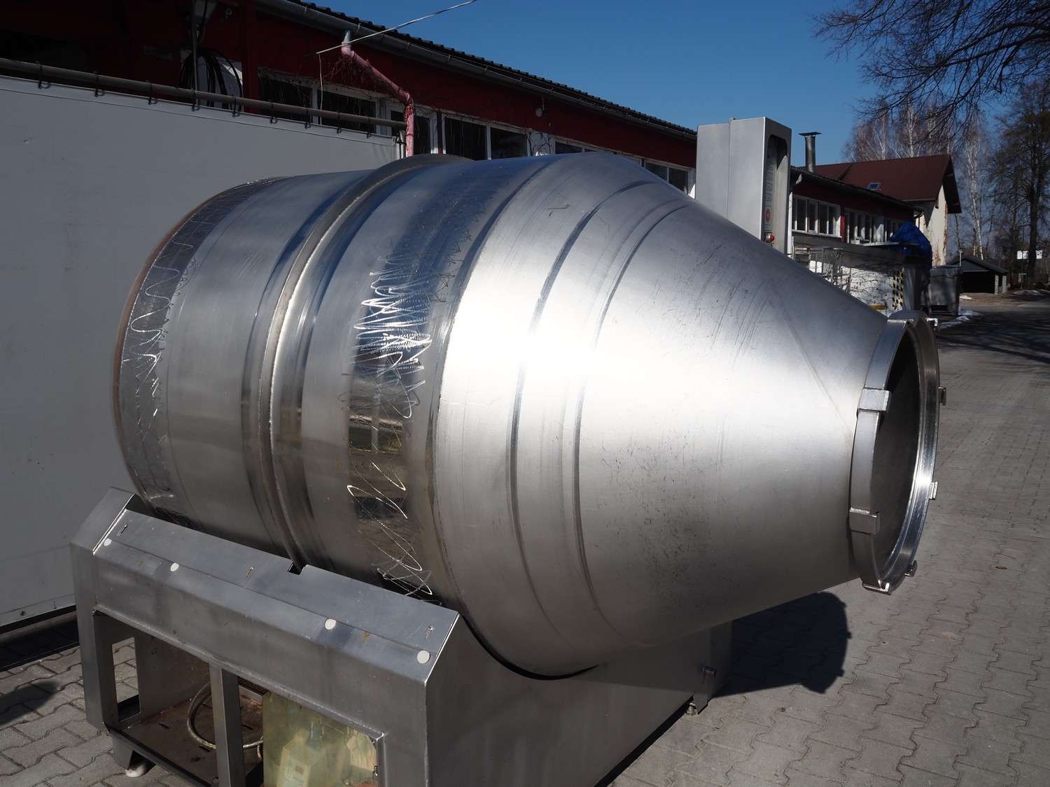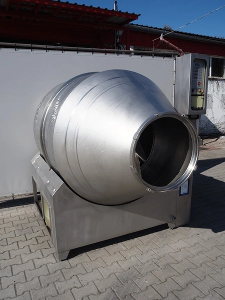 Meat Master vacuum tumbler, type: MMES-2200-C, year of construction: 1996, 380 V, 3 Ph, 50 Hz, 3.8 kW, dimensions: 1800 mm x 2500 mm x 1950 mm. Missing lid, covers and vacuum pump.