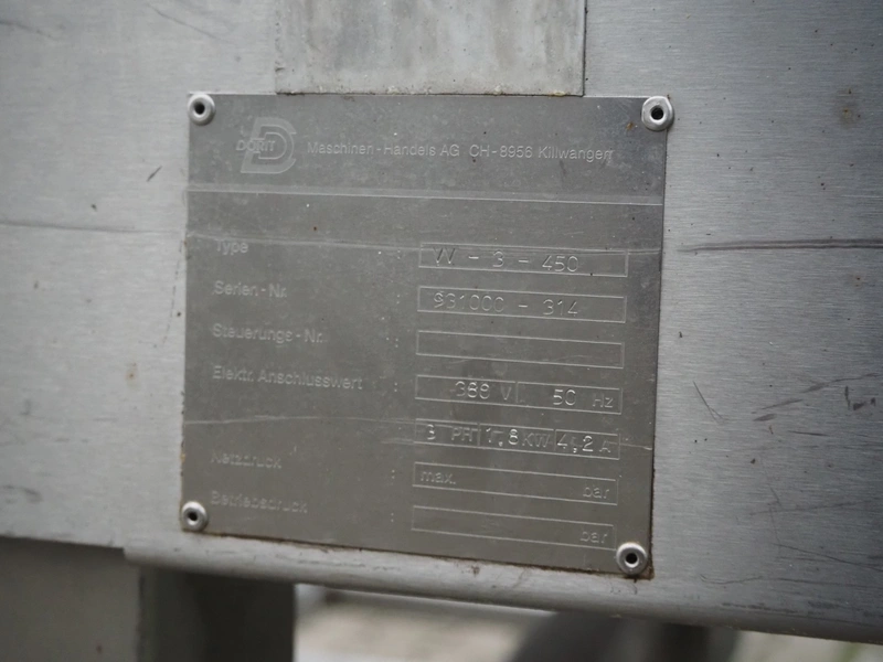 Dorit tumbler, type: VV-3-450, serial number: 931000-314, 380 V, 50 Hz, 3 Ph, 4.1 A, 1.8 kW, dimensions: 1650 mm x 1500 mm x 2050 mm.
