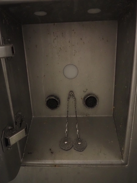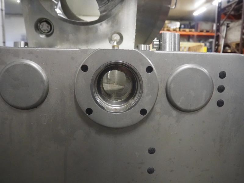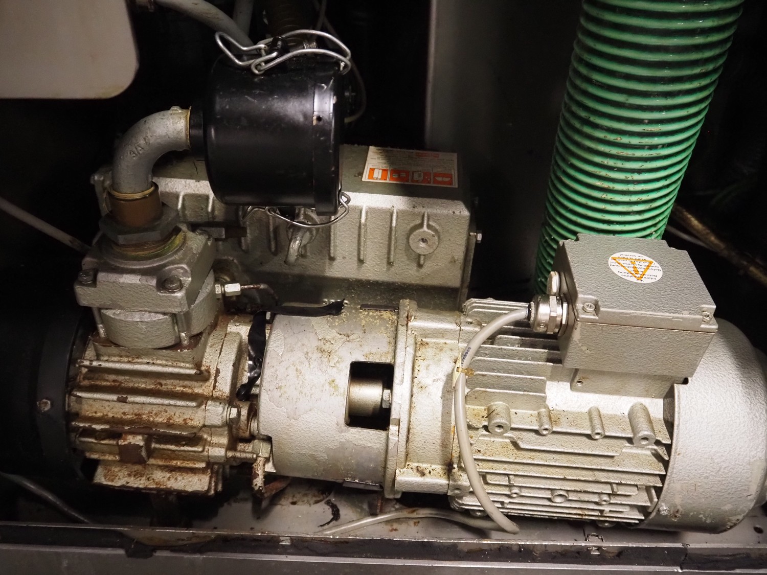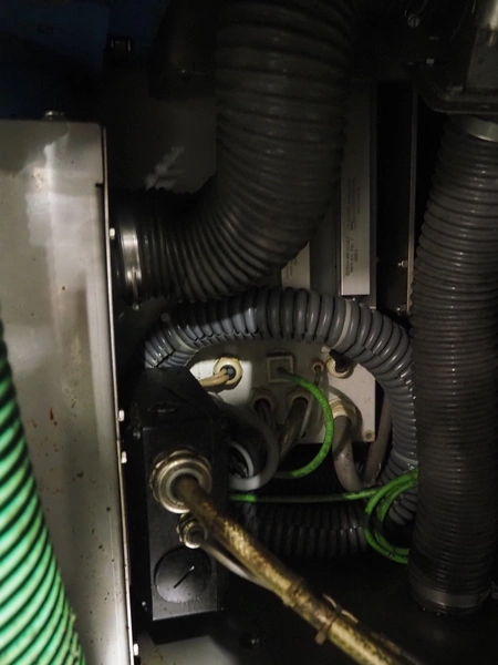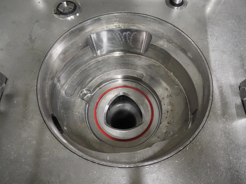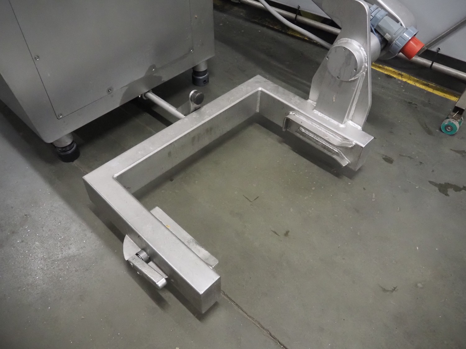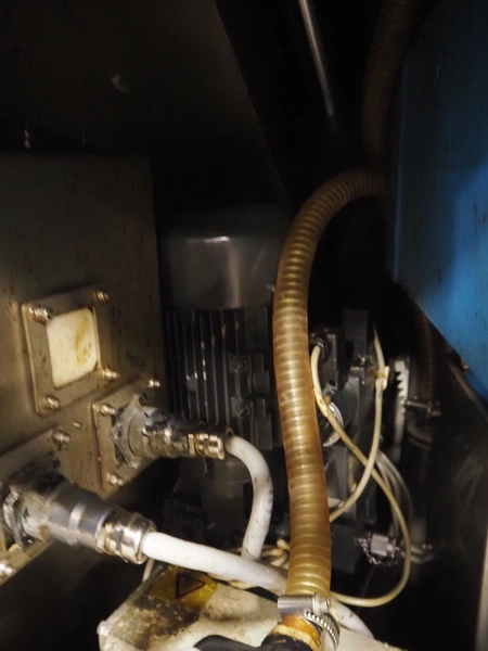 Rex Technologie vacuum filling machine with lifter for 200 liter meat bins, type: RVF 911, machine number: 9110090529, 400 V, 3 Ph, 50 Hz, 44 A, 22 kW, dimensions: 2100 mm x 1400 mm x 2070 mm. Including crate with parts and 2 rotors with 8 and 16 vanes.