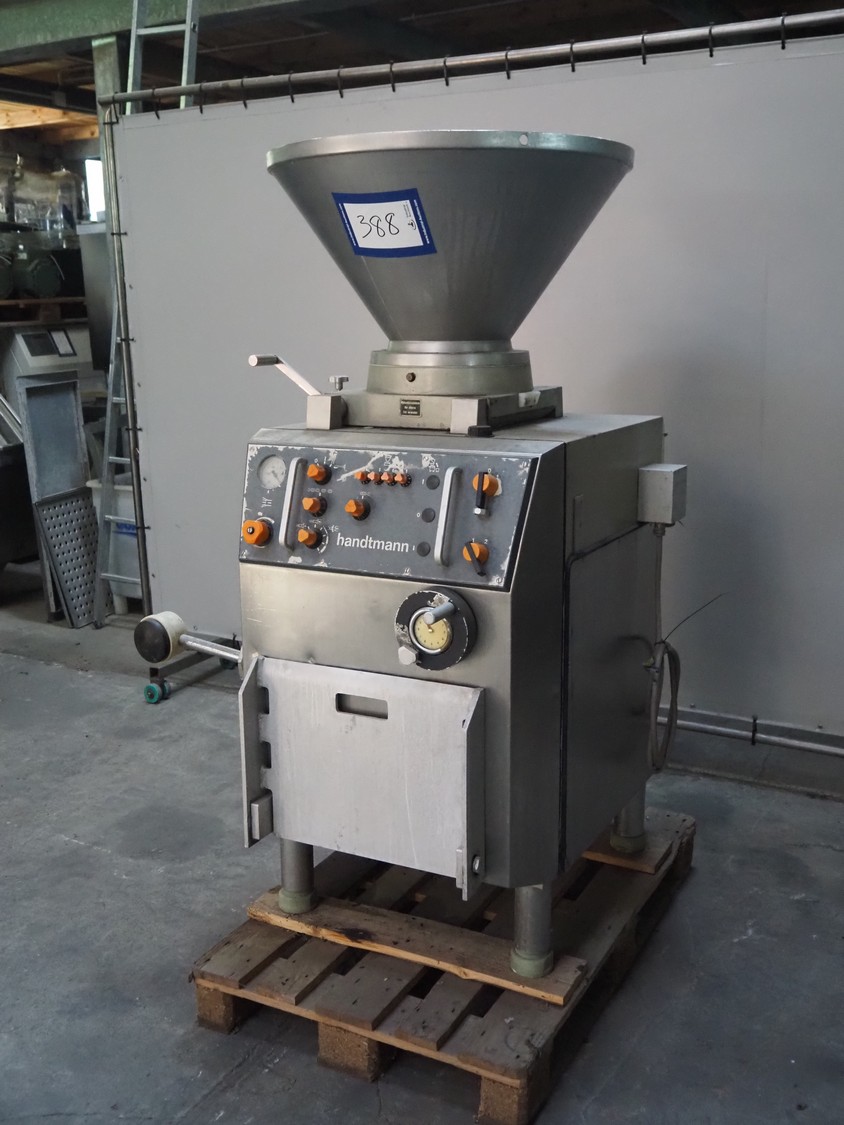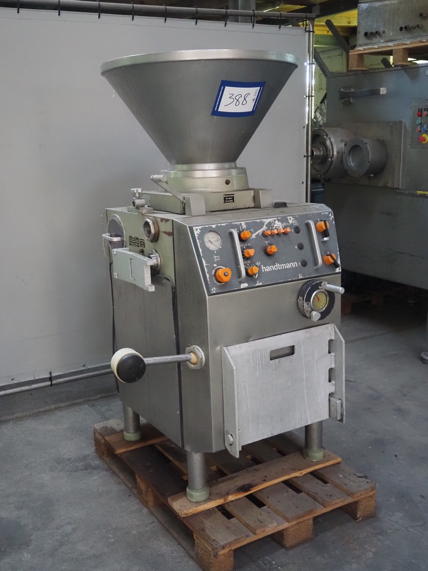 Handtmann vacuum filling machine, type: VF12, serial number: 100/1691-1, dimensions: 1070 mm x 1050 mm x 1700 mm.