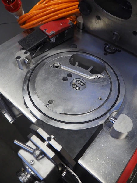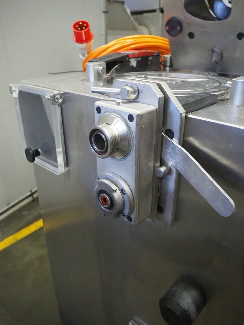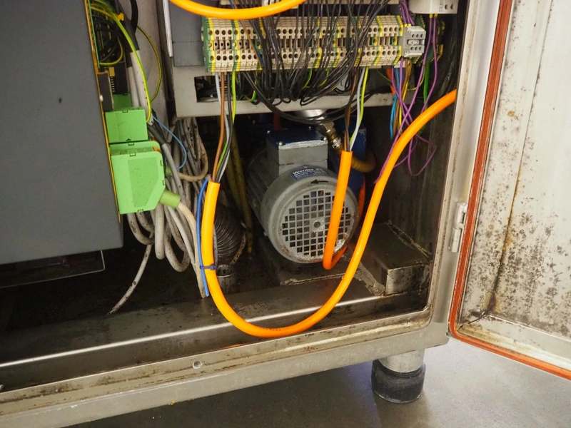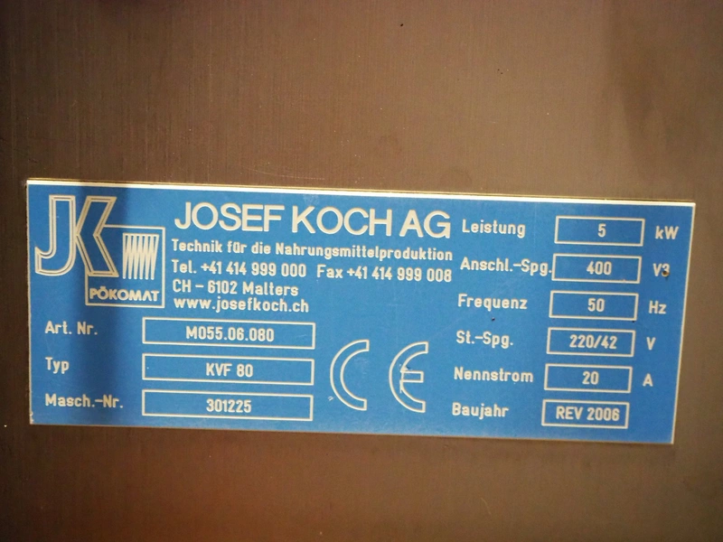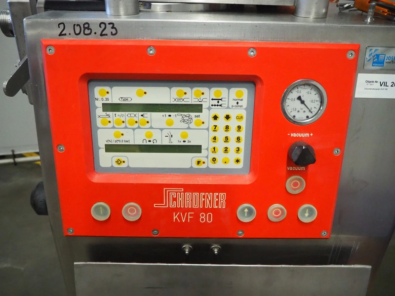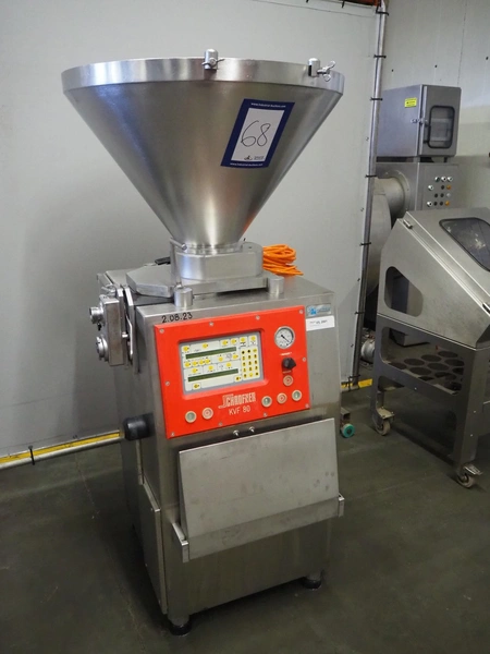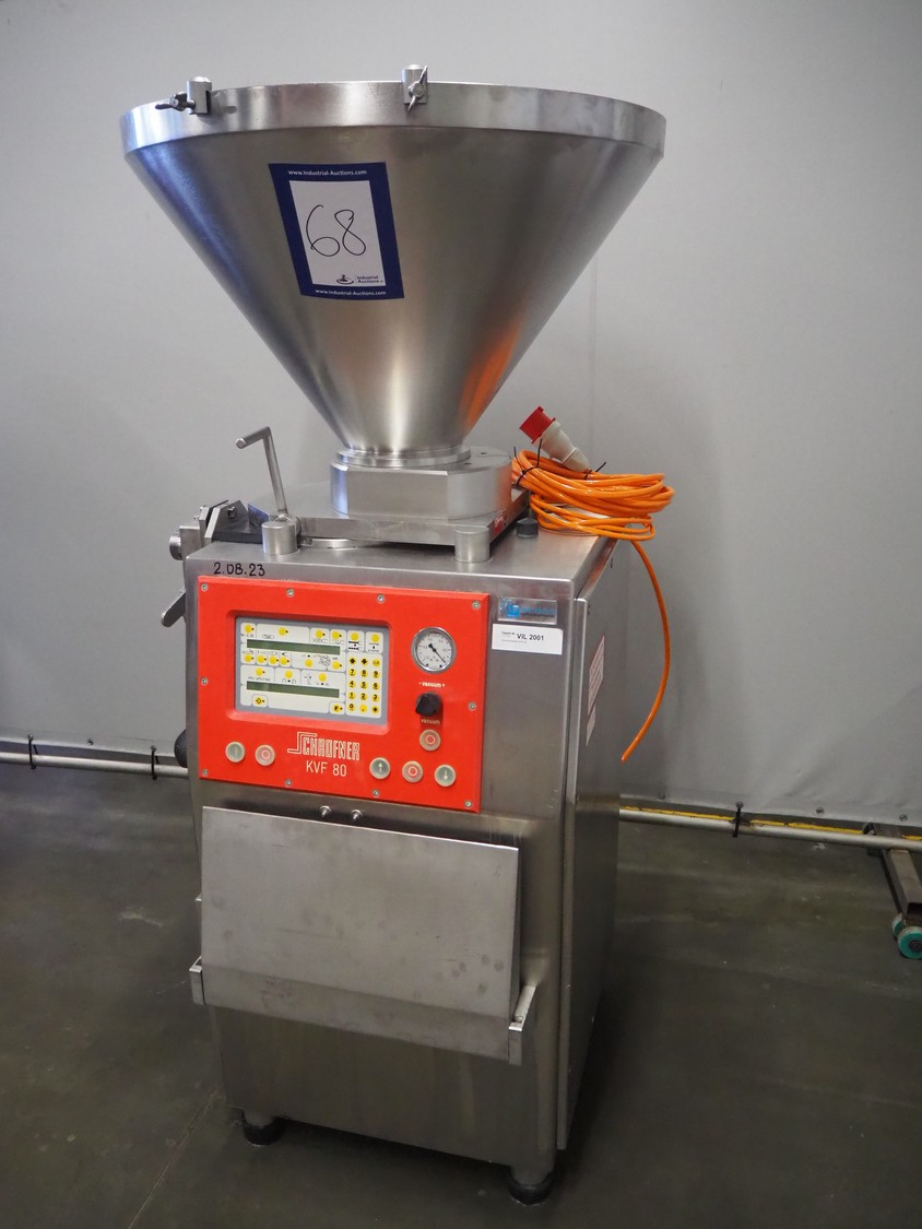 Schrofner vacuum filling machine, type: KVF 80, number: 301225, year of revision: 2006, 220/42 V, 50 Hz, 20 A, 5 kW, dimensions: 800 mm x 700 mm x 1750 mm.