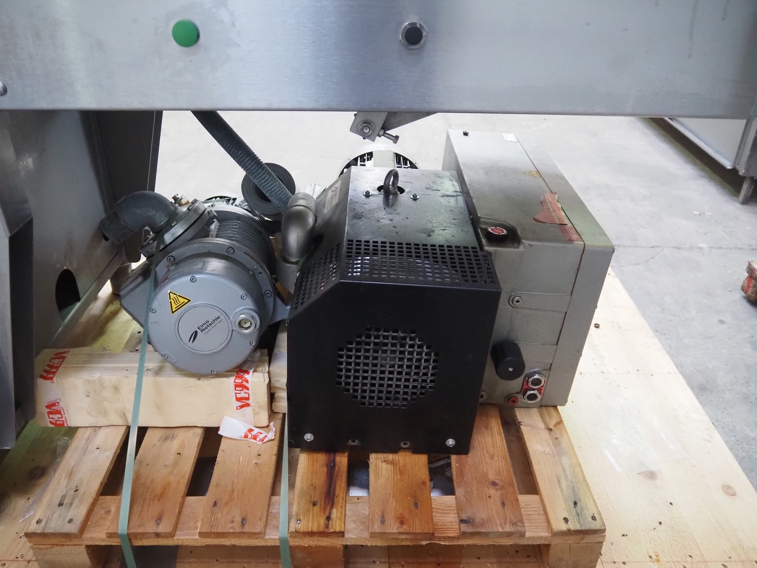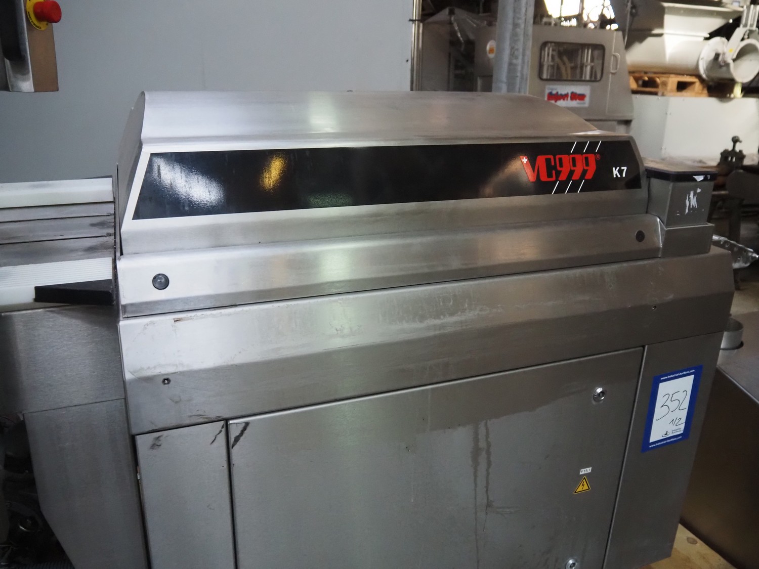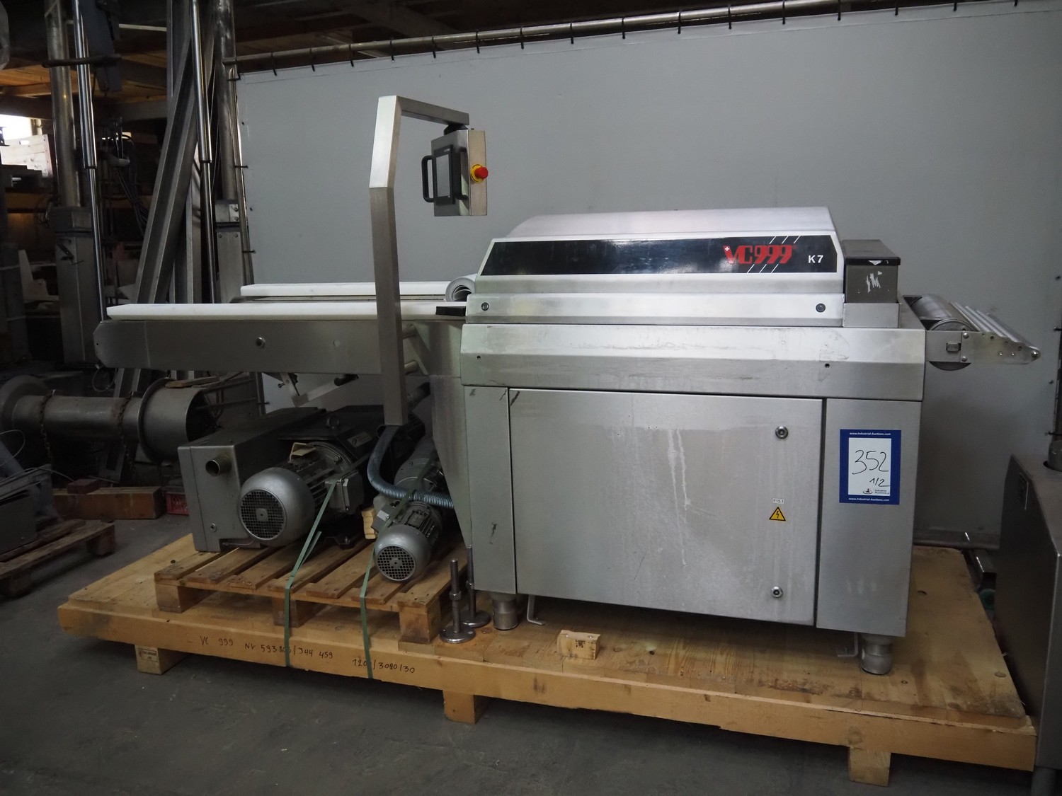 VC999 Verpackungssysteme AG belt vacuum machine, type: VC999 K7A, machine number: 1708016, year of construction: 2008, 400 V, 3 Ph, 50 Hz, 25 AT, 4 kW, 6 bar, plastic belt, belt width: 610 mm, total dimensions: 3100 mm x 1100 mm x 1650 mm. Including vacuum pump and suction device, dimensions: 750 mm x 700 mm x 900 mm.