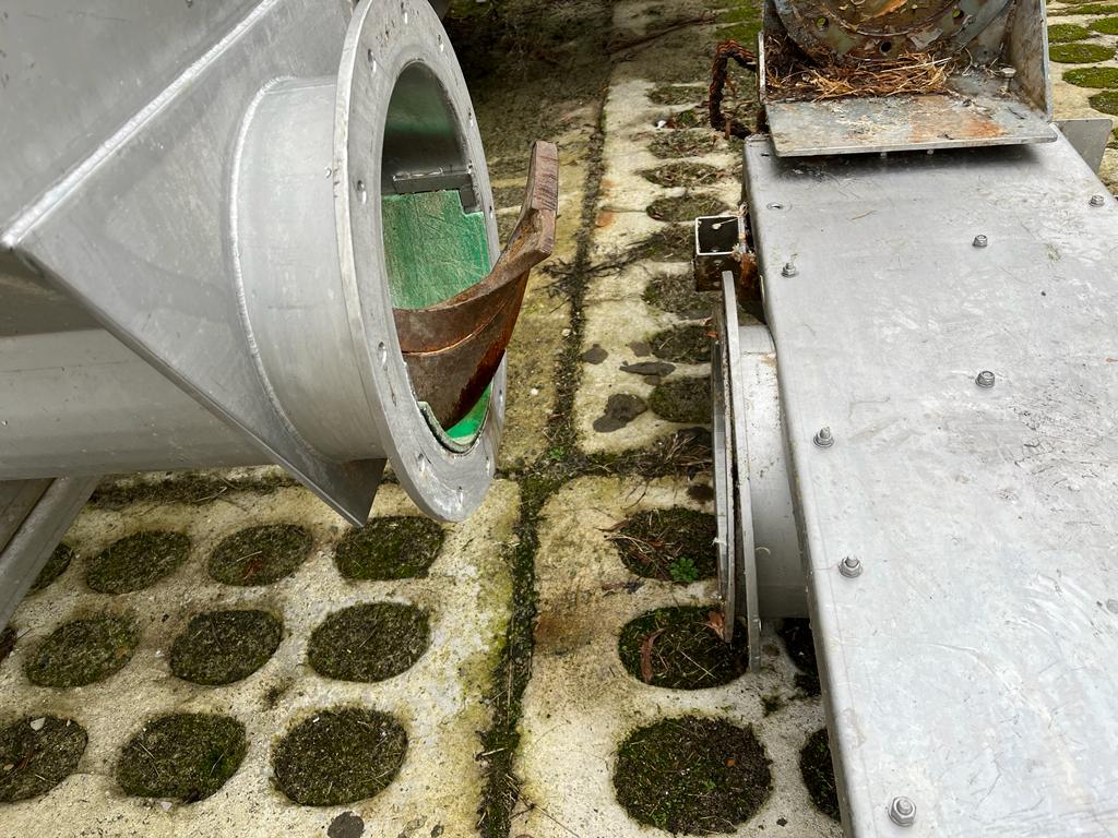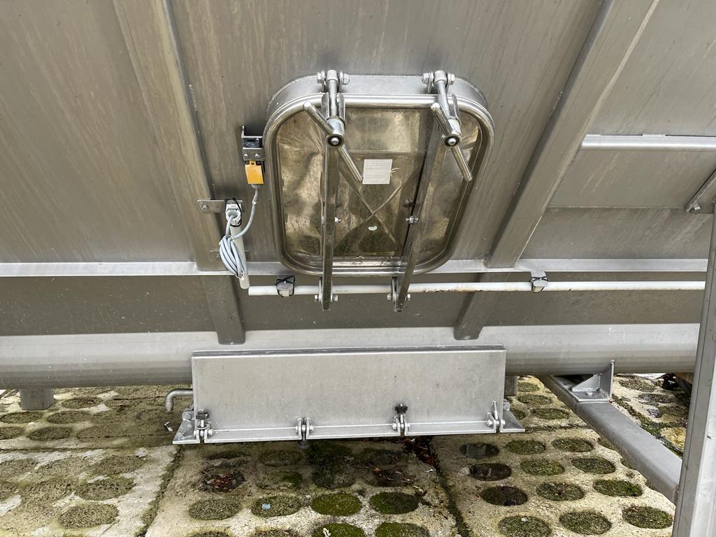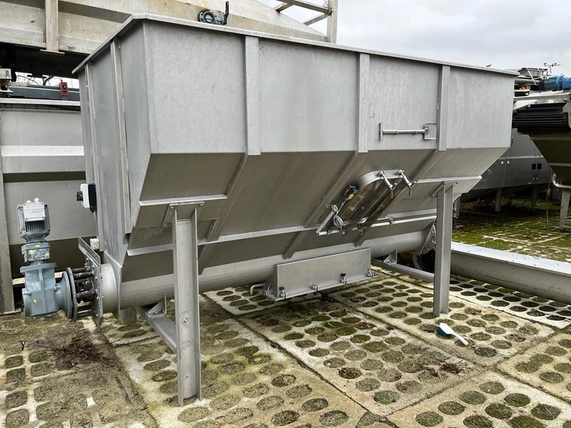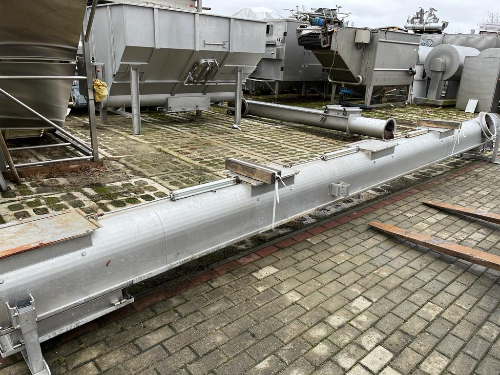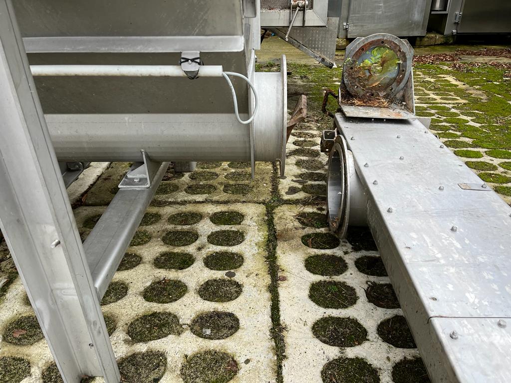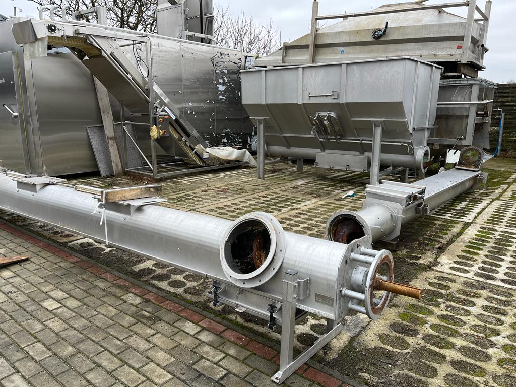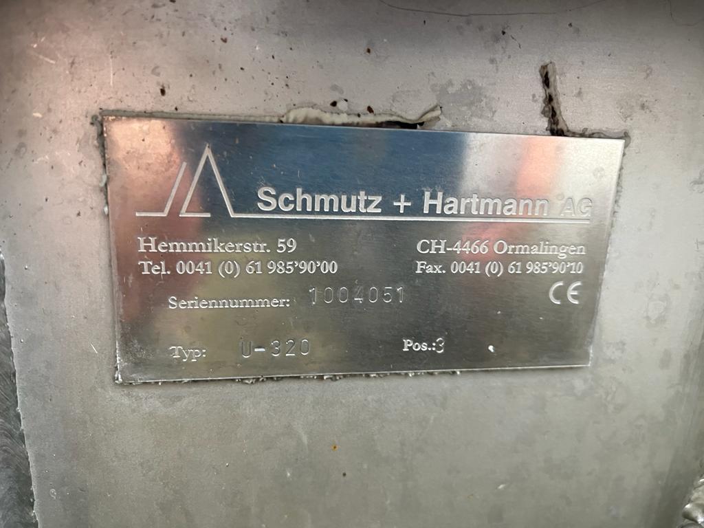 Schmutz + Hartmann AG waste depositing line, type: U-320, serial number: 1004051, consisting of: S/s tank, volume: 4000 liters, dimensions: 2100 mm x 2000 mm x 2800 mm.Elevating screw, elevating height: 3000 mm, total dimensions: 4800 mm x 400 mm x 600 mm.Transport screw, diameter input: 32 mm, total dimensions: 7200 mm x 400 mm x 600 mm.