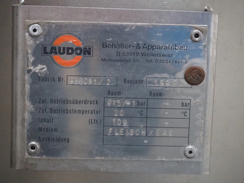 Laudon mobile pressure vessel for adding oxygen, fabrication number: 888091/2, year of construction: 1998, dimensions: 700 mm x 500 mm x 1080 mm.