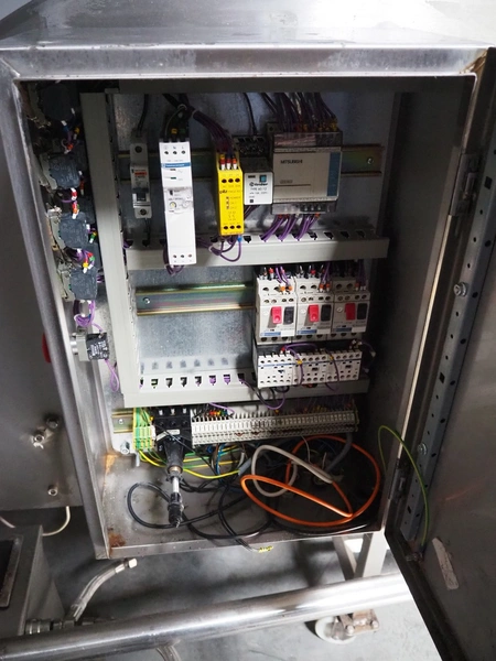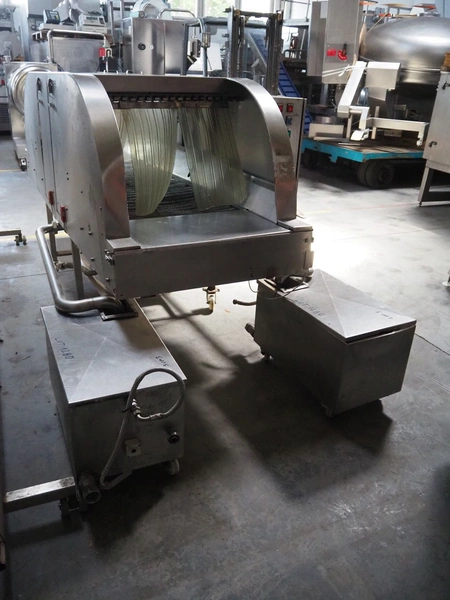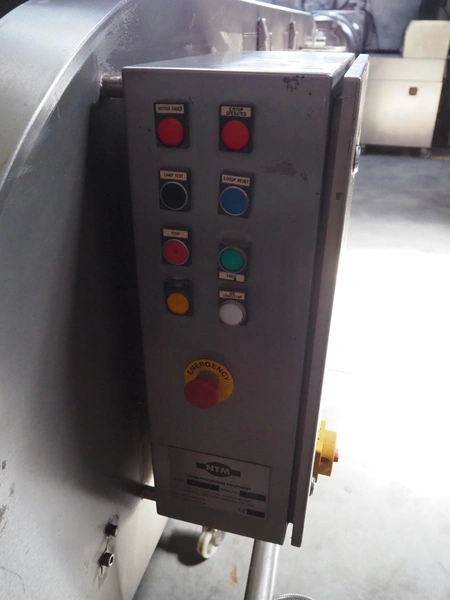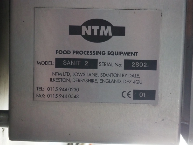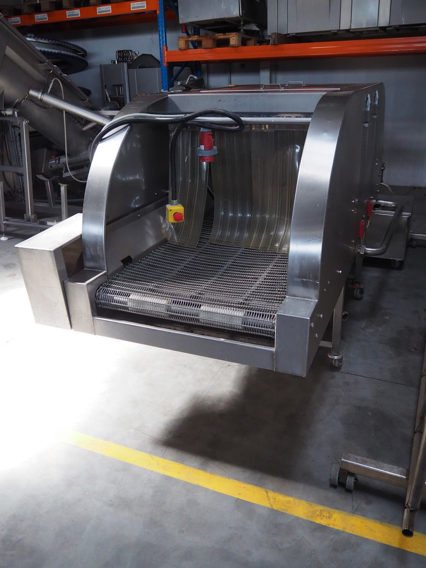 NTM washer, model: Sanit 2, serial number: 2802, year of construction: 2001, s/s mesh belt, belt width: 660 mm, clearance: 660 mm x 500 mm, total dimensions: 2850 mm x 1400 mm x 1450 mm. Including 2 mobile filter tubs, dimensions: (2x) 800 mm x 400 mm x 500 mm.