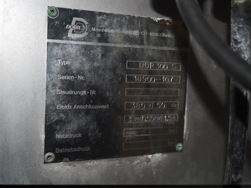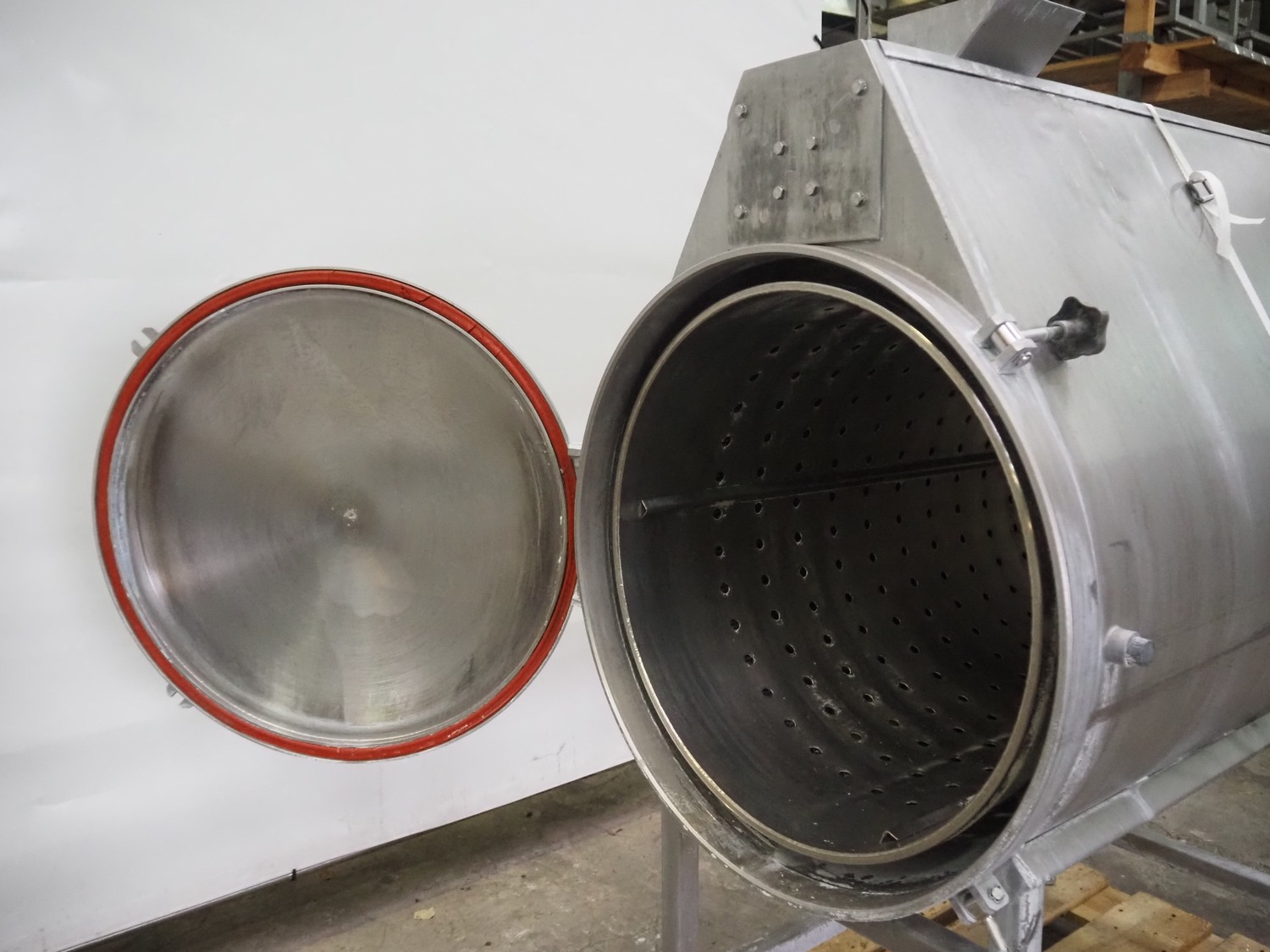 Dorit smoke stick washer, type: DOR 300 S, serial number: 18900-107, 380 V, 3 Ph, 50 Hz, 1.5 A, 0.55 kW, inside dimensions: Ø 615 mm x 1070 mm, total dimensions: 1500 mm x 700 mm x 1500 mm.