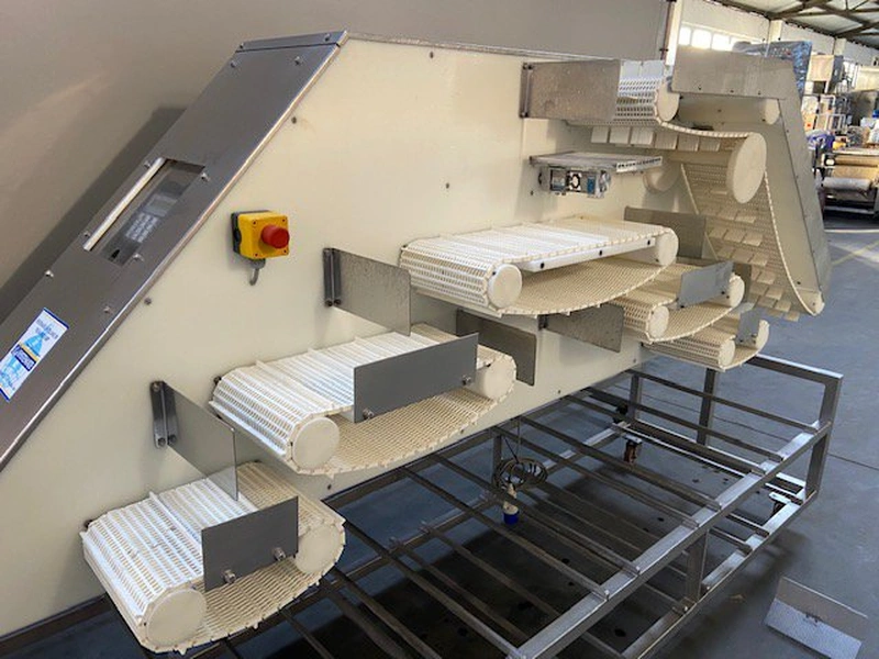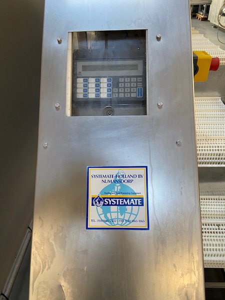 Systemate Holland BV weight distribution system for poultry elements, 7 weighing sensors, total dimensions: 2900 mm x 800 mm x 1650 mm