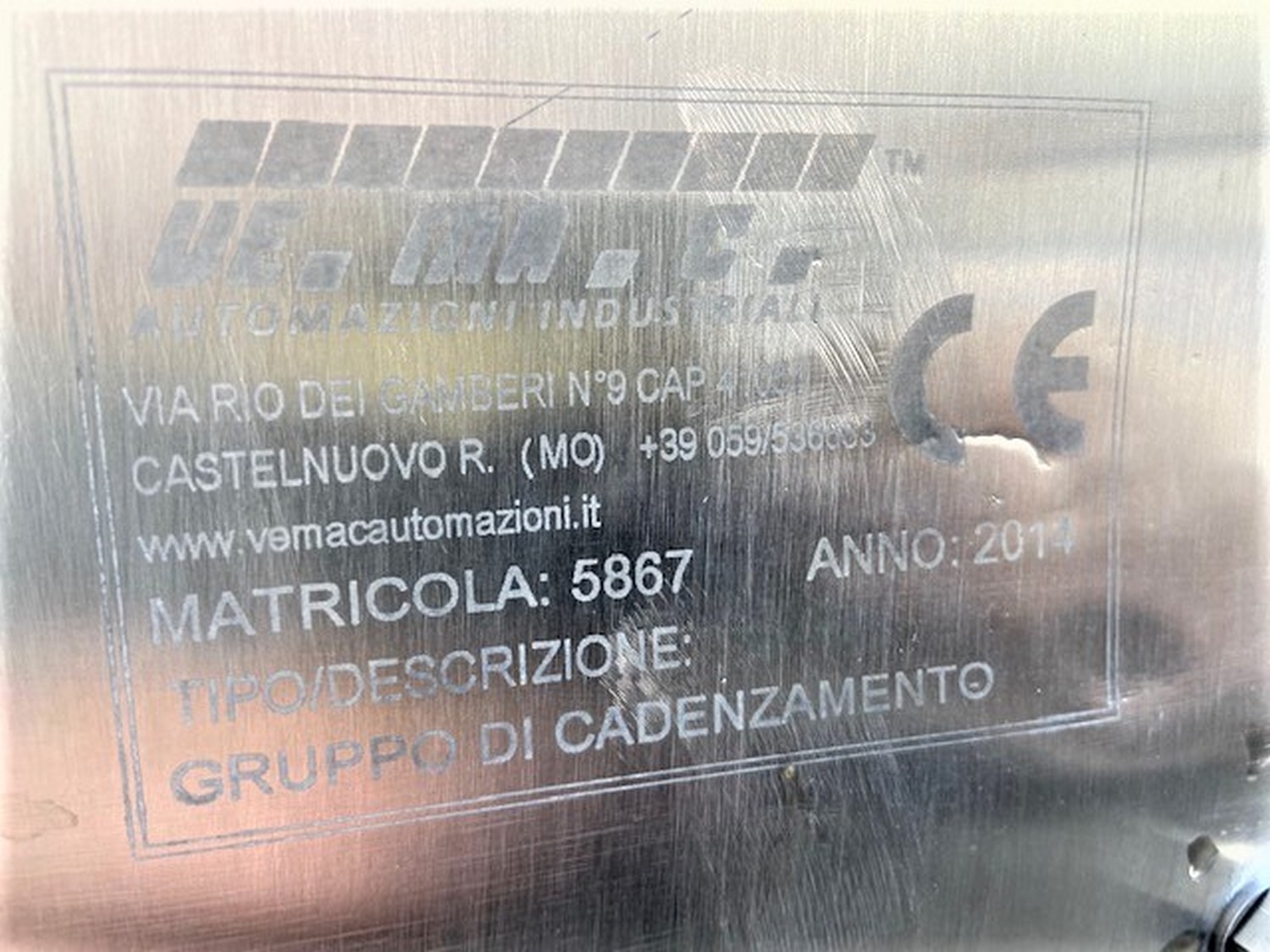 VE.MA.C. Automazioni Industriali salami calibrator, machine number: 5867, year of production: 2014, transporter dimensions: 2700 mm x 400 mm, total dimensions: 2700 mm x 1100 mm x 1700 mm.