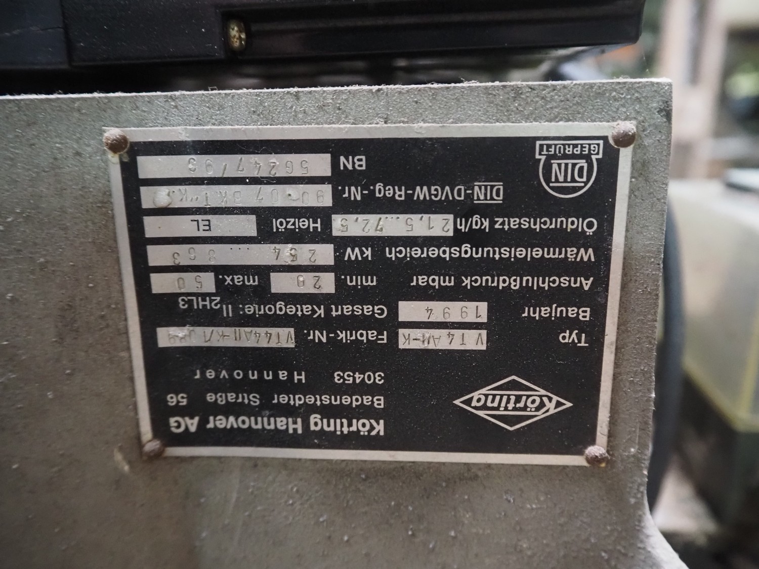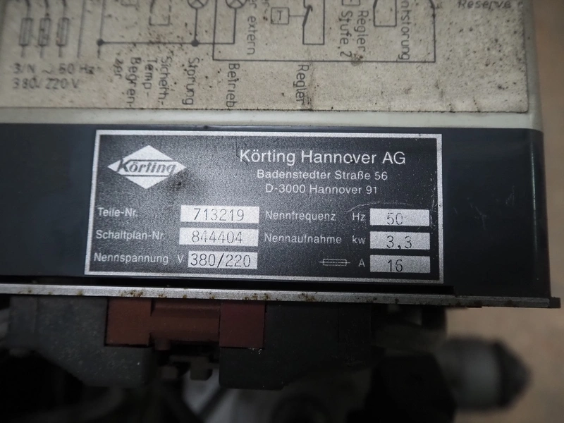 Körting burner, type: VT4 all-K, factory number: VT44 all-K / 1089, year of construction: 1994, 380-220 V, 50 Hz, 16 A, 1.5 kW, dimensions: 760 mm x 640 mm x 920 mm.