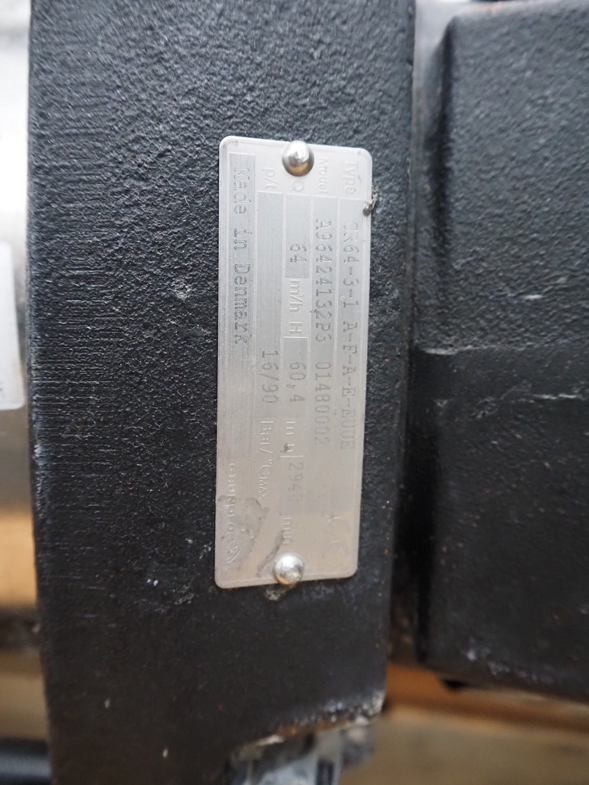 2 Grundfos centrifugal pumps, type: CRN 64-3-1 AFAE-EUUE, model: A96424132P3, dimensions: (2x) 1300 mm x 370 mm x 370 mm.