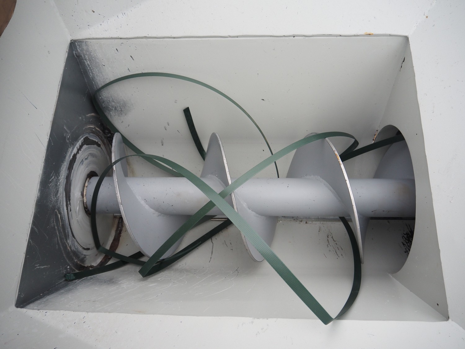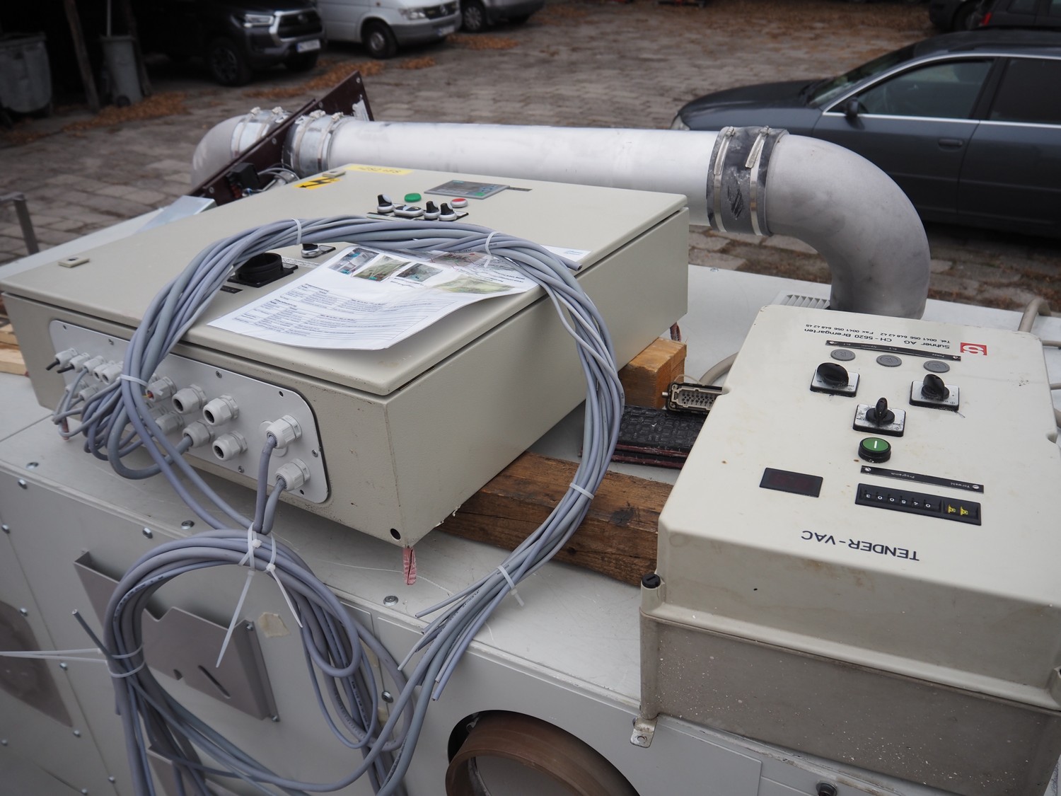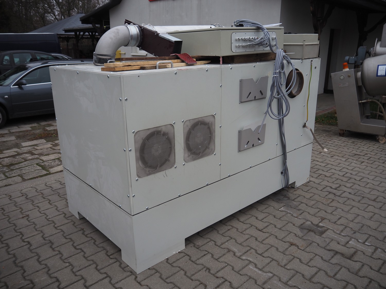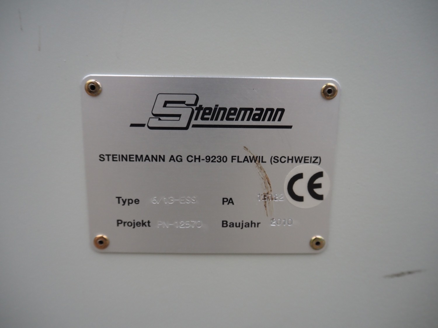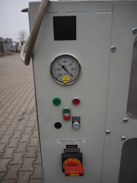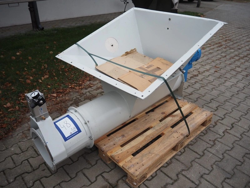 Steinemann roots blower, type: 6/13-ESS, number: 13122, year of construction: 2010, dimensions: 2380 mm x 1260 mm x 1750 mm. With infeed screw on pallet, dimensions: 2200 mm x 800 mm x 1100 mm.