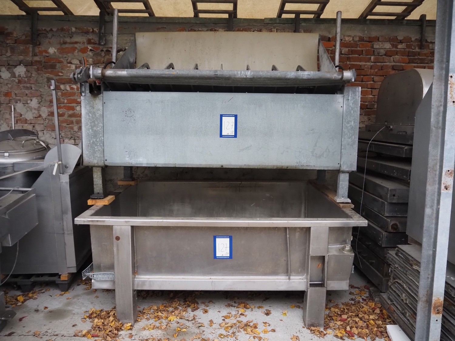 Dehairing machine, working width: 1950 mm, total dimensions: 2300 mm x 1800 mm x 2800 mm.