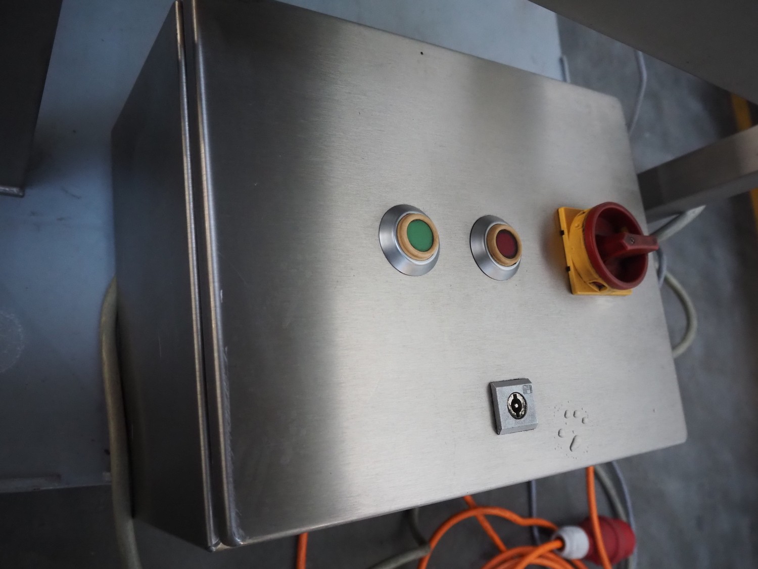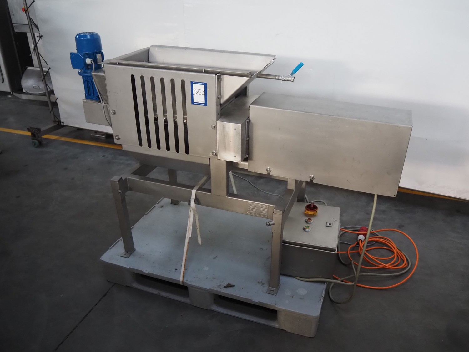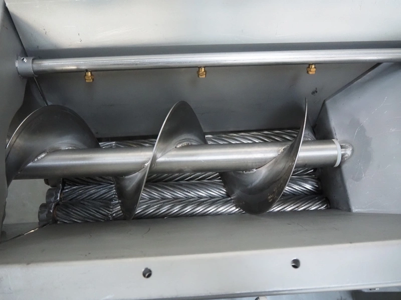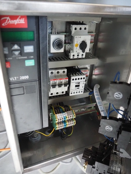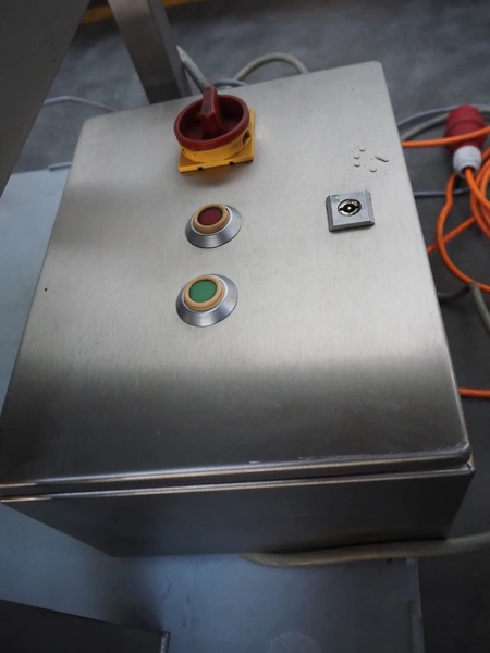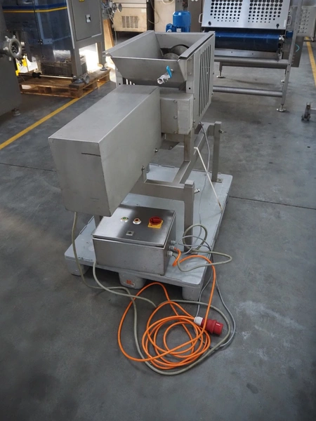 Wichelmann Metallbau slaughter waste separator, type: HHA, machine number: 05/644, year of construction: 2005, 2.2 kW, diameter screw: 200 mm, tier: 200 mm, roller width: 500 mm, total dimensions: 1600 mm x 600 mm x 1150 mm.
