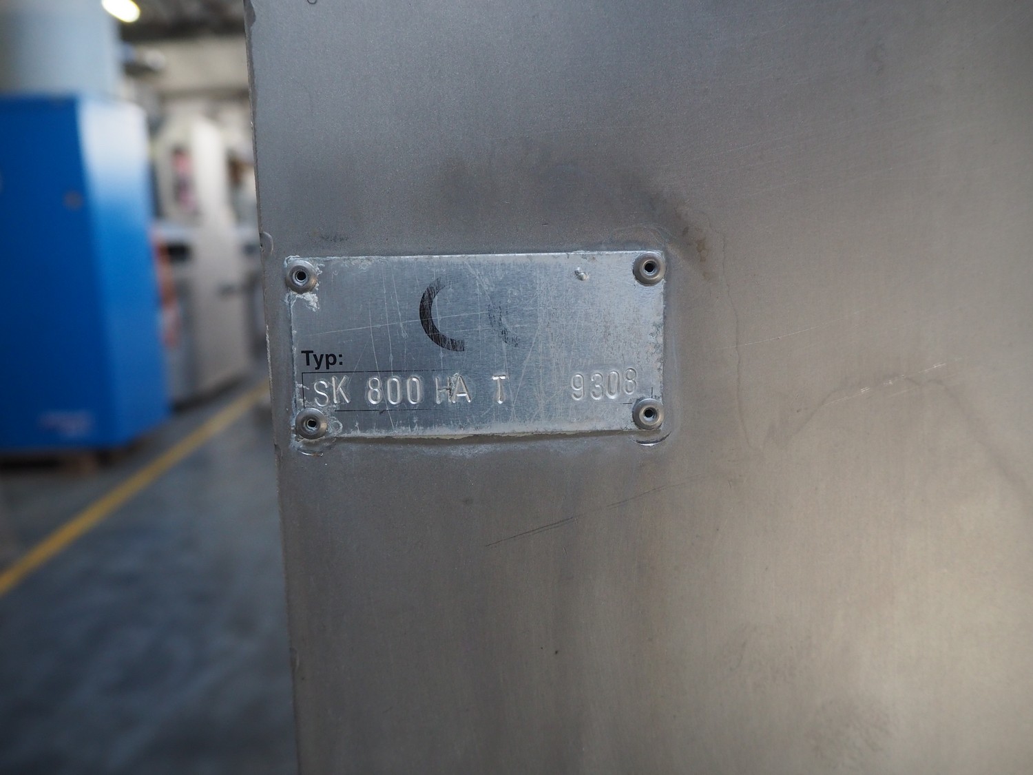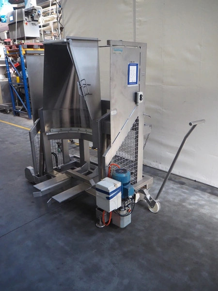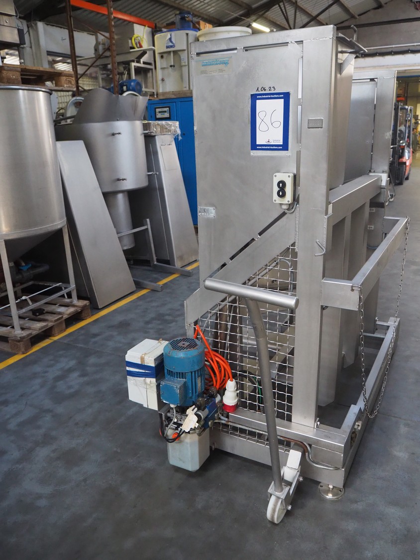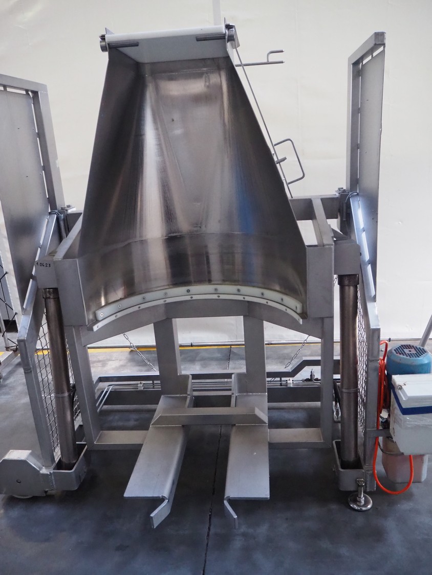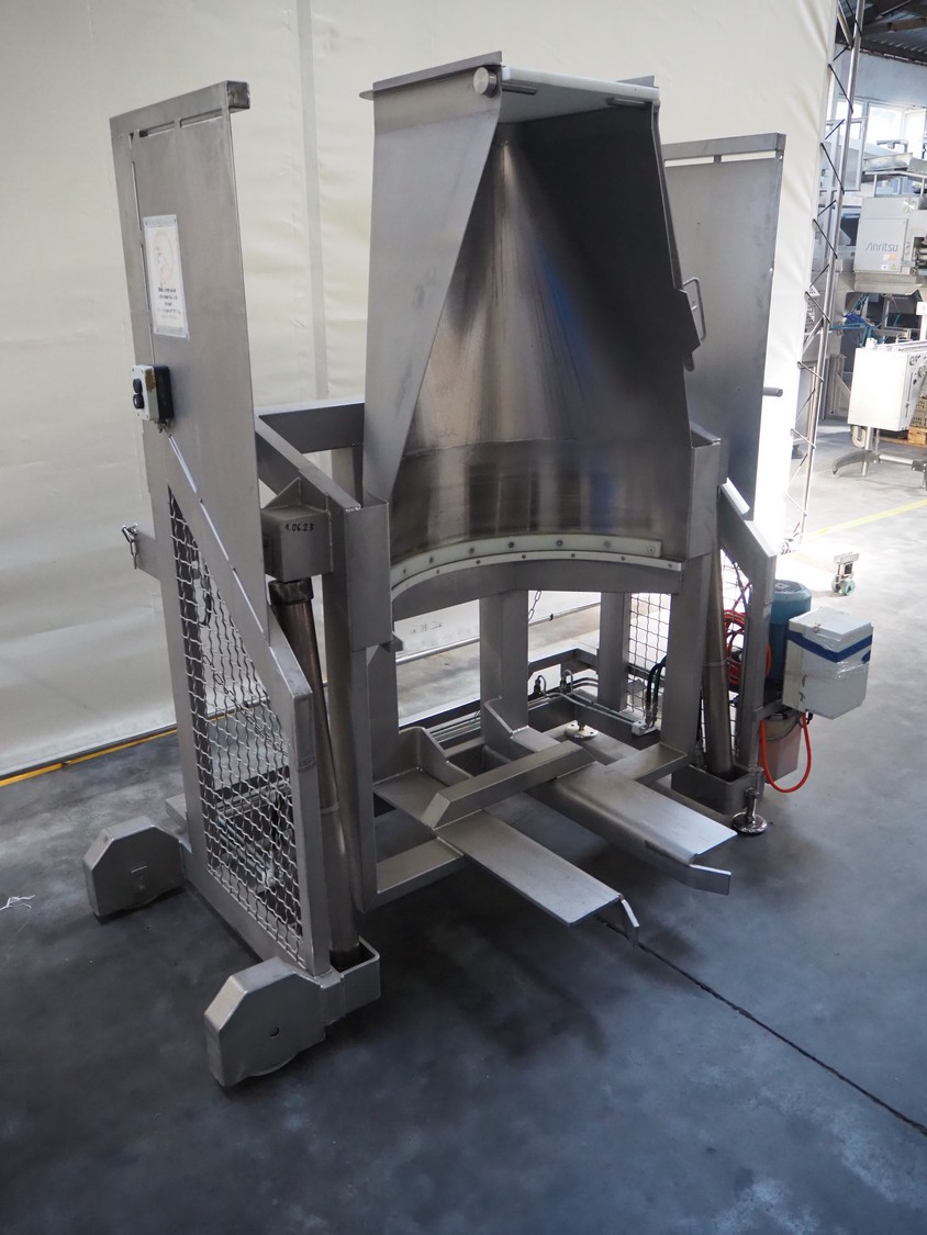 Marinox mobile tilting device for barrels, type: SK 800 HA T, number: 9308, barrel diameter: 840 mm, total dimensions: 1960 mm x 1100 mm x 1900 mm.
