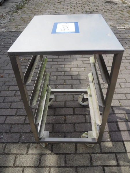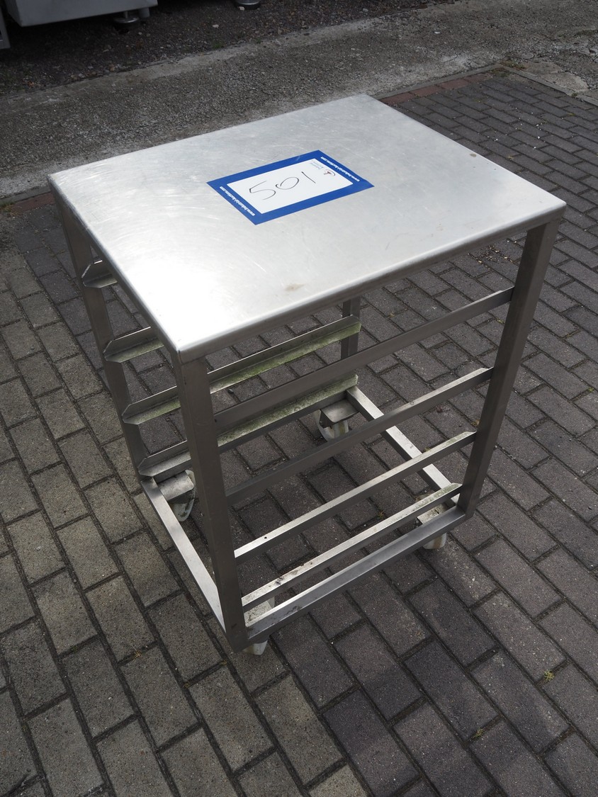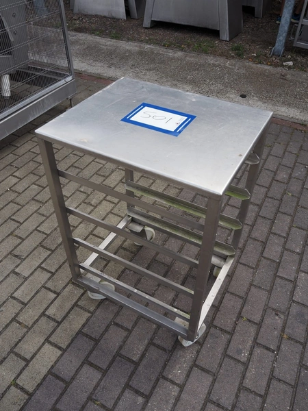 S/s trolley, 4 floors, floor dimensions: (4x) 420 mm x 590 mm, total dimensions: 490 mm x 590 mm x 900 mm.