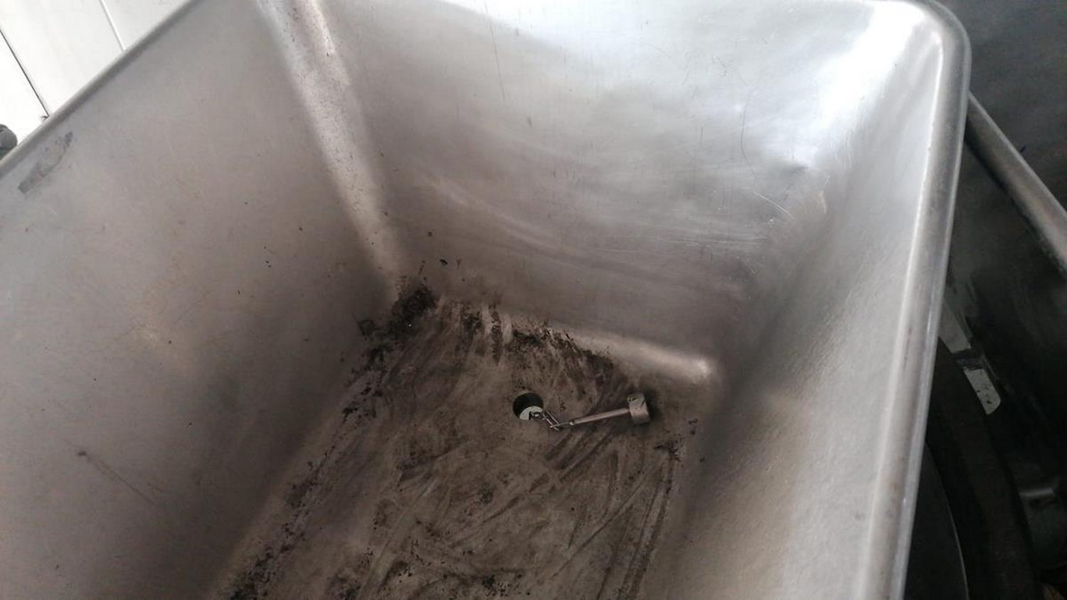 S/s mobile trolley with drain, dimensions: 1440 mm x 750 mm x 830 mm.