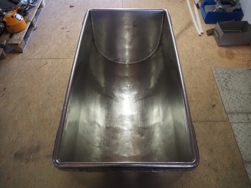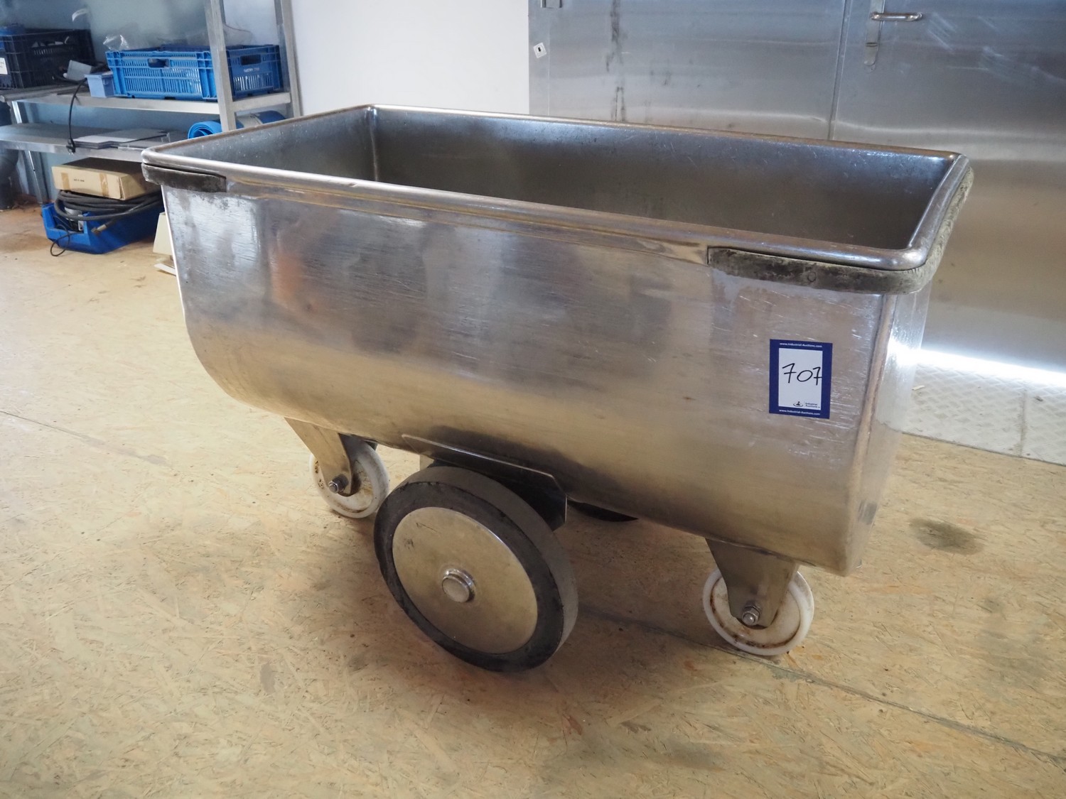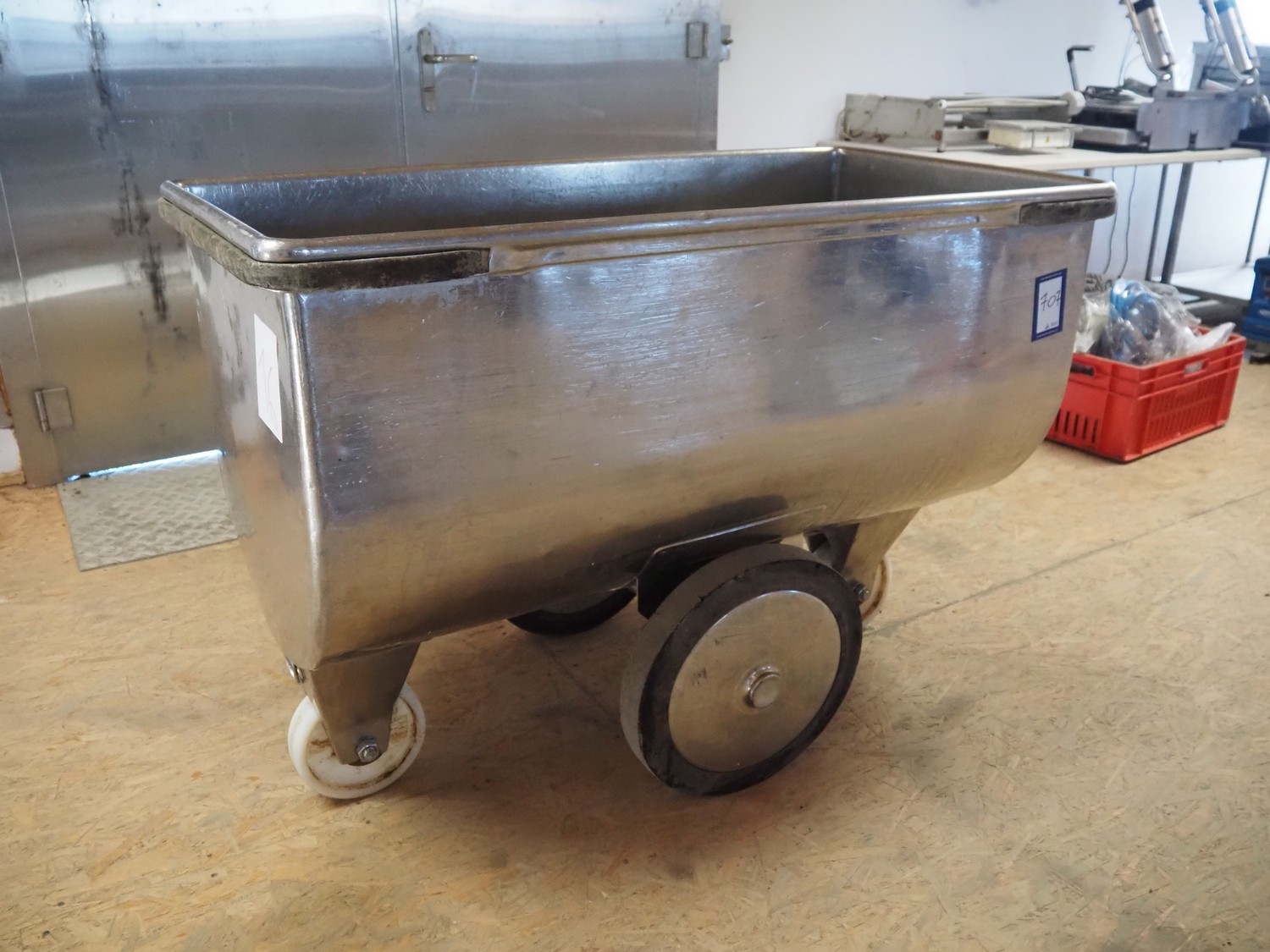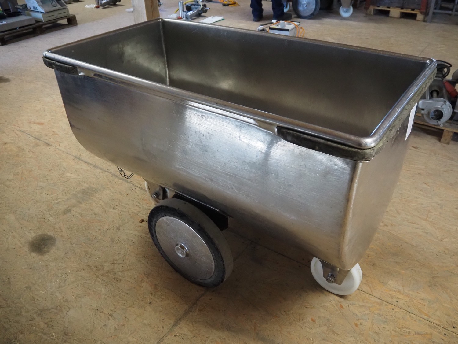 S/s mobile tub, dimensions: 1300 mm x 700 mm x 890 mm.