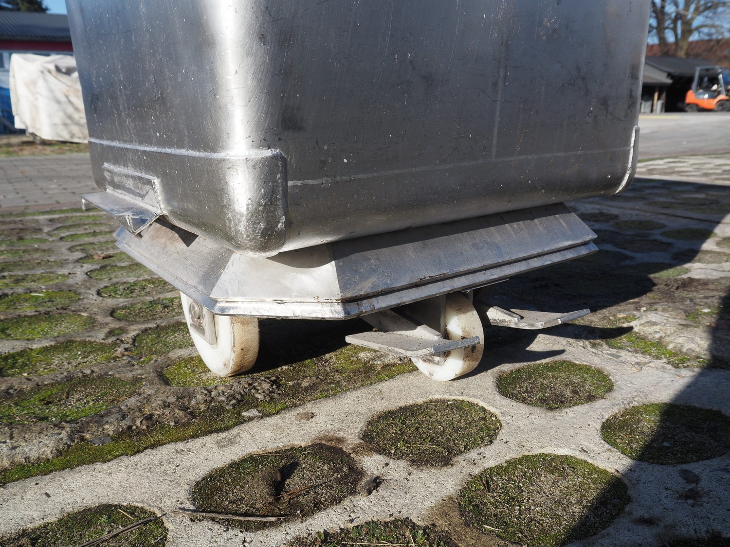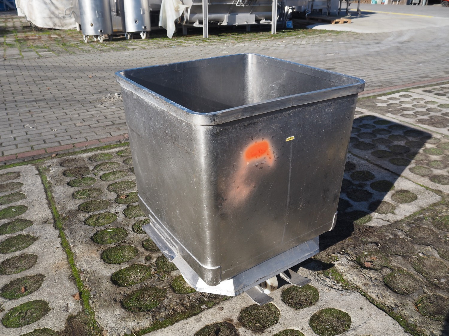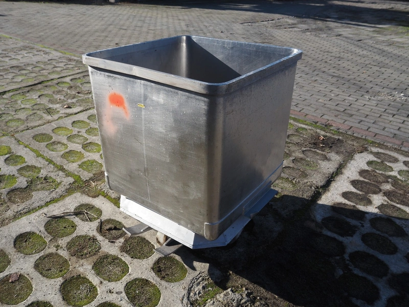 S/s meat bin, volume: 250 liter, total dimensions: 750 mm x 660 mm x 840 mm.