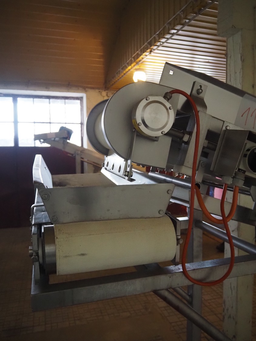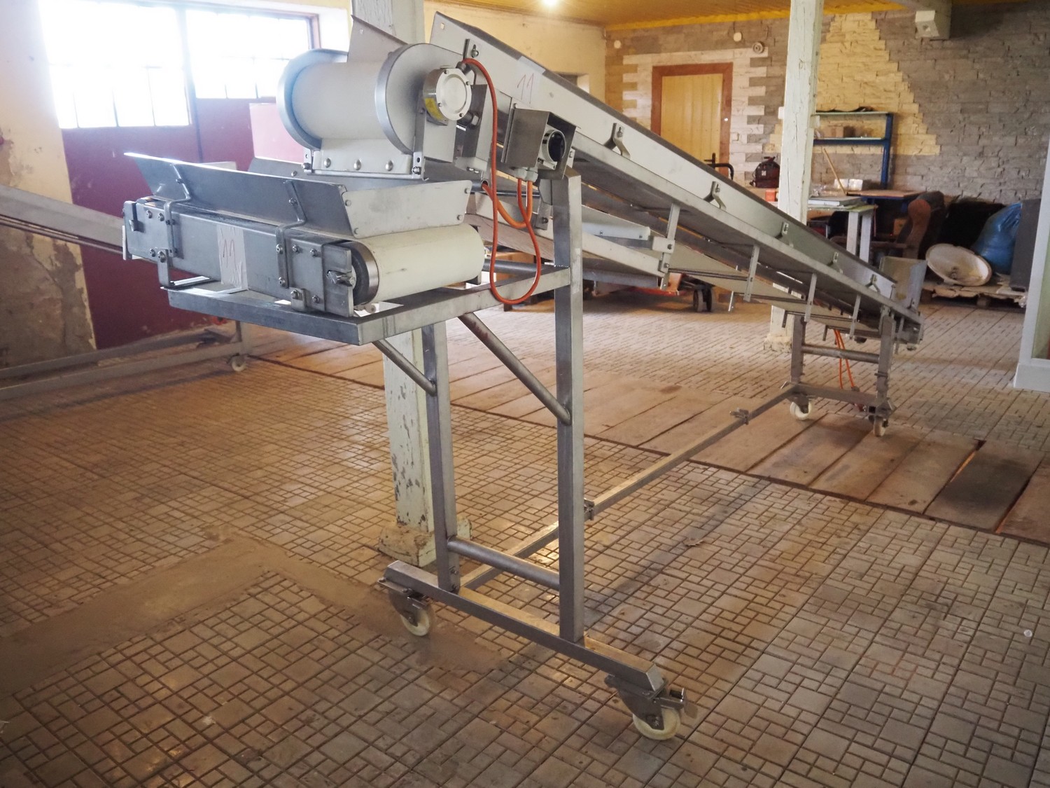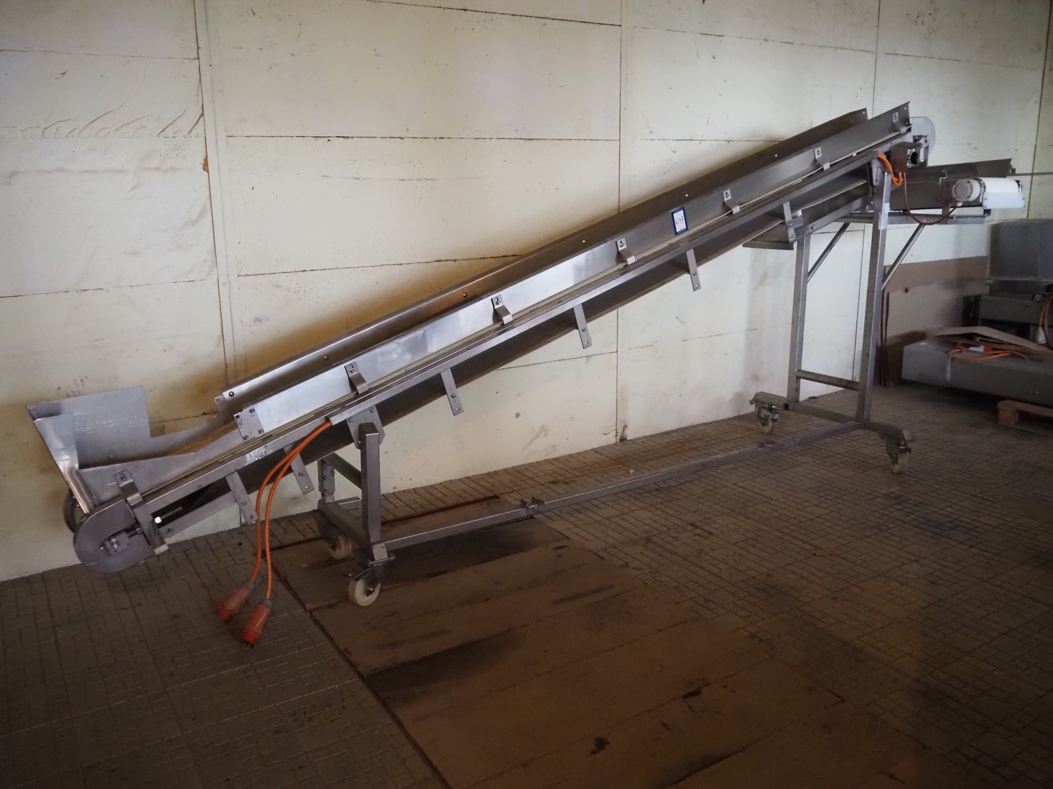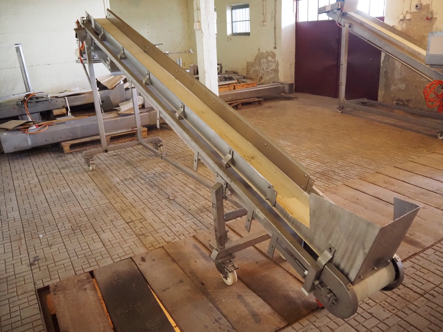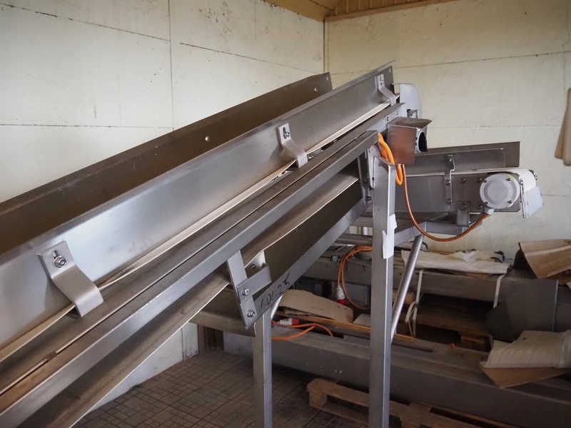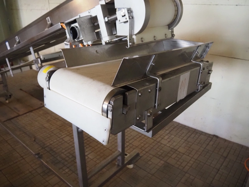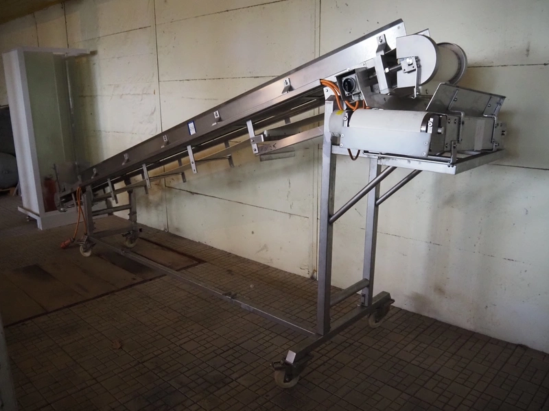 Mobile elevating belt, plastic belt, belt width: 275 mm, total dimensions: 4400 mm x 1200 mm x 1800 mm.