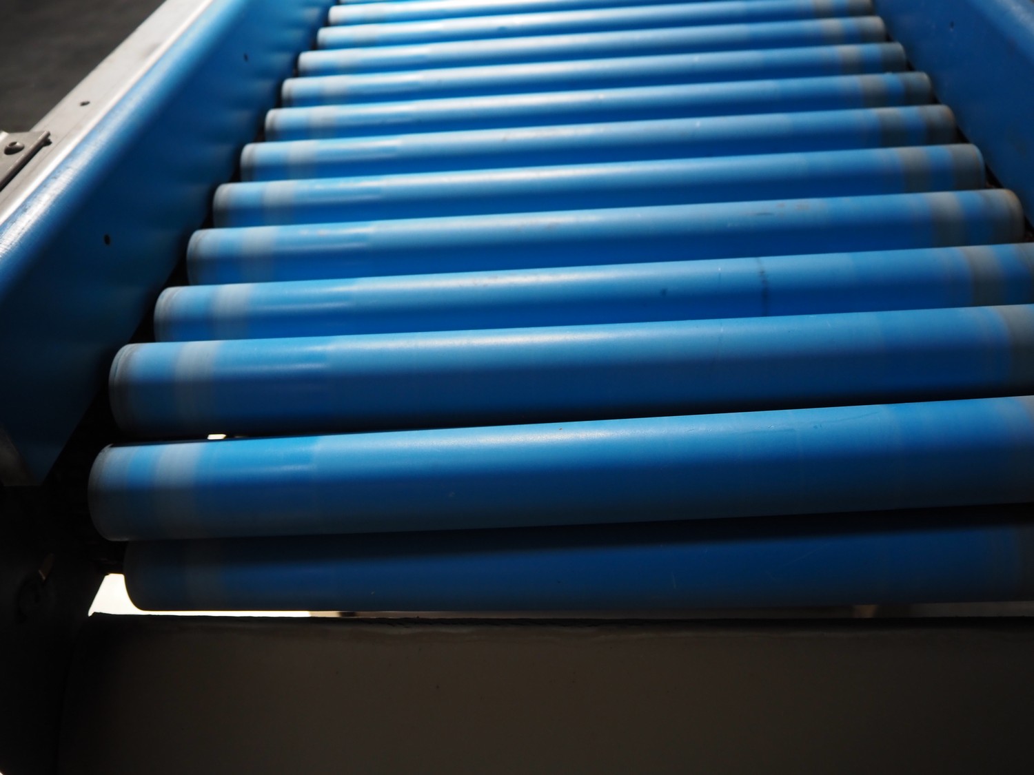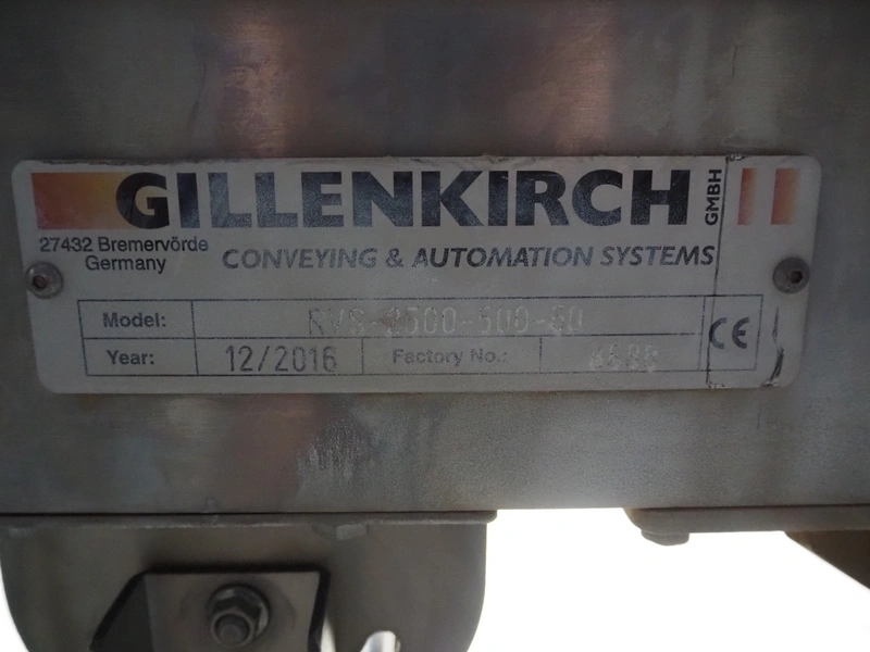 Gillenkirch roller conveyor, model: RVS-2500-500-50, number: 8888, year of construction: 12/2016, plastic rollers, roller length: 500 mm, total dimensions: 2600 mm x 870 mm x 1100 mm.