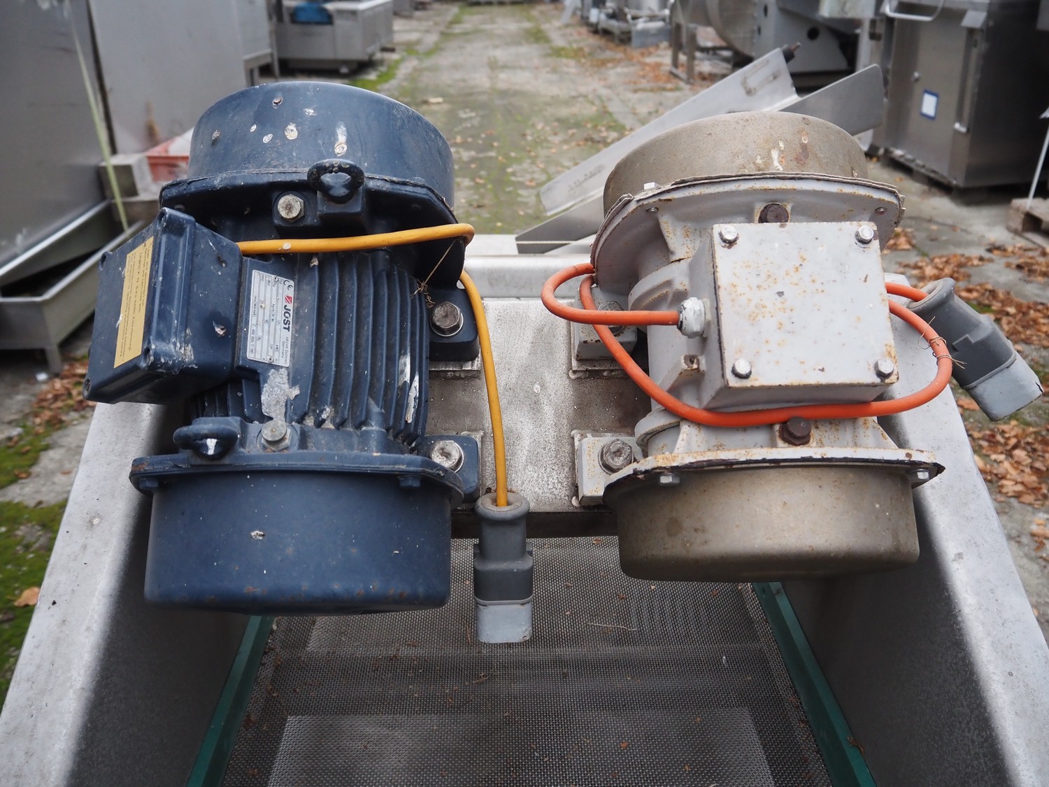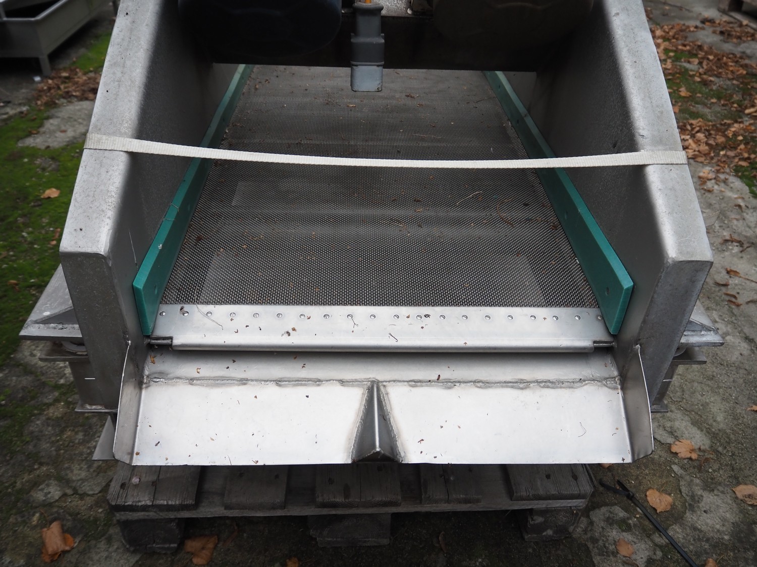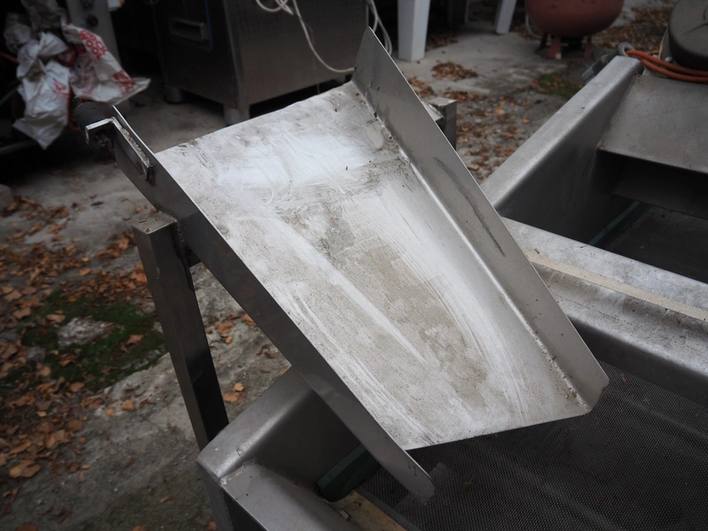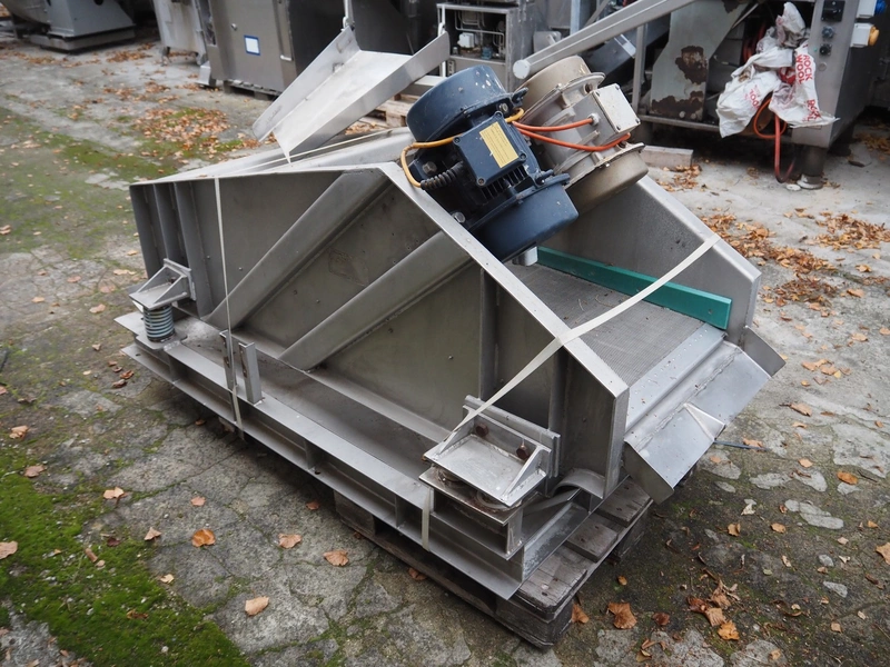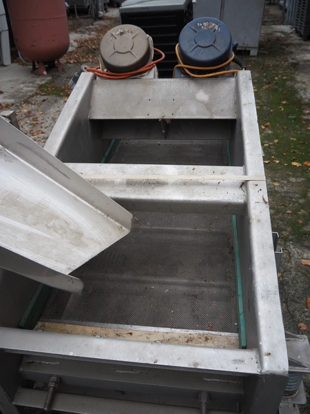 S/s vibrating gutter with filter, gutter width: 580 mm, perforations: 2 mm, total dimensions: 1900 mm x 1000 mm x 1100 mm.