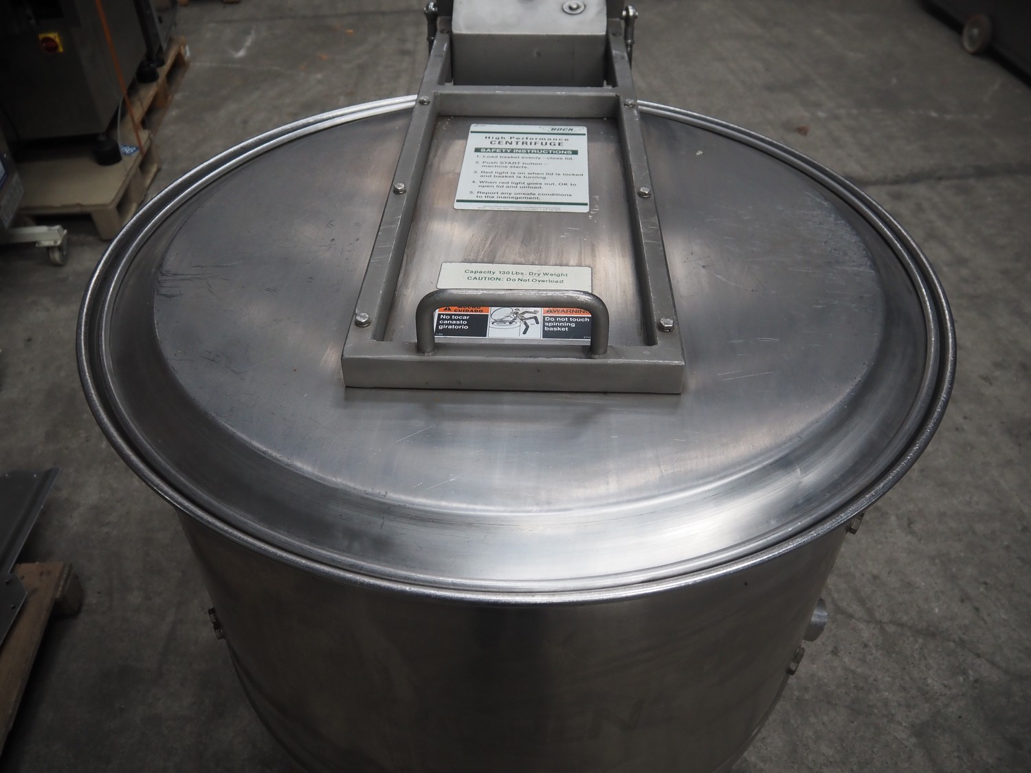 Kronen centrifuge, diameter drum: 770 mm, total dimensions: 1250 mm x 1000 mm x 1300 mm. Including switch cabinet.