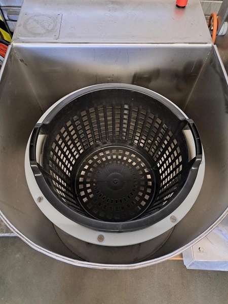 Eillert vegetable centrifuge, type: Champion-I-N, 400 V, 3 Ph, 2.4 A, dimensions: 600 mm x 900 mm x 850 mm.