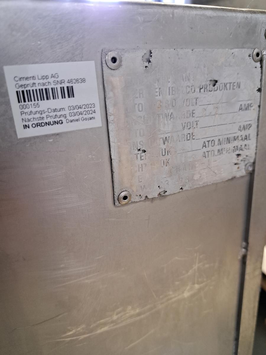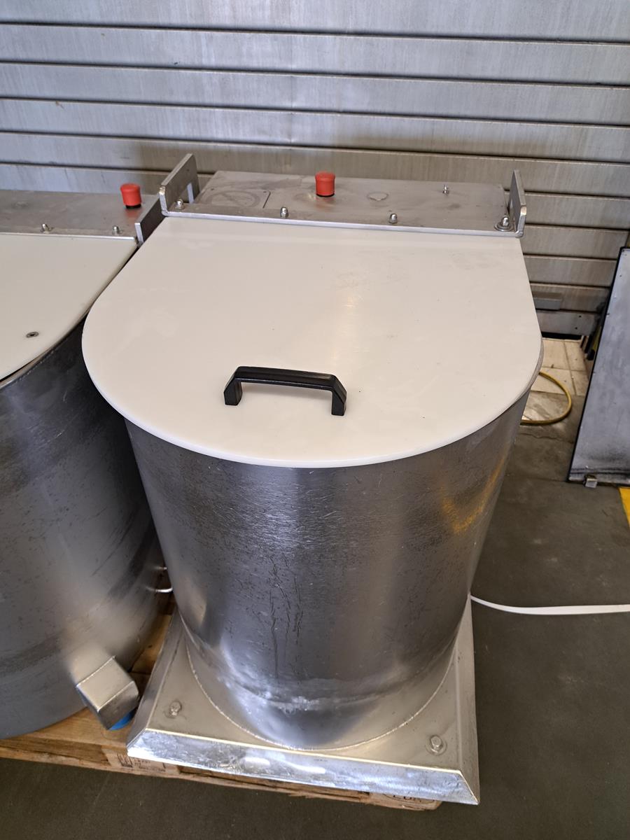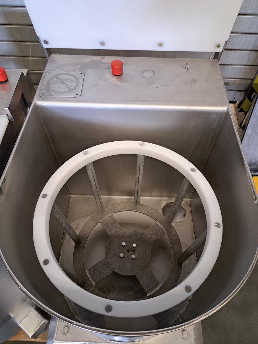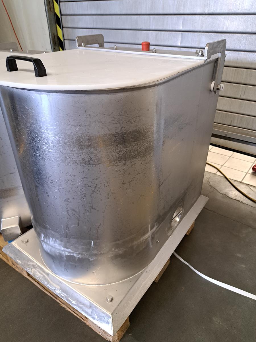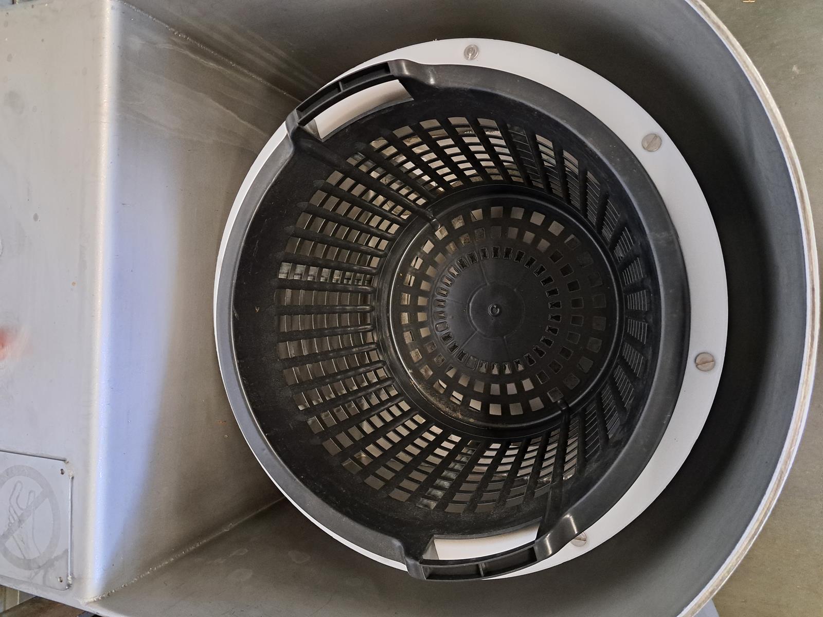 Eillert vegetable centrifuge, type: Champion-I-N, 400 V, 3 Ph, 2.4 A, dimensions: 600 mm x 900 mm x 850 mm.