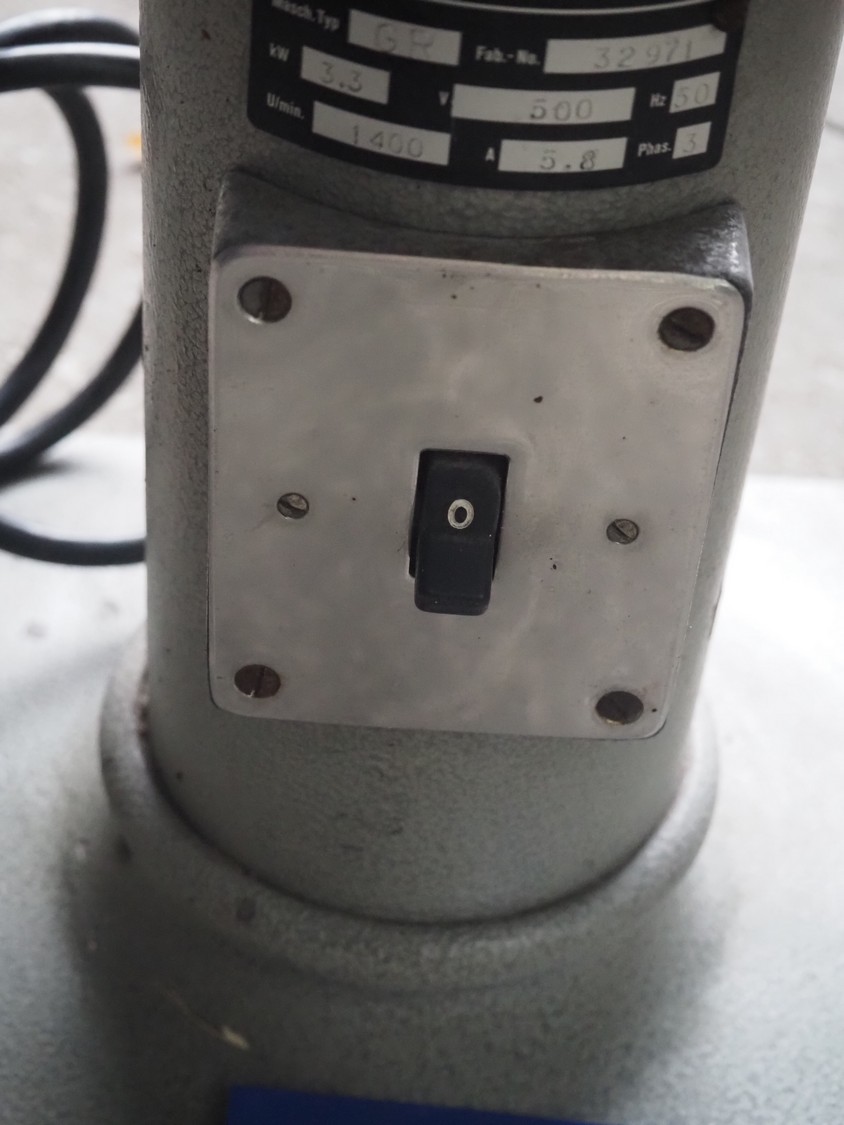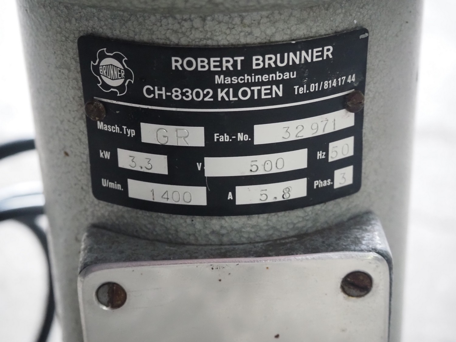 Robert Brunner vegetable cutter, type: GR, number: 32971, 500 V, 3 Ph, 50 Hz, 5.8 A, 3.3 kW, clearance: 160 mm x 100 mm, total dimensions: 660 mm x 420 mm x 690 mm.