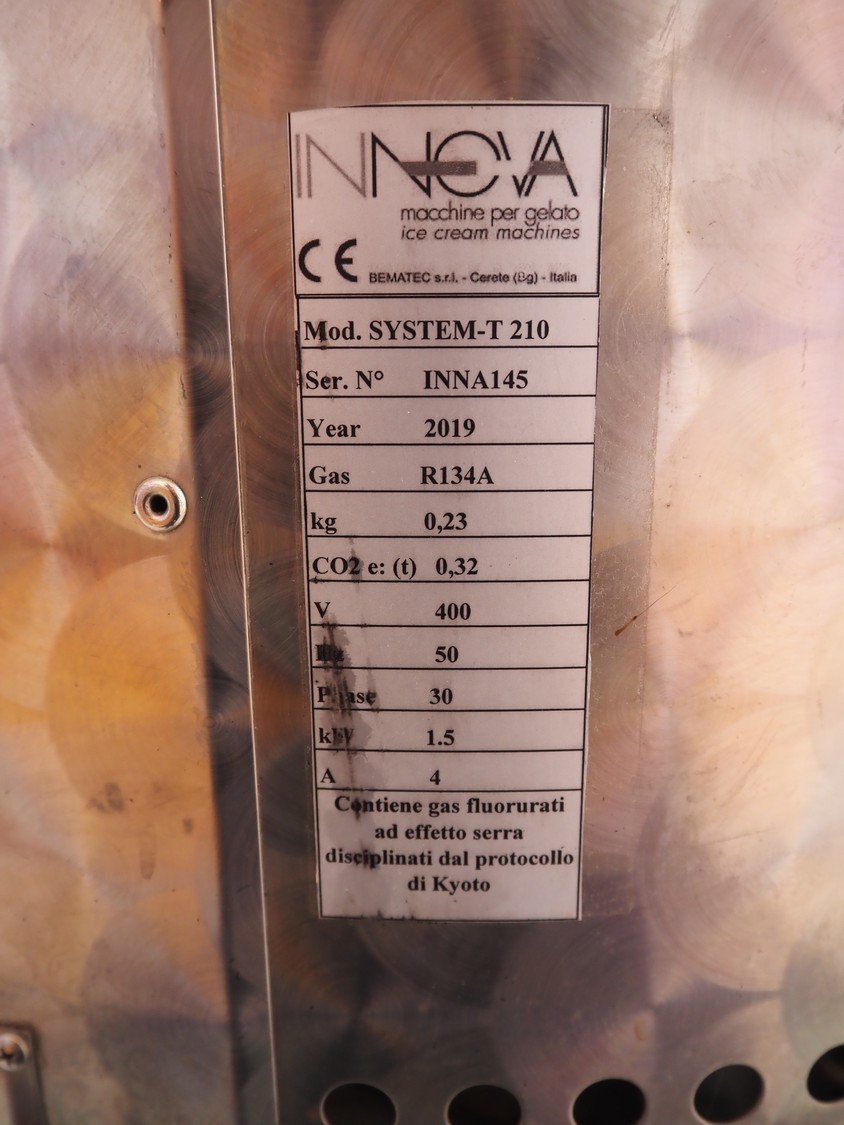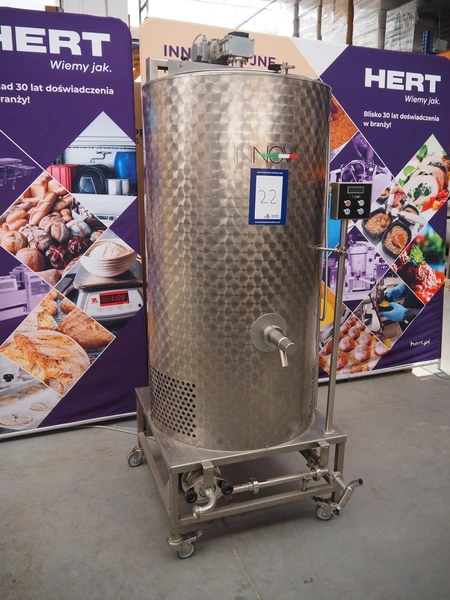 Innova mobile double jacketed maturation tank, model: SYSTEM-T 210, serial number: INNA145, year of construction: 2019, 400 V, 50 Hz, 4 A, 1.5 kW, refrigerant: R134A, 0.23 kg, dimensions: 800 mm x 950 mm x 2150 mm.