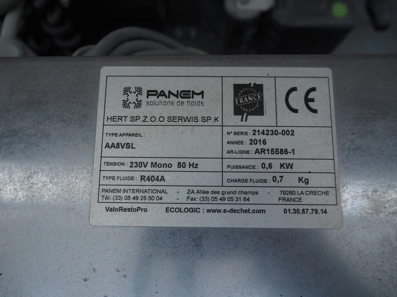 Panem Solutions chiller-proofer, type: AA8VSL, serial number: 214230-002, year of construction: 2016, 230 V, 50 Hz, 0.6 kW, 8 floors, floor dimensions: 600 mm x 400 mm, total dimensions: 1200 mm x 800 mm x 1200 mm.