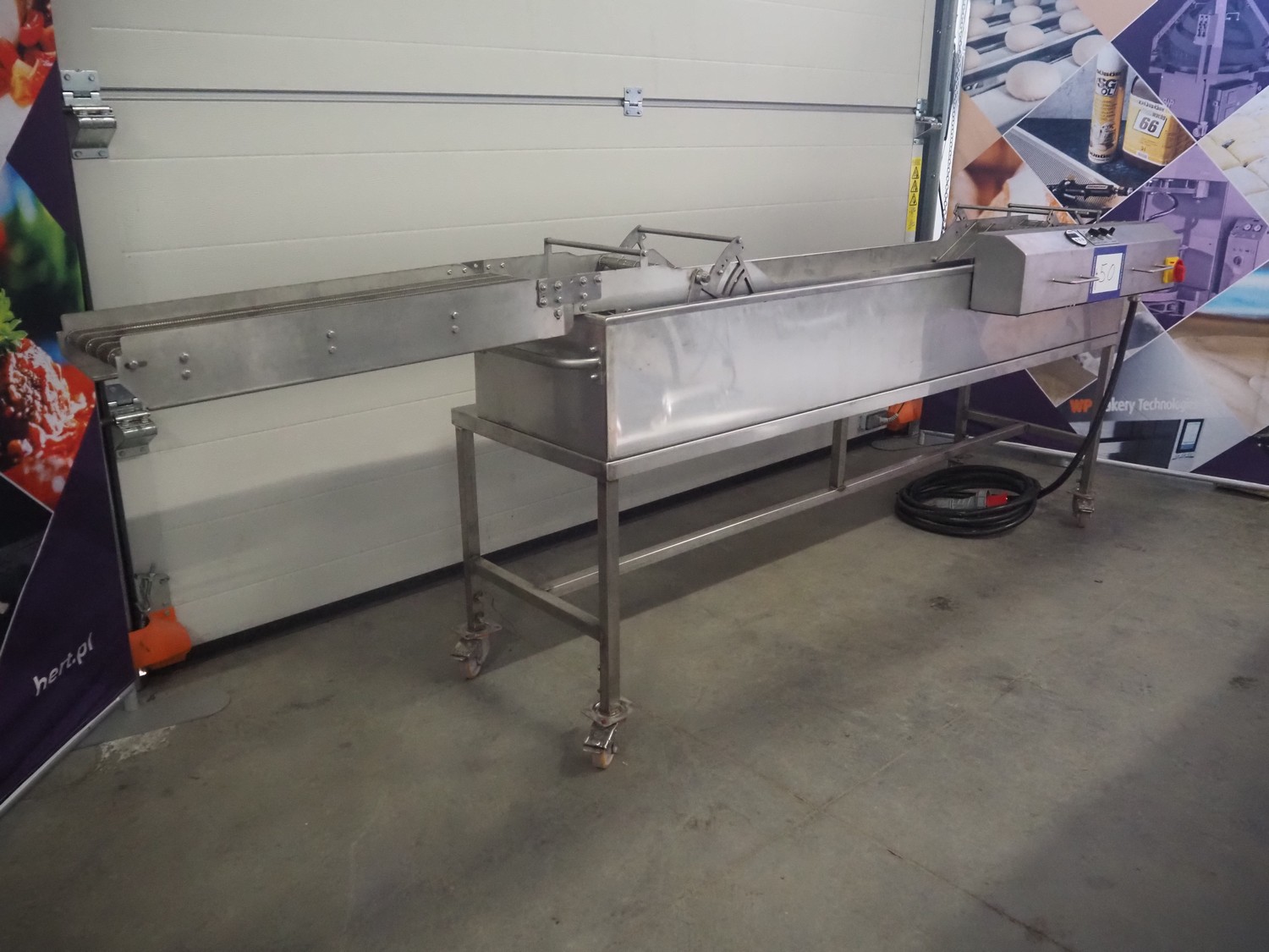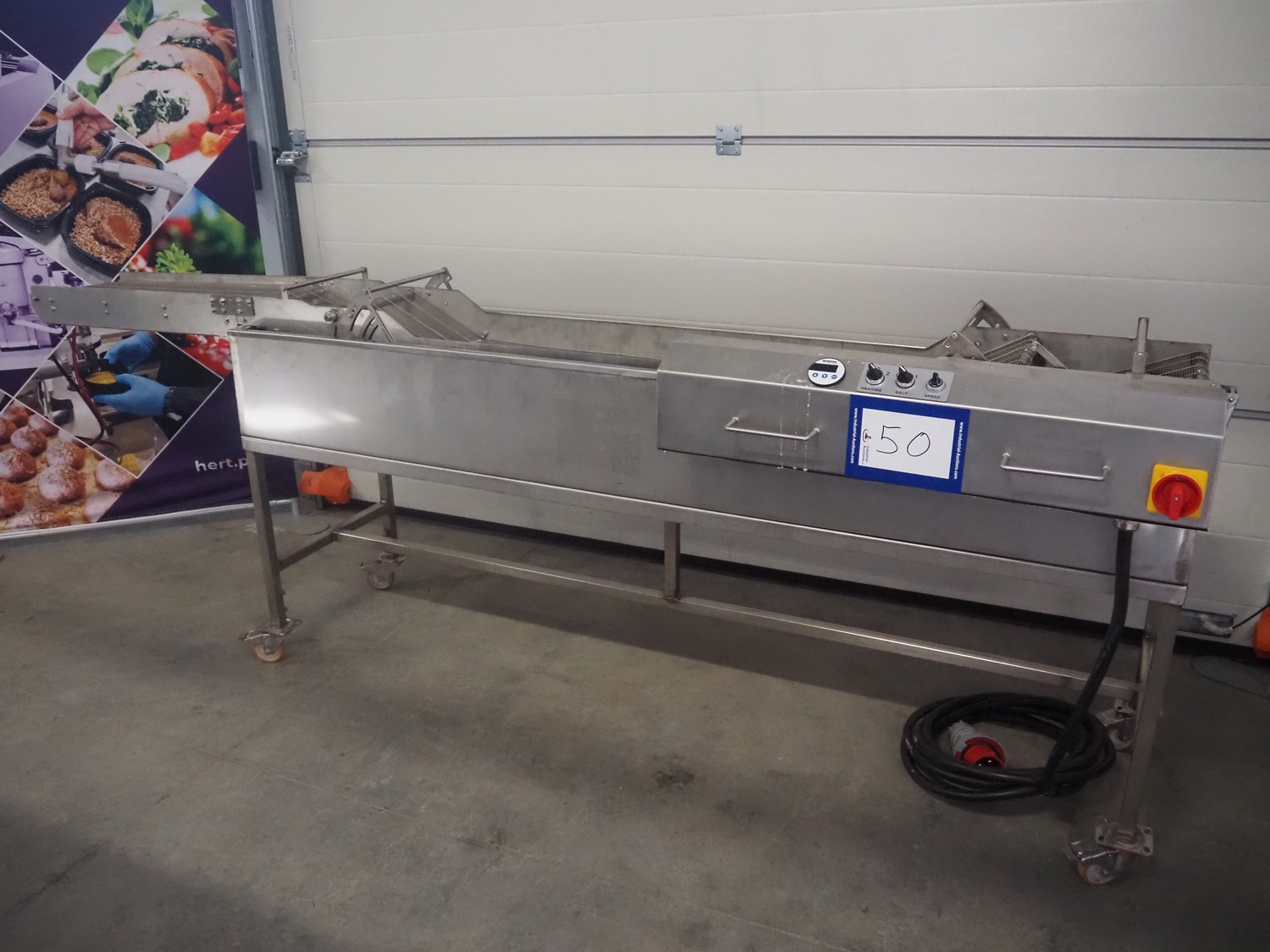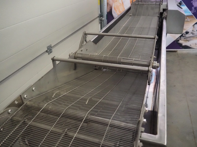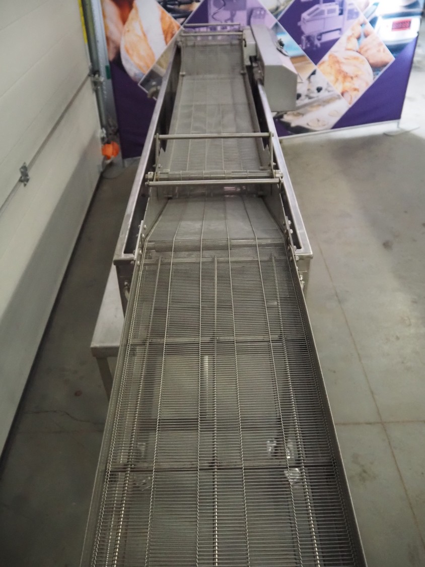 Stork mobile fryer, s/s mesh belt, belt width: 290 mm, total dimensions: 2950 mm x 900 mm x 1000 mm.