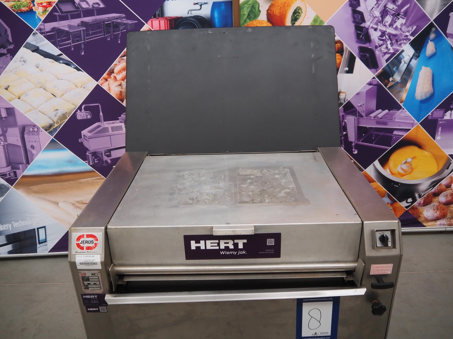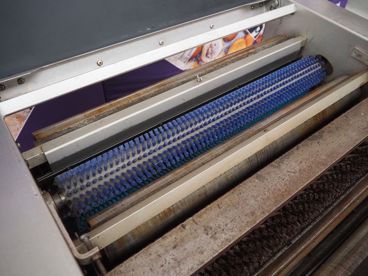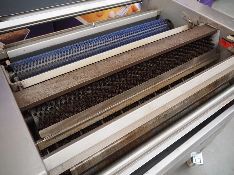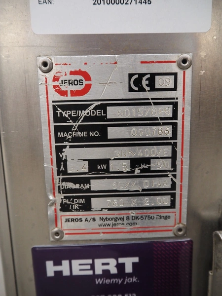 Jeros mobile baking tray cleaner, type: 6015/828, machine number: 090786, year of construction: 2009, 400 V, 3 Ph, 50 Hz, 3.4 A, 1.5 kW, brush length: 780 mm, total dimensions: 1100 mm x 730 mm x 1000 mm.