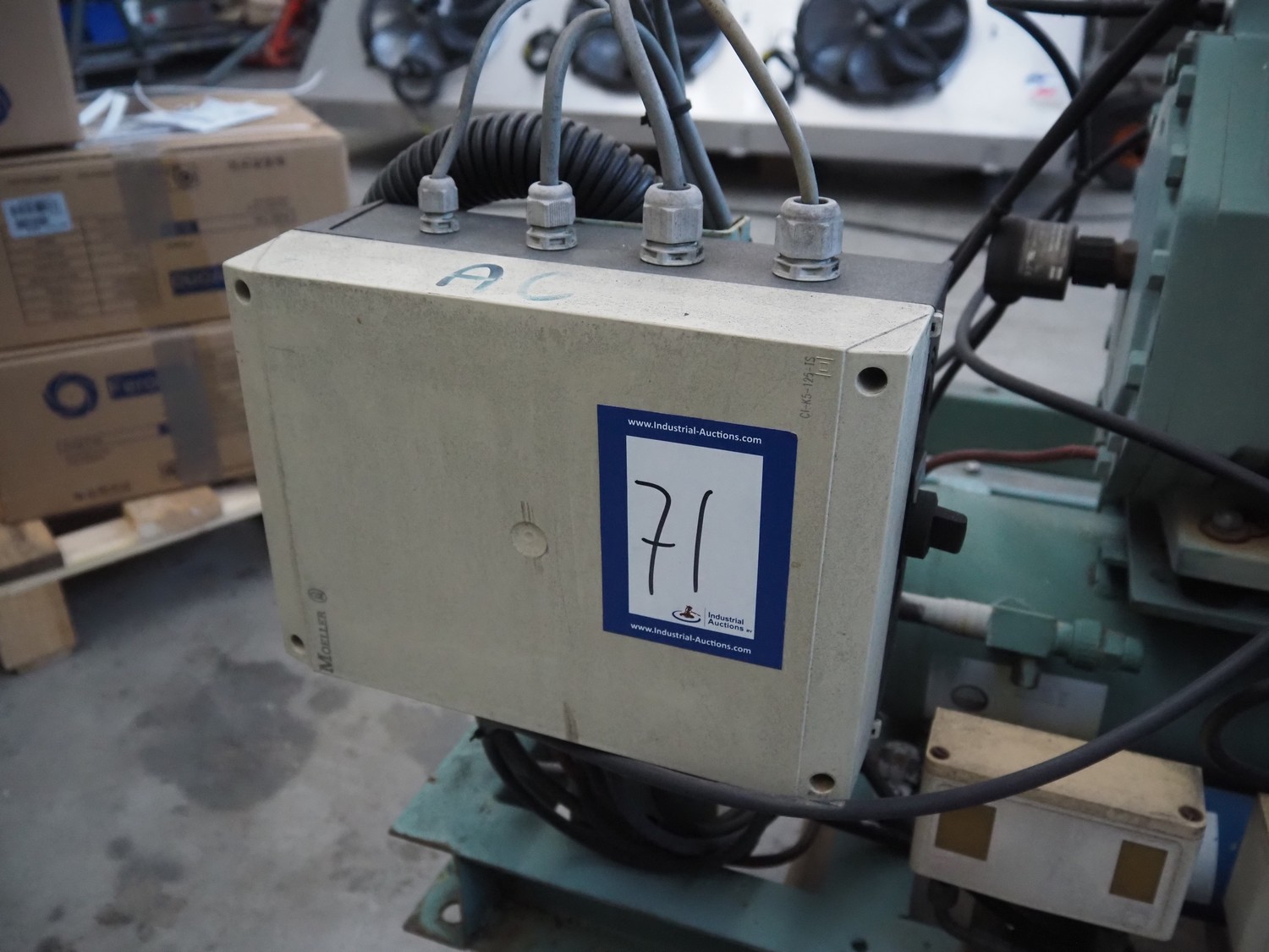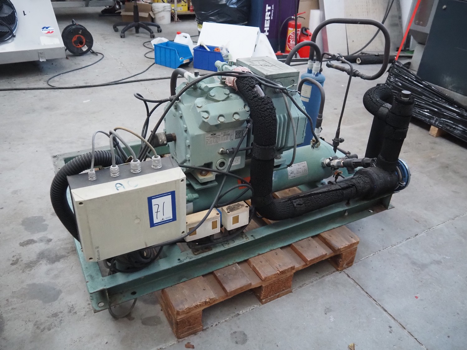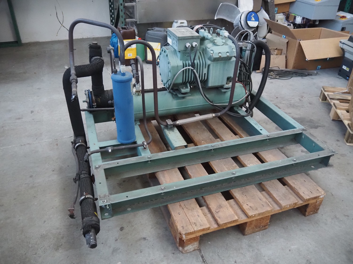 Bitzer Kühlmaschinenbau GmbH cooling compressor, type: 4CES-6Y-40S, serial number: 1688503312, 220-240 V, 50 Hz, 30.8 A, capacity: 32.5 / 39.2 m³ per hour, dimensions: 1500 mm x 1200 mm x 1000 mm.