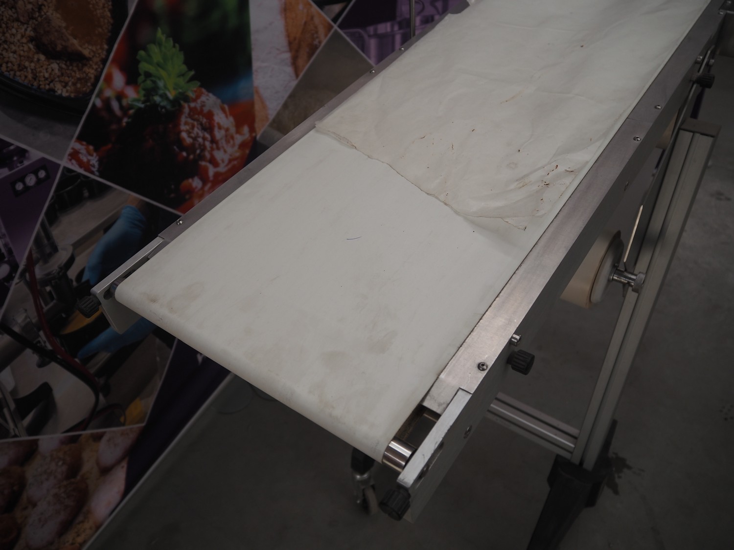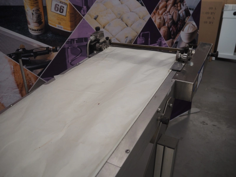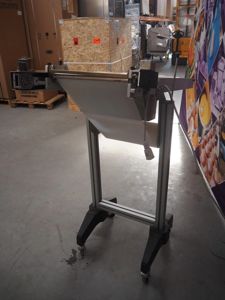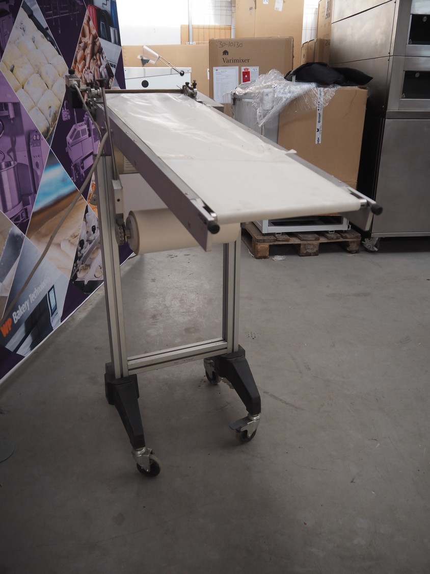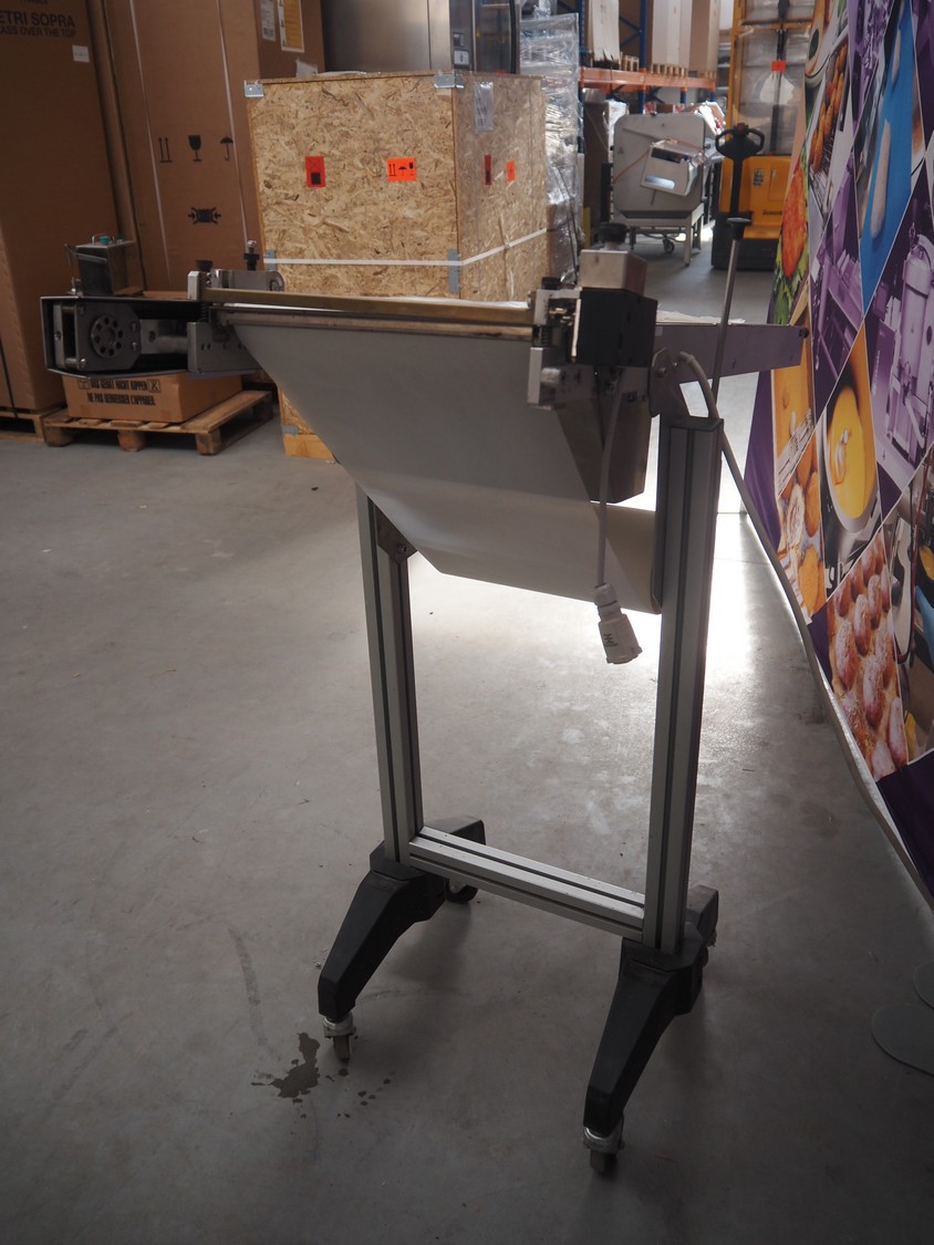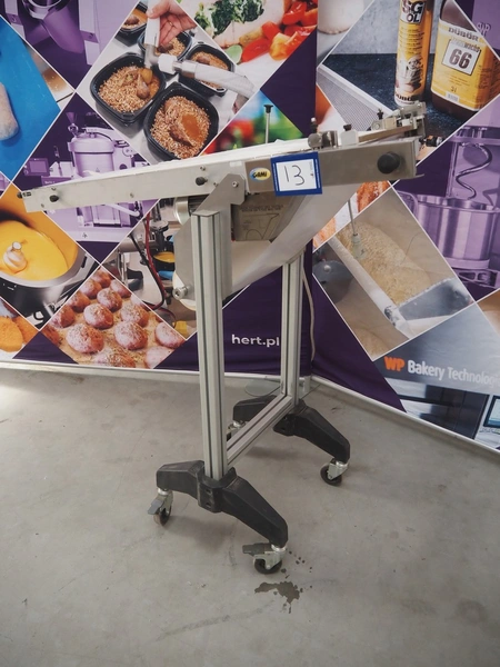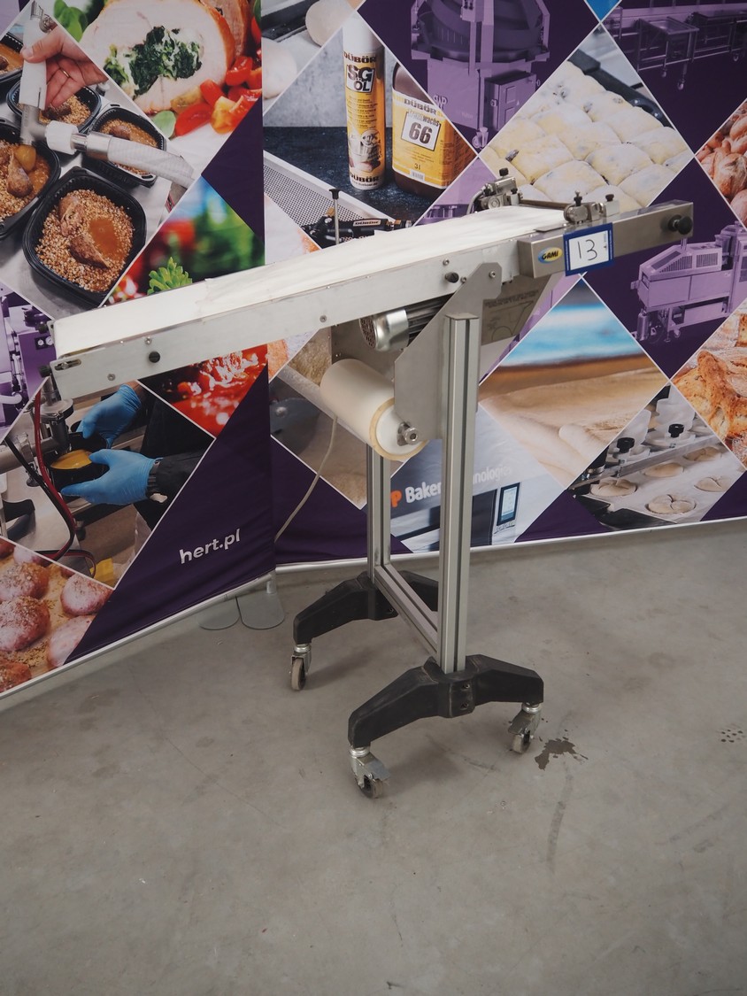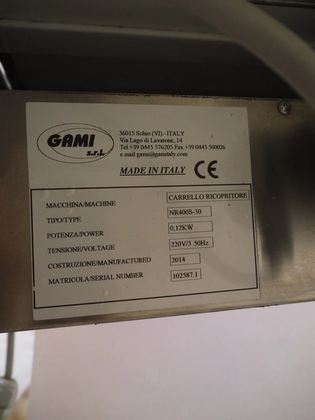 Gami s.r.l. mobile elevating belt, type: NR400S-30, serial number: 102587.1, year of construction: 2014, 220 V, 3 Ph, 50 Hz, 0.12 kW, baking paper, paper width: 300 mm, elevating height: 1130 mm, seal length: 300 mm, total dimensions: 1160 mm x 470 mm x 1180 mm.