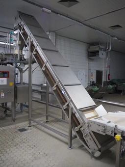 ATIS GmbH elevating belt with dividers, divider height: 60 mm, distance between dividers: 165 mm, belt width: 400 mm, elevating hei…