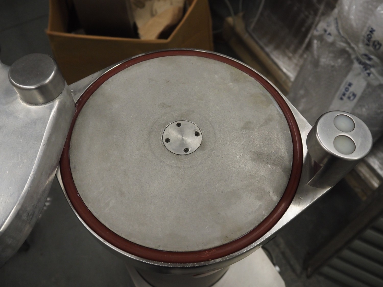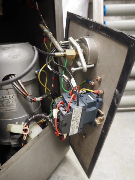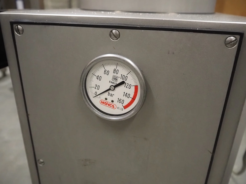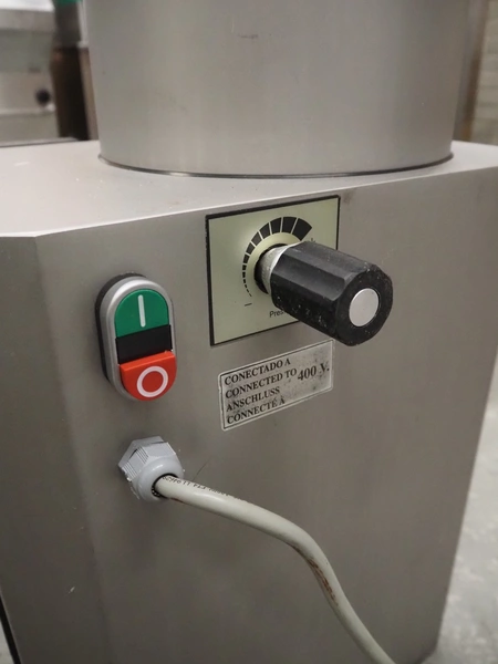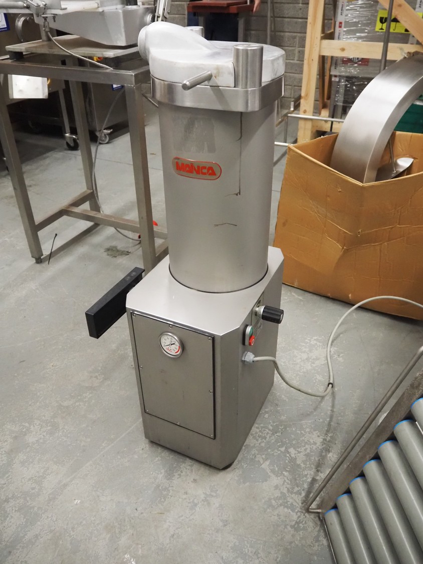 Mainca piston filler, model: EM-20, number: 5998, year of construction: 2006, 400 V, 3 Ph, 50 Hz, 2.5 A, 0.9 kW, volume: 20 liter, dimensions: 470 mm x 420 mm x 1100 mm.