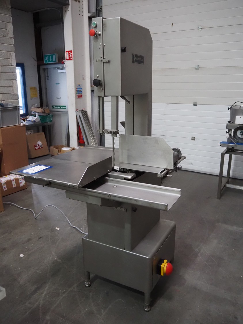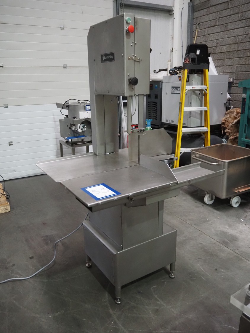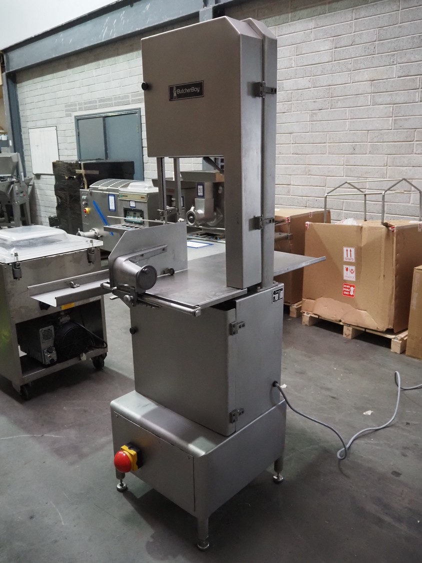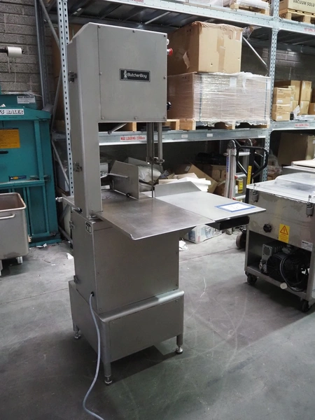 Butcher Boy bandsaw, model: 1640, serial number: S659, year of construction: 2002, 400 V, 3 Ph, 50 Hz, 4.9 A, 2.2 kW, dimensions table: 920 mm x 860 mm, total dimensions: 1100 mm x 900 mm x 1970 mm.