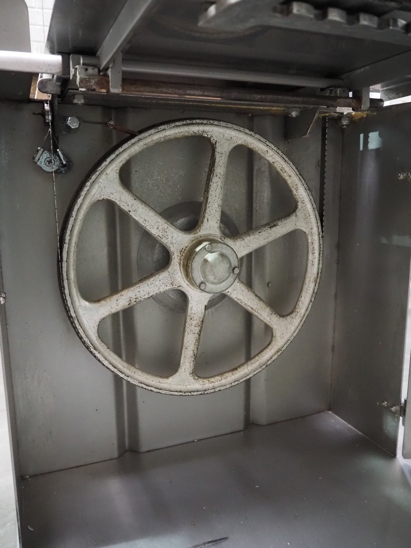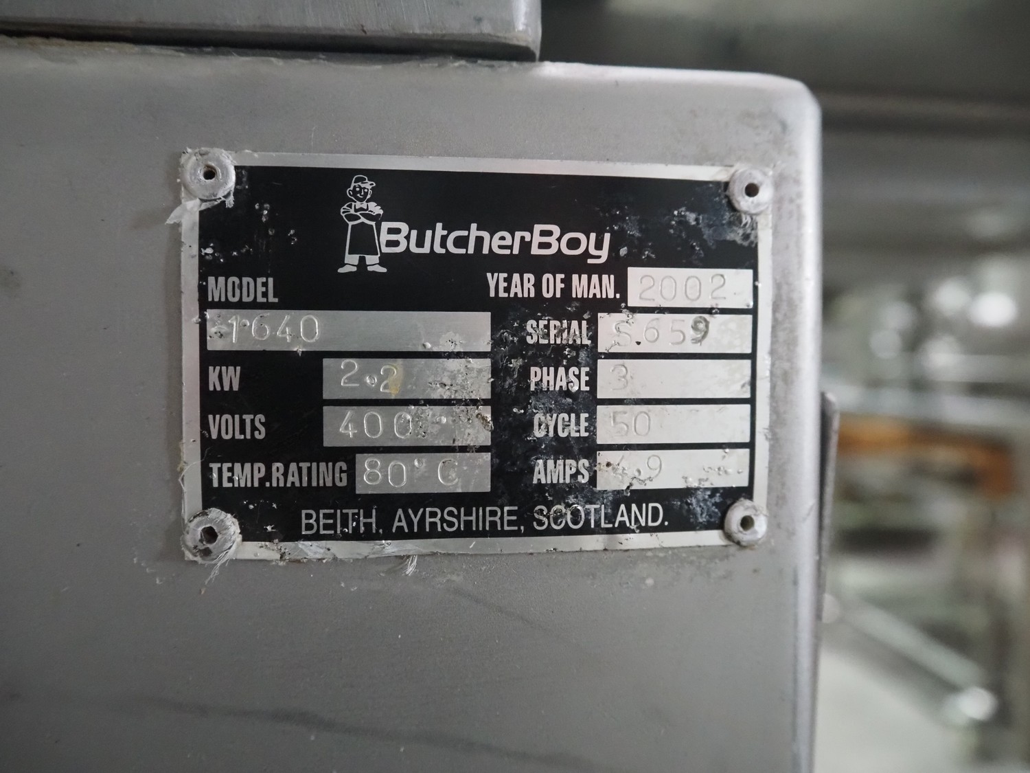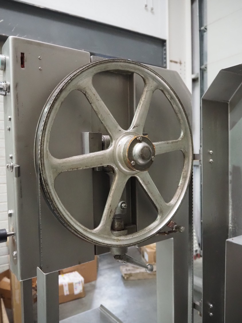 Butcher Boy bandsaw, model: 1640, serial number: S659, year of construction: 2002, 400 V, 3 Ph, 50 Hz, 4.9 A, 2.2 kW, dimensions table: 920 mm x 860 mm, total dimensions: 1100 mm x 900 mm x 1970 mm.