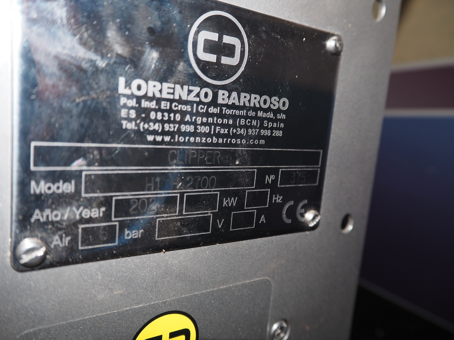 Lorrenzo Barroso clipper, model: H1 H-2700, number: 375, year of construction: 2023, 6 bar, dimensions: 310 mm x 200 mm x 830 mm.