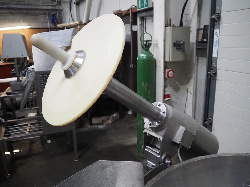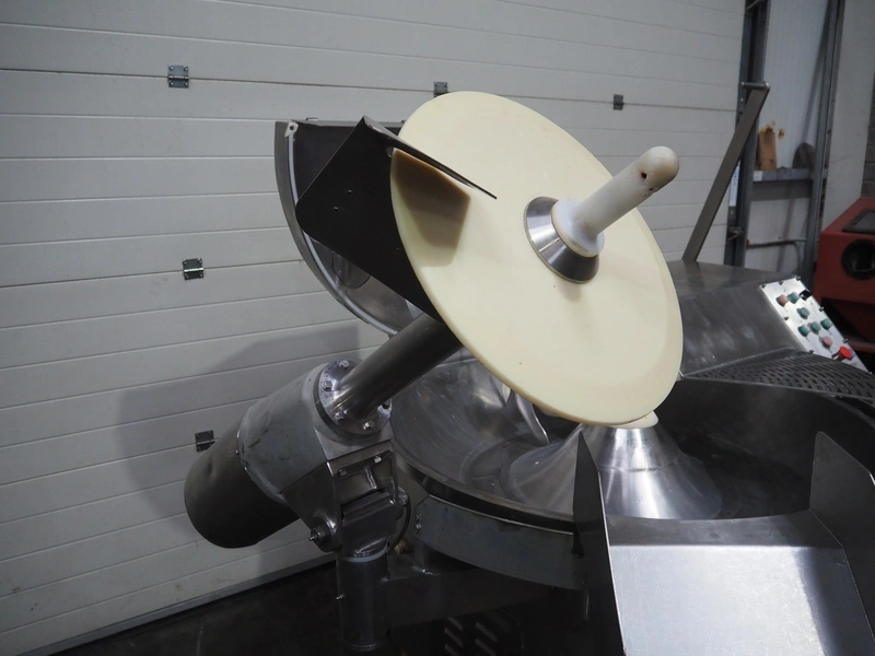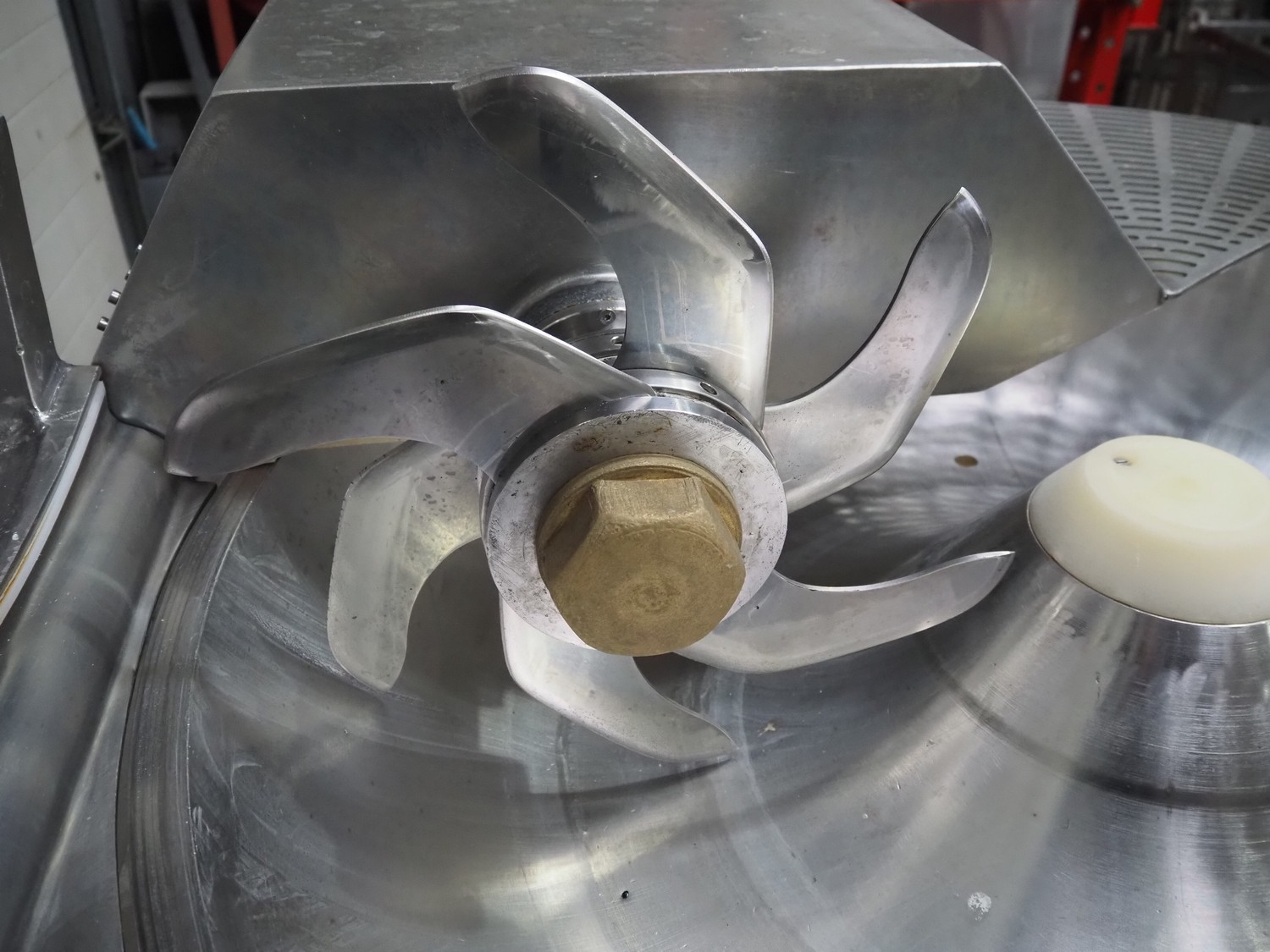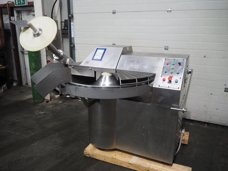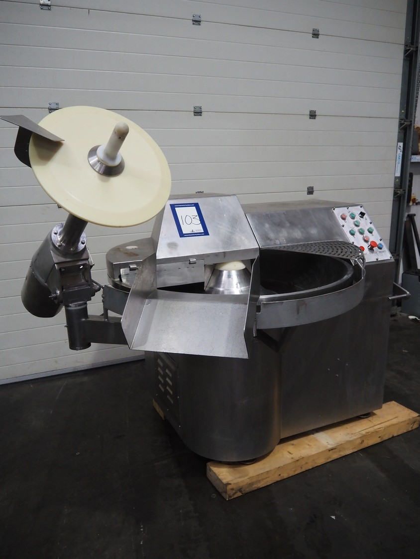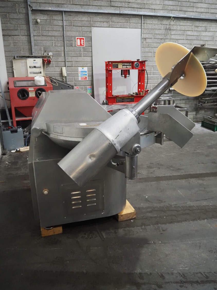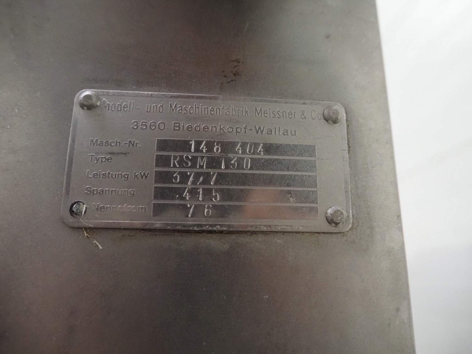 Meissner & Co cutter with ejector, type: RSM 130, machine number: 148 404, 415 V, 76 A, 37.7 kW, s/s bowl, volume bowl: 130 liter, s/s knives, total dimensions: 1800 mm x 1550 mm x 1670 mm.