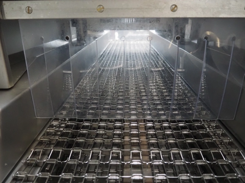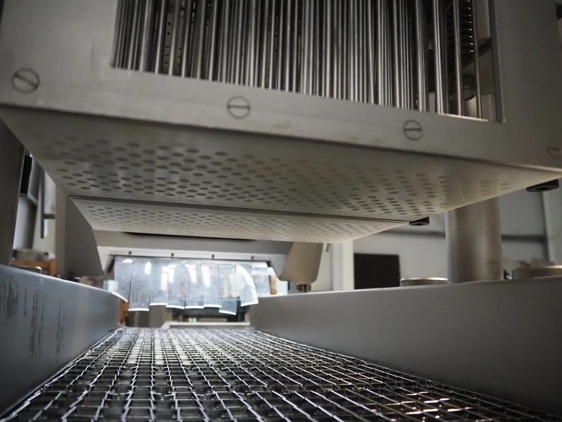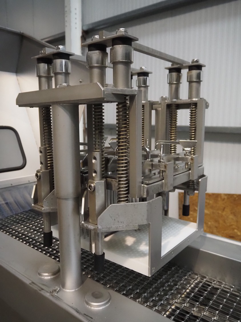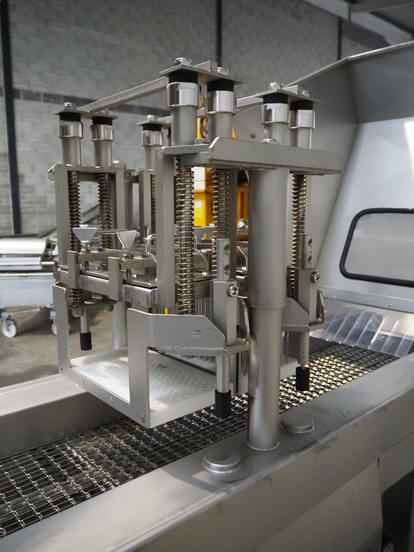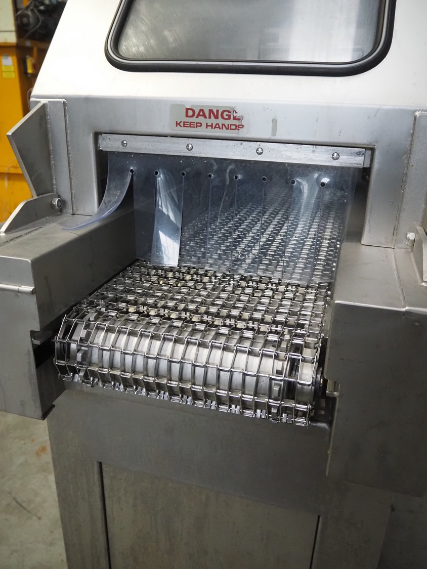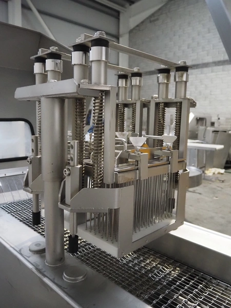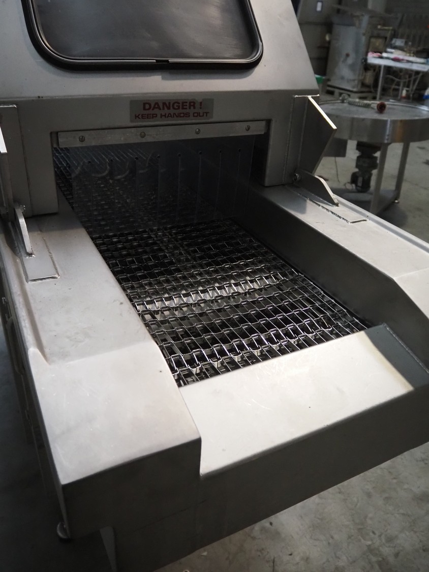 Fomaco injector, model: FGM 26/456 T, machine number: 8421-2001, 400 V, 3 Ph, 50 Hz, 3.6/1.6 A, 228 needles, s/s belt, belt width: 335 mm, clearance: 340 mm x 150 mm, total dimensions: 2150 mm x 700 mm x 1900 mm.